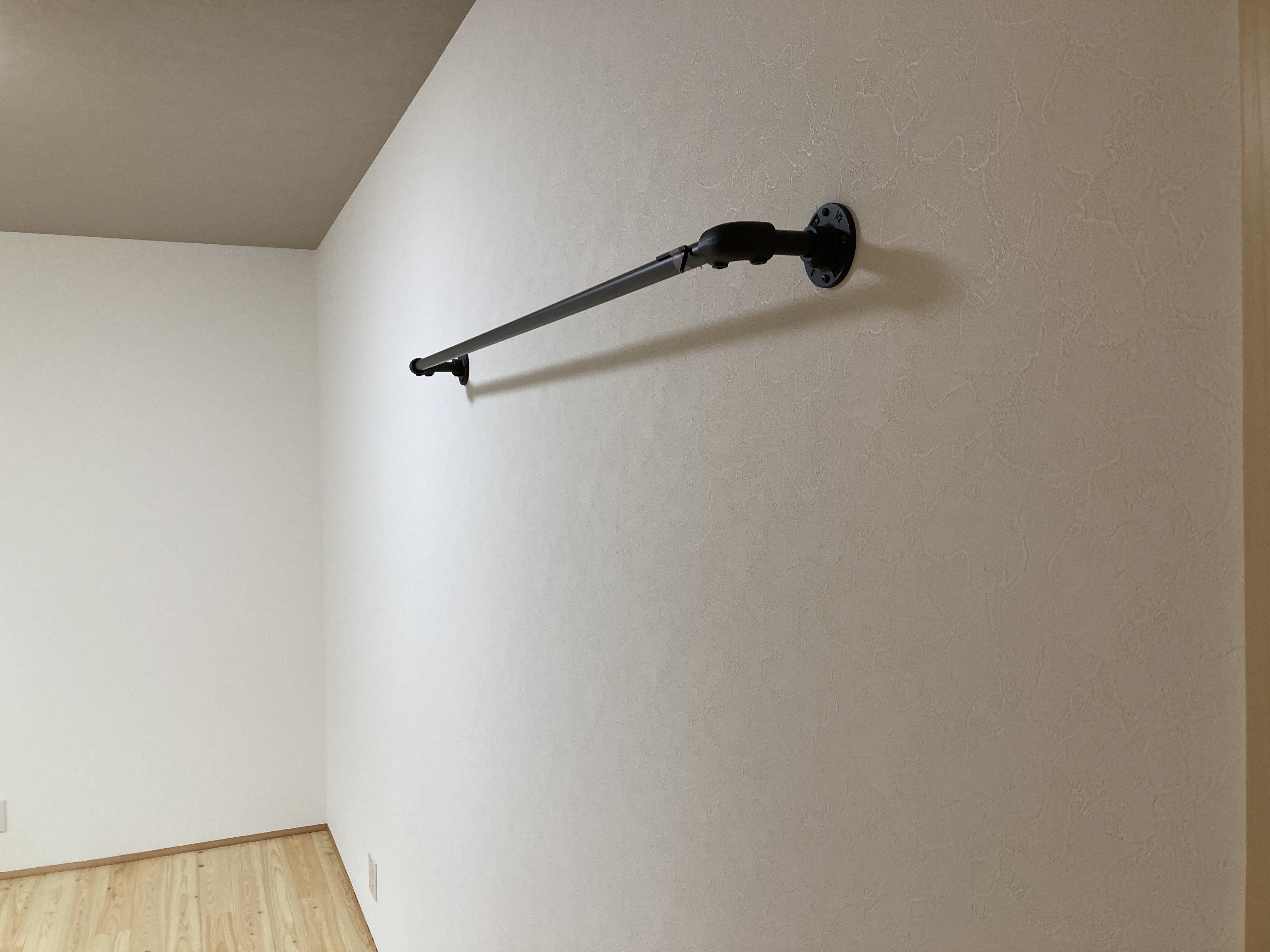居室のクローゼット前には、パイプが取り付けられています。家着やパジャマ、まだ洗濯しないけれど着用した服などを一時的に掛けるのだそうです。以前の家では、長押にかけてみえたとか。うんうん、こういう場所いるいる👍