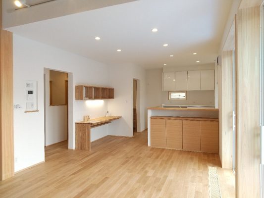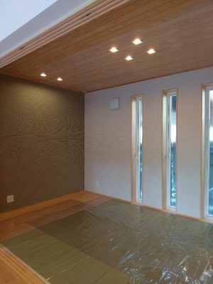 リビングの横に和室を設けています。今回はフラットな和室。棟梁のご両親もたまに会いに来て泊まられたりするんでしょうね。広めの和室なので、年を取って2階に上がるのが大変になったらここを寝室にもできそうです👍