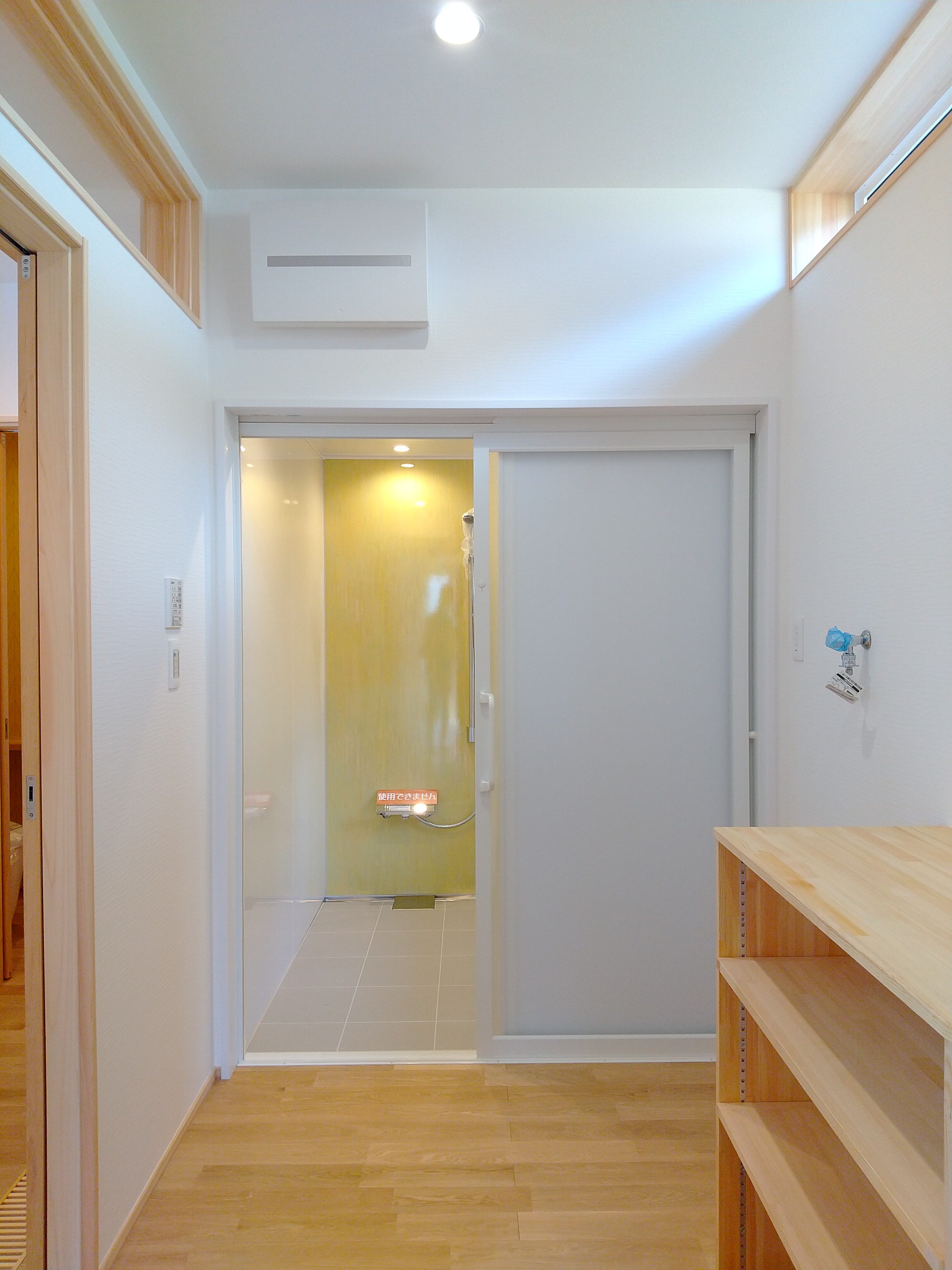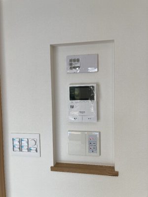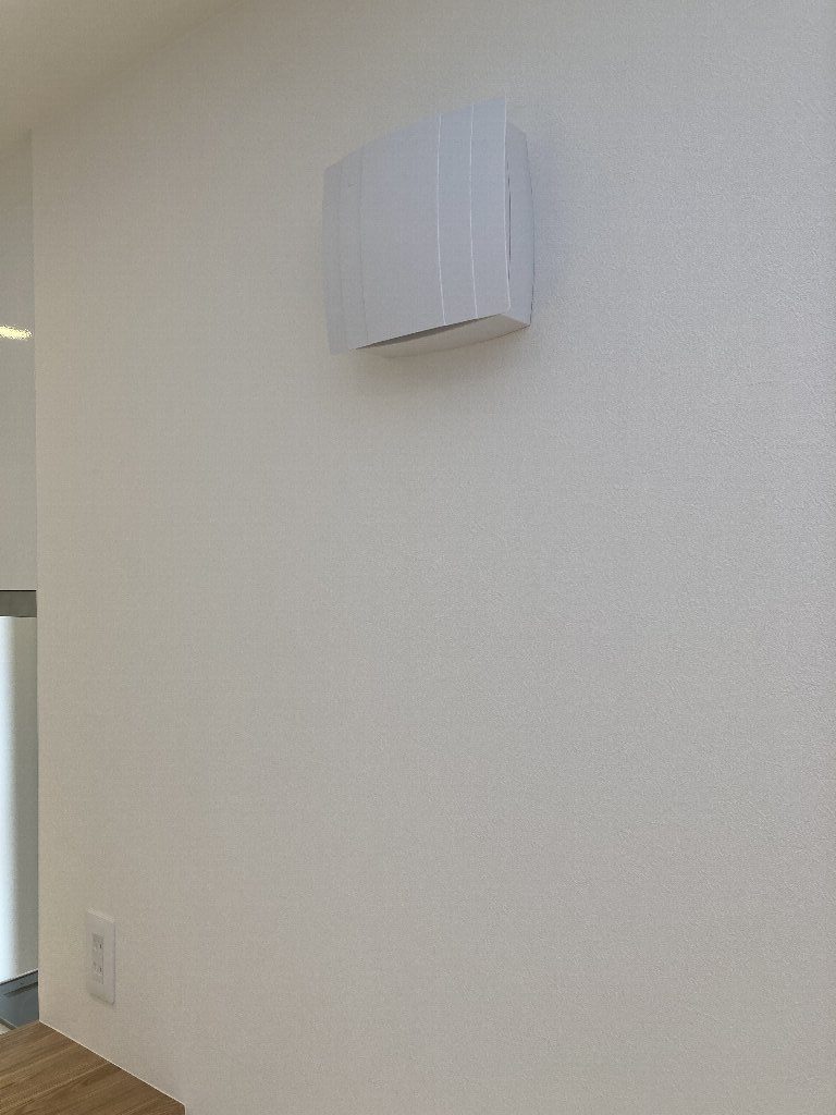 今回、熱交換器付換気扇はダクトレスを採用されました。昨日のような日差しが少ない日や、日当たりの悪い家、夜などは、太陽の恵み(日射取得)による自然の暖房が無いので、熱交換器が付いていると換気による冷暖房の負荷が低減でき、暖かさを持続させる事が可能です。冷暖房の負荷低減できたとしても、光熱費がお値打ちになるわけではないのですが、快適性を重視される方にはお勧めです。