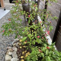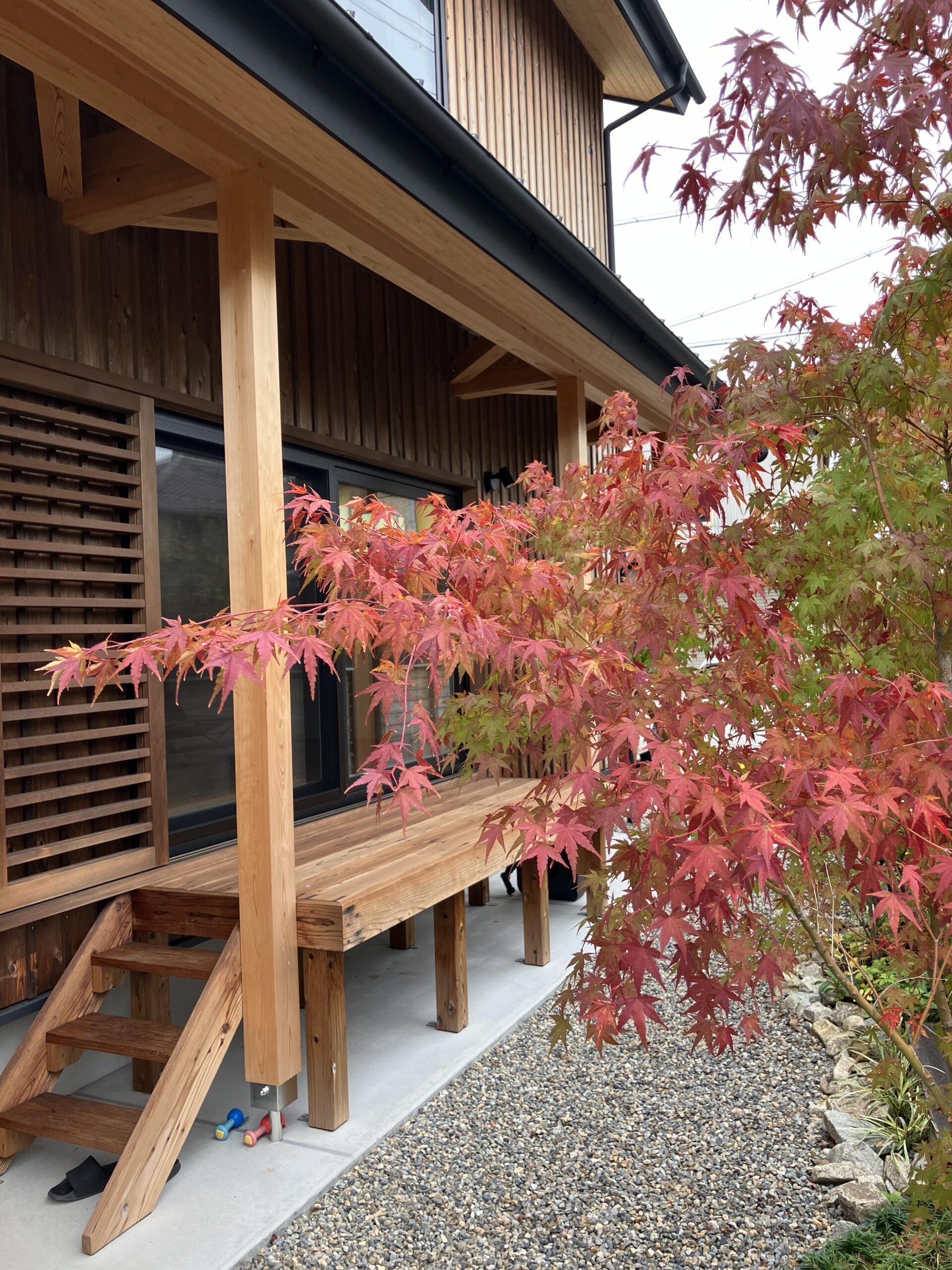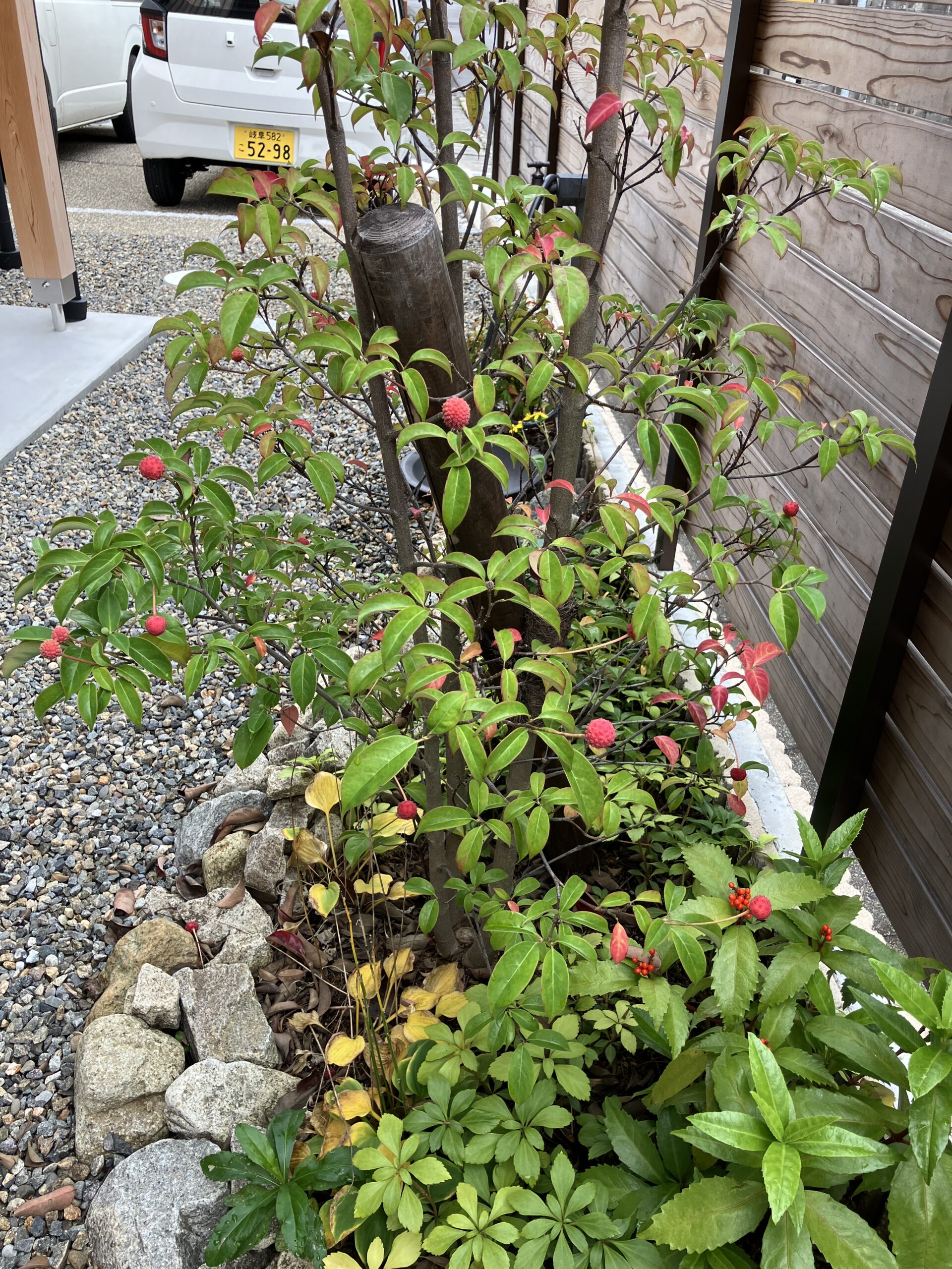 外構工事の際に植えたイロハモミジは紅葉し始め、ヤマボウシは赤い実がなっていました。gガーデンのs田さんにお任せで植えてもらった下草も、四季折々の花が咲き楽しまれているそうです。ミニ畑は、夏に少しだけ植えられたそうですが、お忙しいのでなかなか活用できずにみえるそうです💦たしかに、a君がもう少し大きくならないと難しいかも知れないなぁと提案したことを反省です。