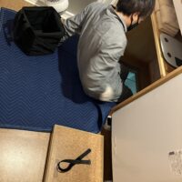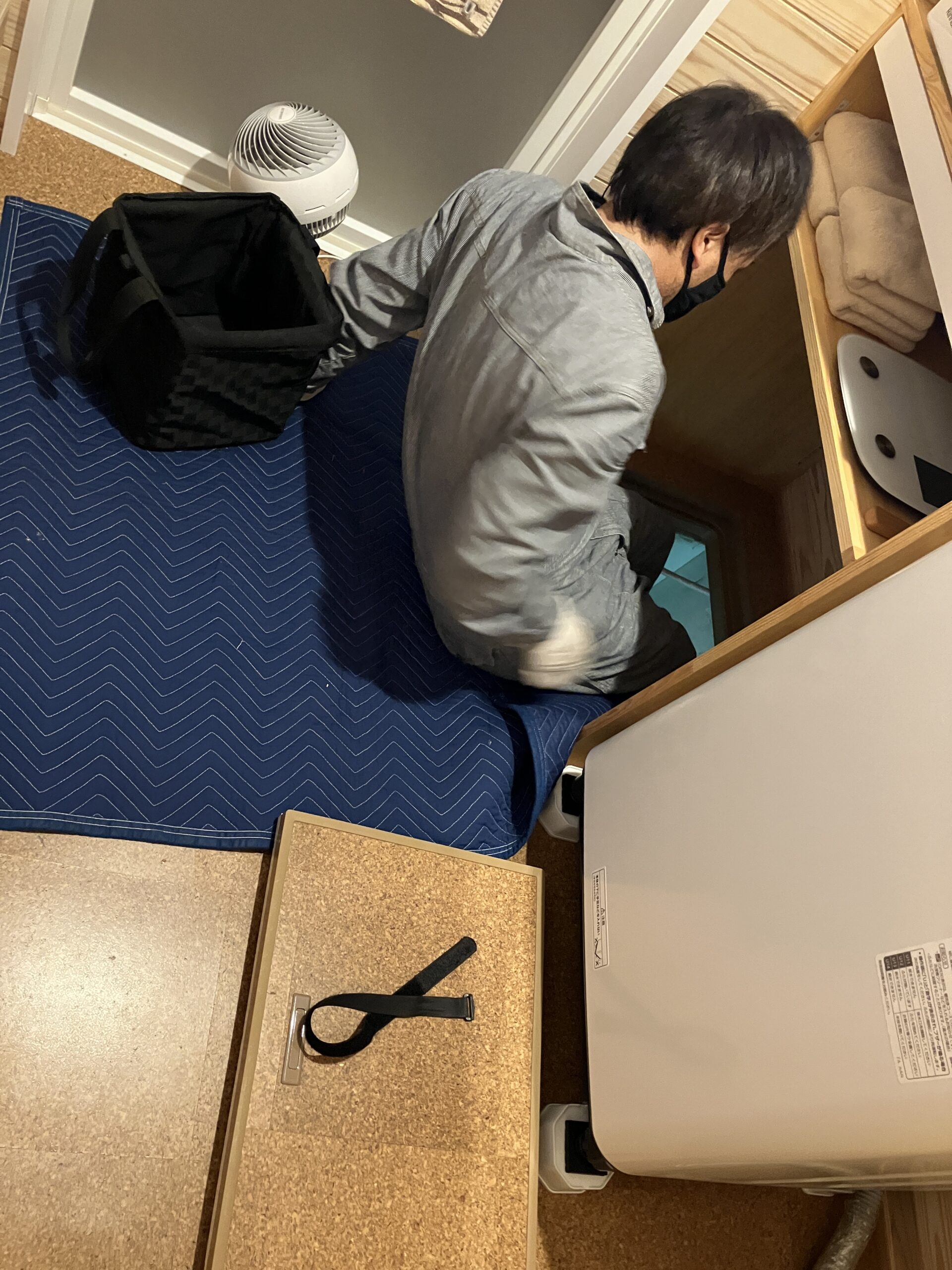 床下の点検も行いますので、なるべく物がいっぱいで移動させるのが大変な場所や、下に配管やダクト等があり入りにくい部分以外に点検口を計画します。k様のご主人も一度床下に入られたそうで、s水所長が入る様子や道具に興味津々の様子でした。