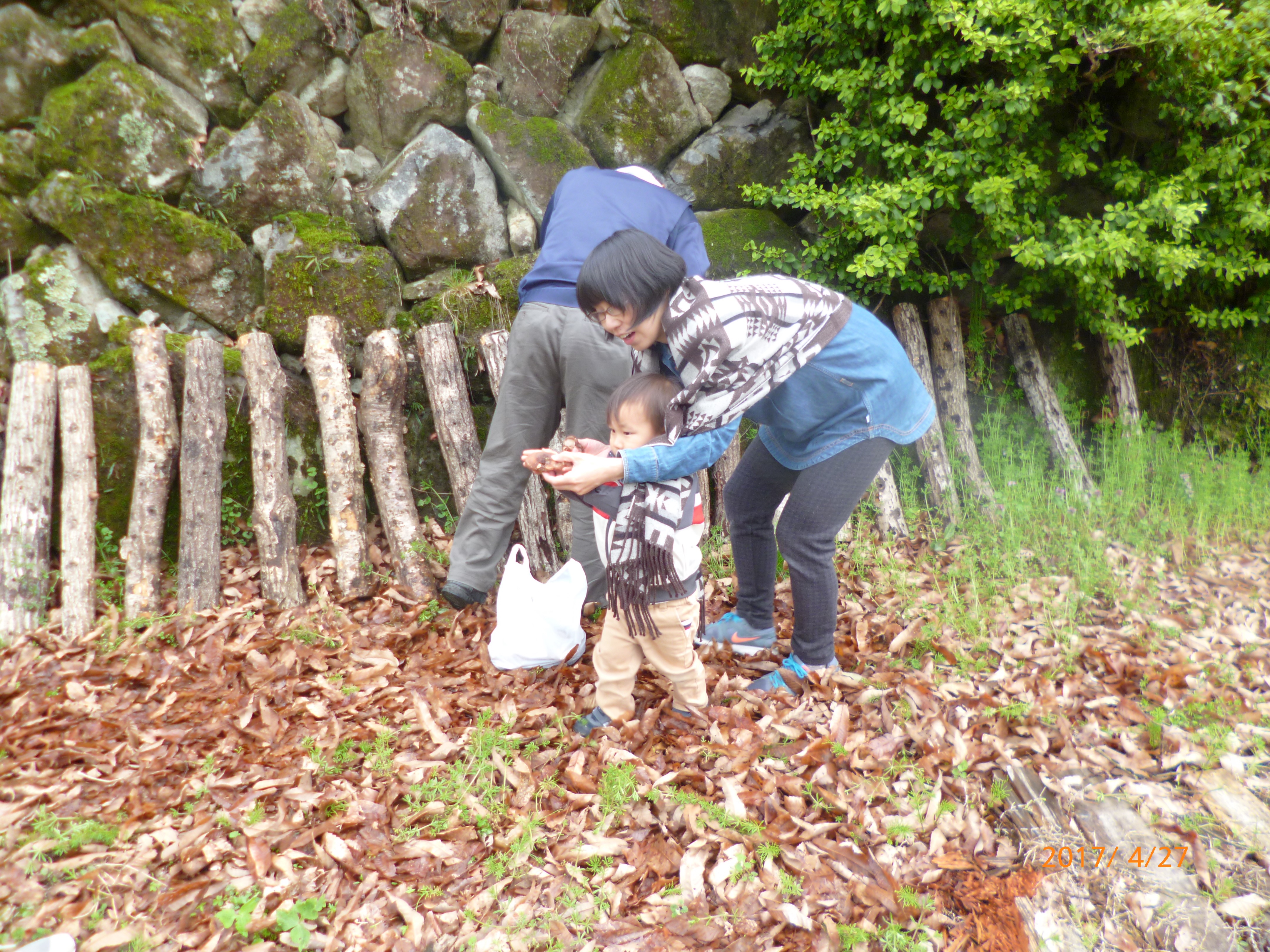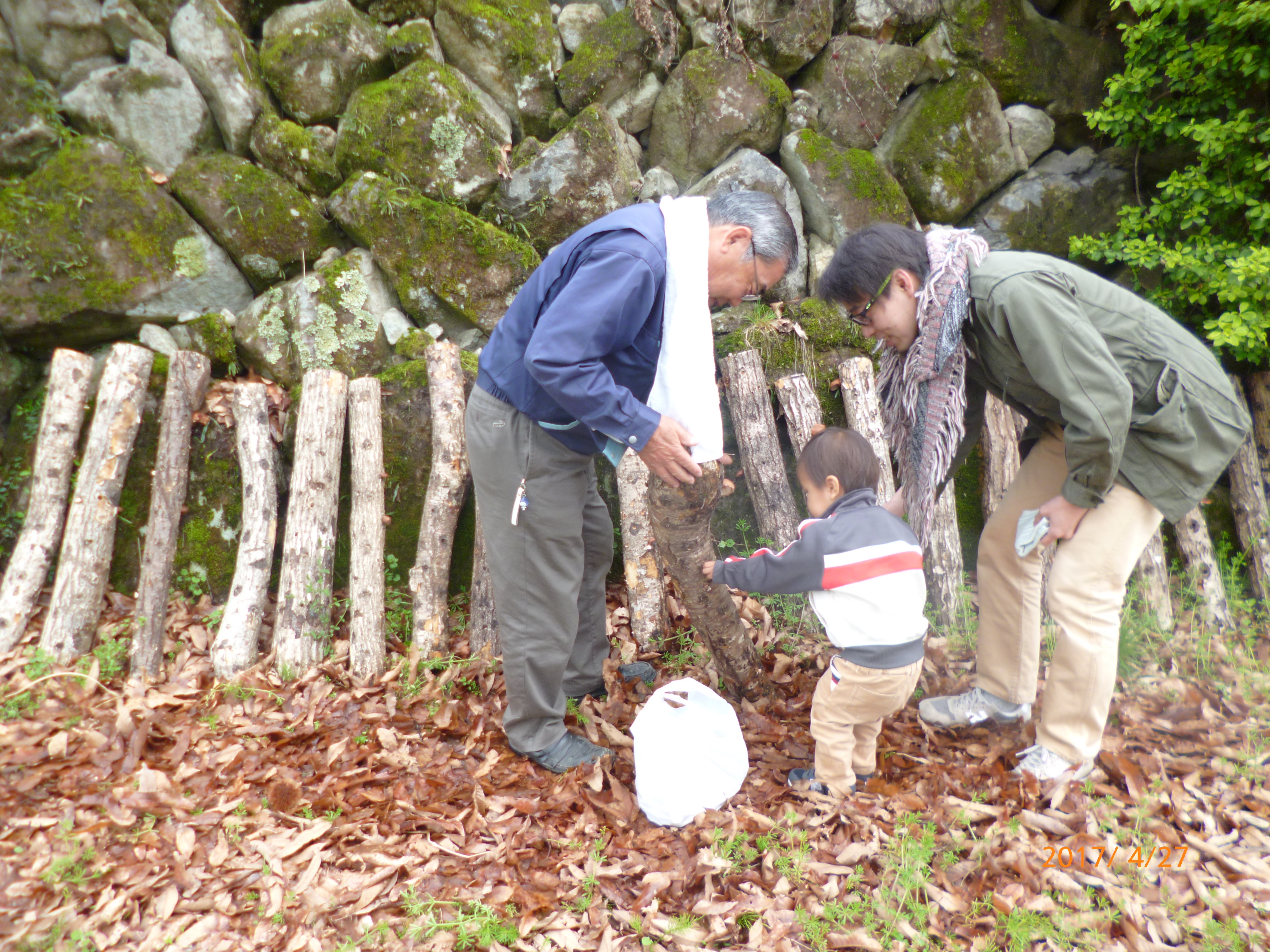 翌朝は椎茸がたくさん生えていましたので、椎茸狩りも体験して頂きました
