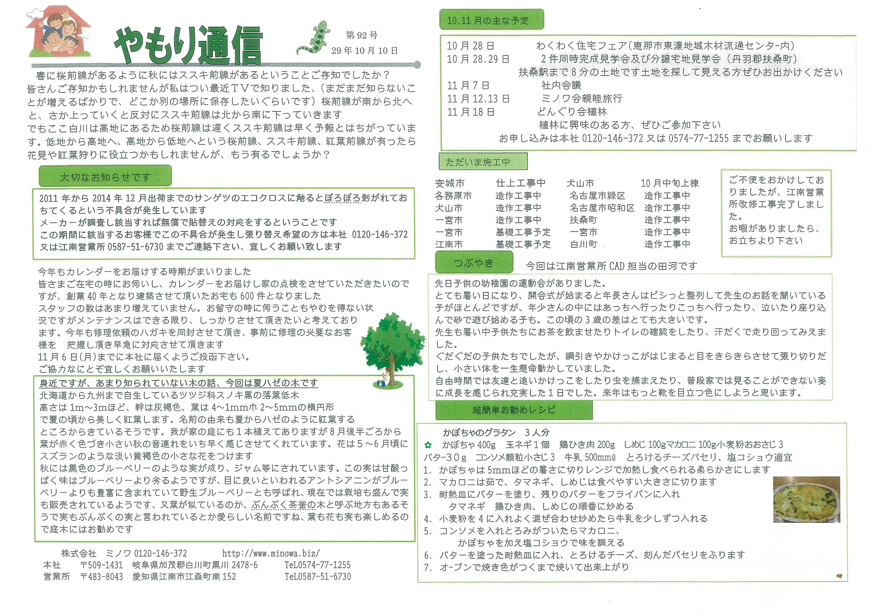 年々月日が流れるのが早くなっていくような気がします。 今年のカレンダ-も残り少なくなってまいりました 今年も年末点検の時期が近づき今回はやもり通信と共に修理依頼のハガキを同封させていただきました