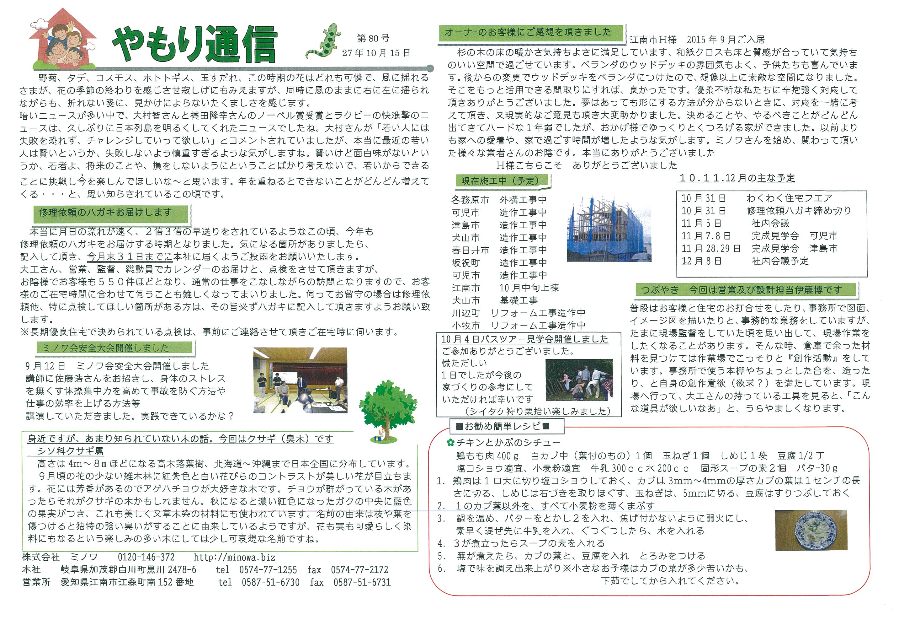 2か月に1回年6回発行しているやもり通信も80号となりました 本当に拙い文章で、内容も思いつくままのものですが、読んでくださっている方もいるようで、たま~に「楽しみにしていますよ」 とか「簡単レシピ作ってみましたよ、美味 […]