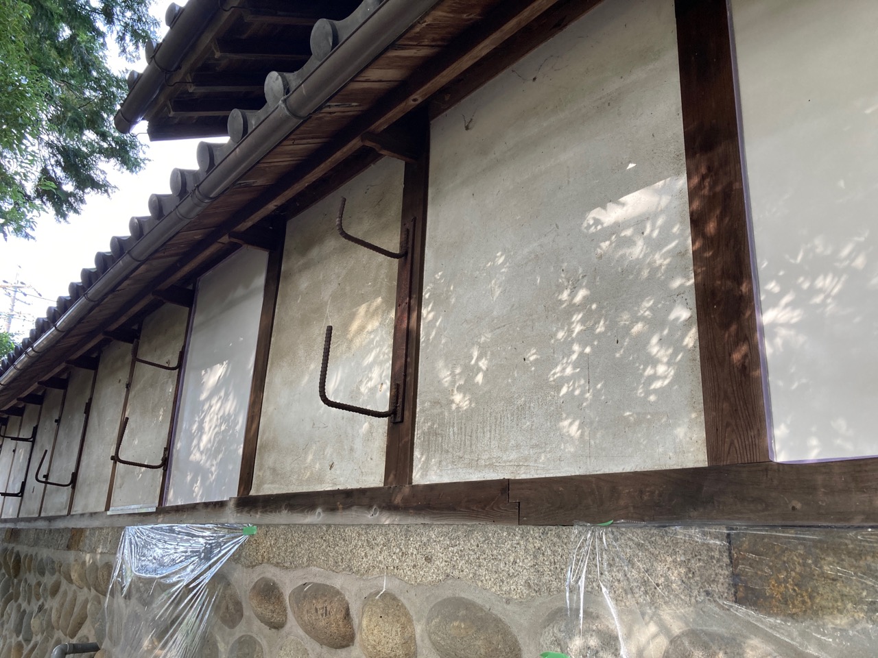 神社の漆喰壁