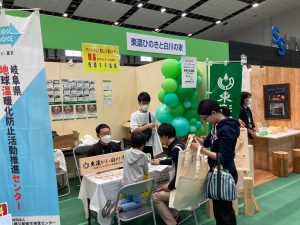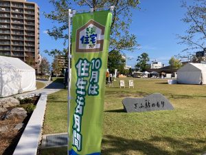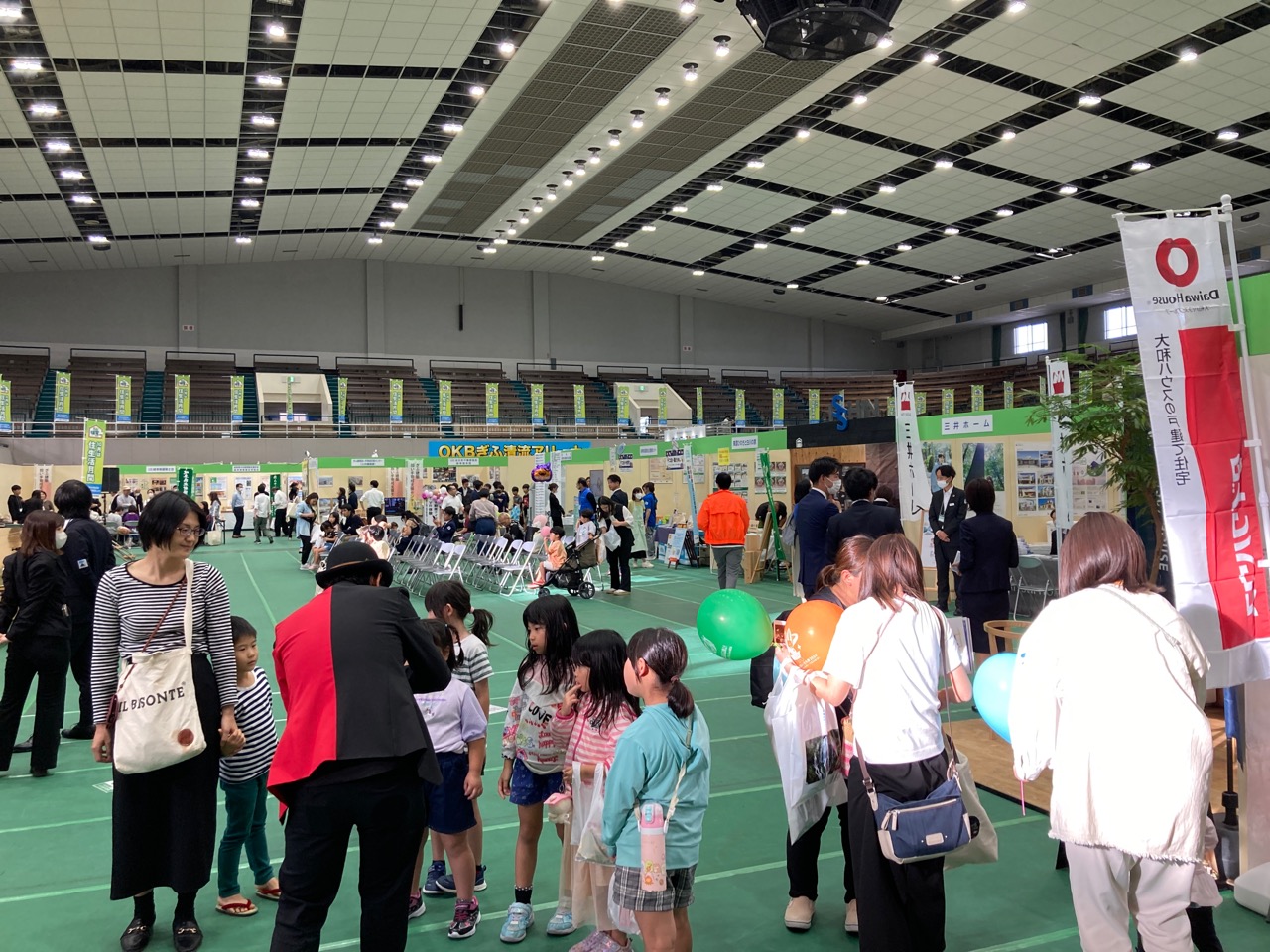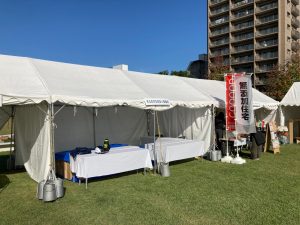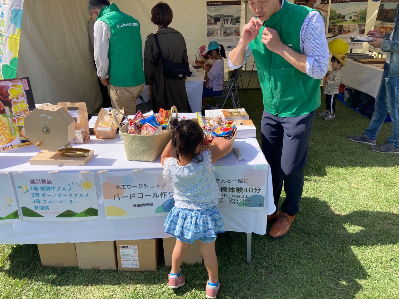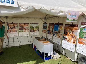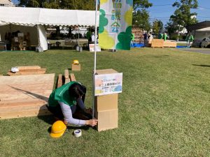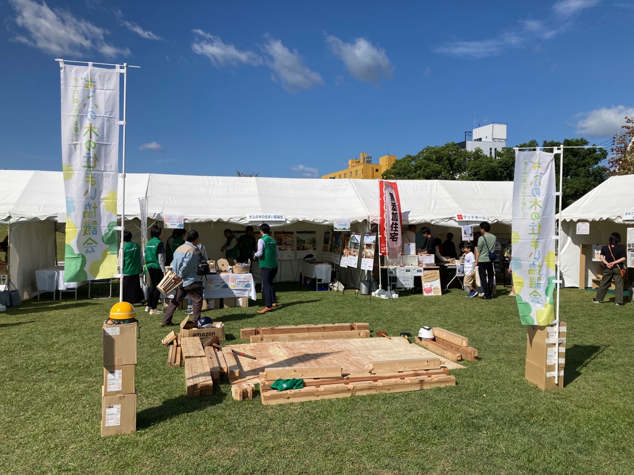 野外会場脇のアリーナの中では『東濃ひのきと白川の家』組合のブースも設けられ、こちらでも木造住宅の案内をしていました。その他企業もコロナ期間を耐え、この時を待っていたと言わんばかりの盛況、中には大学や高専の学生のブースも有り、非常ににぎやかな様相です。