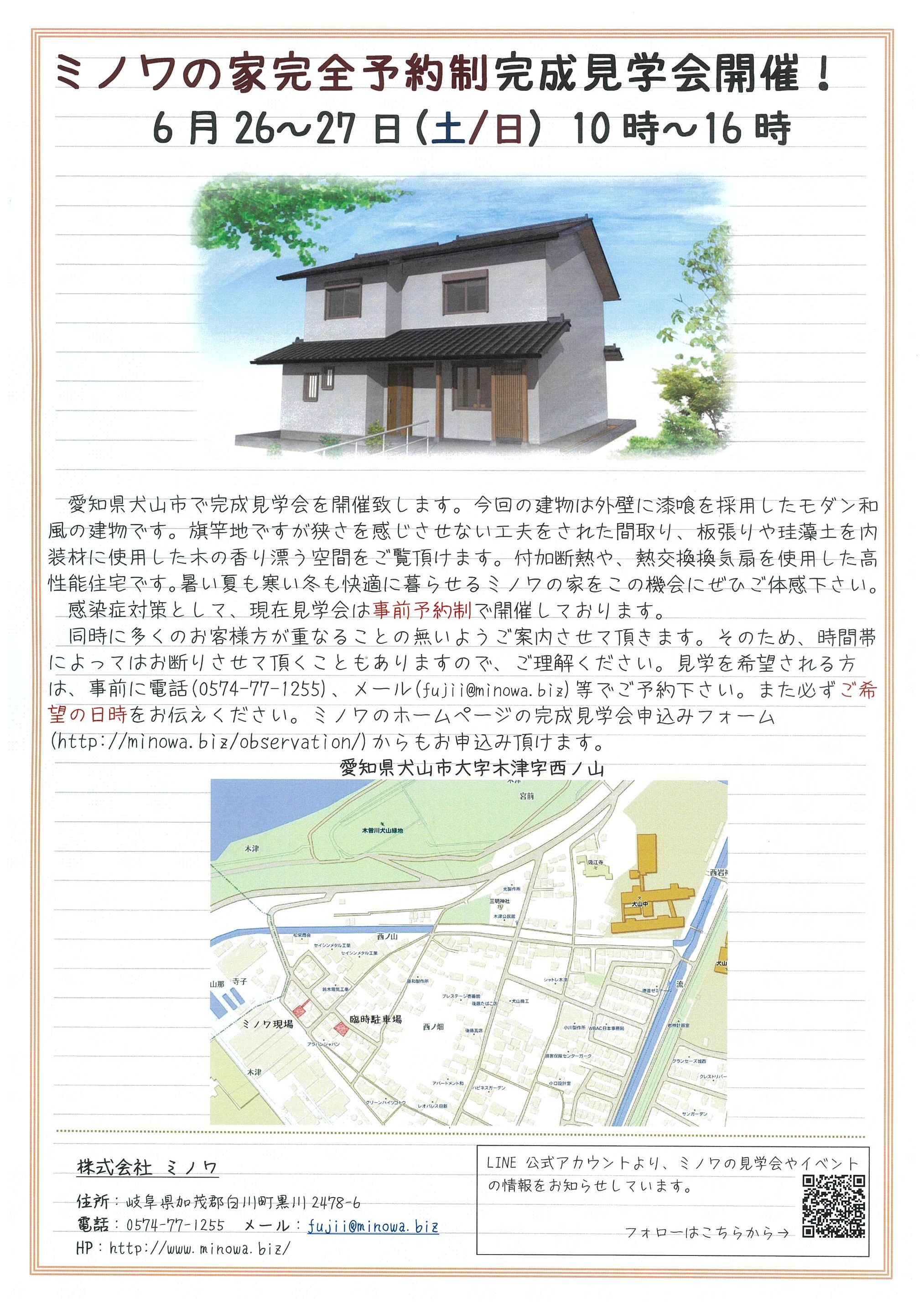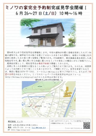 6月26日-27日 完全同居型二世帯住宅 完成見学会のお知らせ in犬山市 ※終了しました