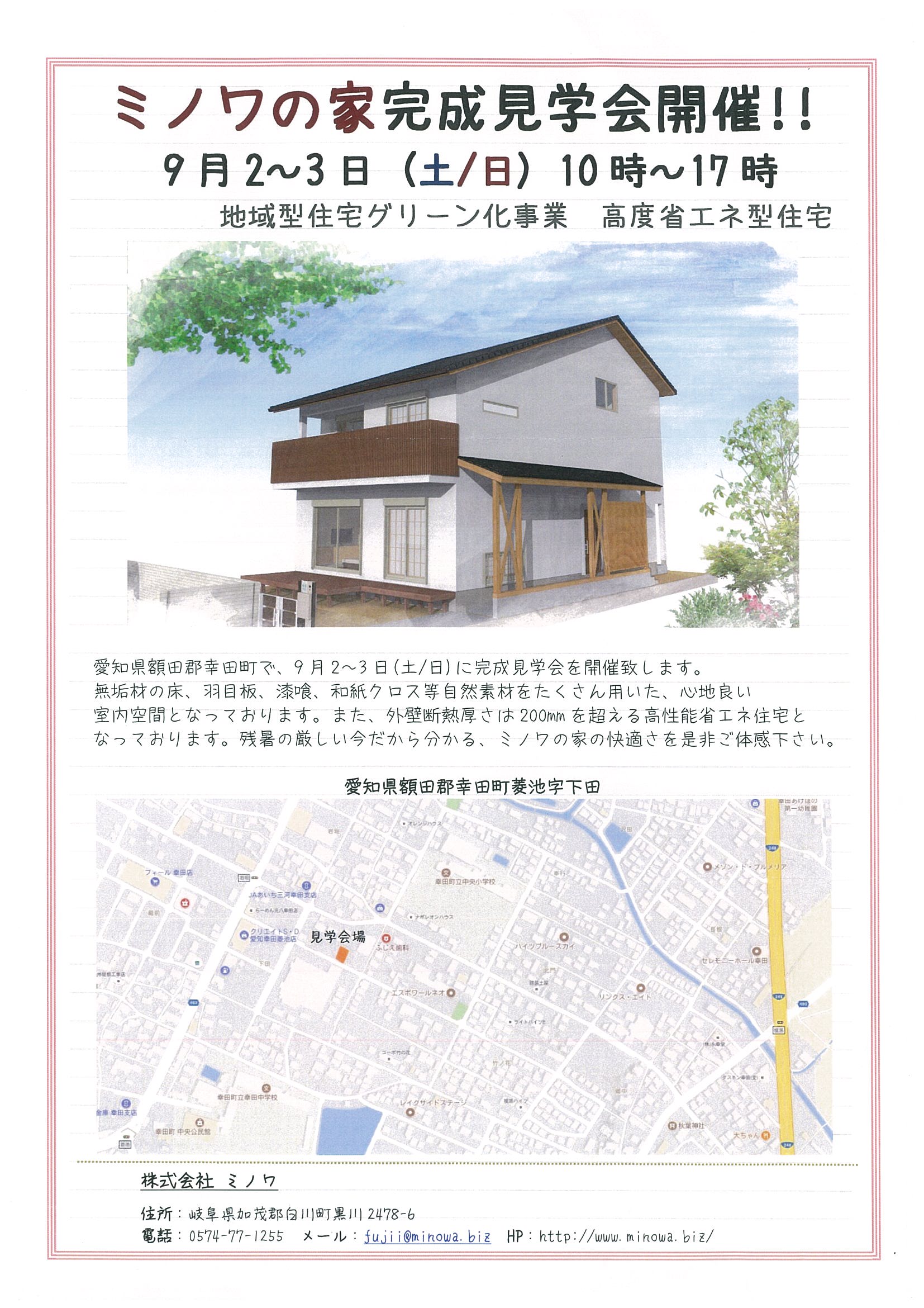 9月2日(土)3日(日)完成見学会開催します(完全予約制です)