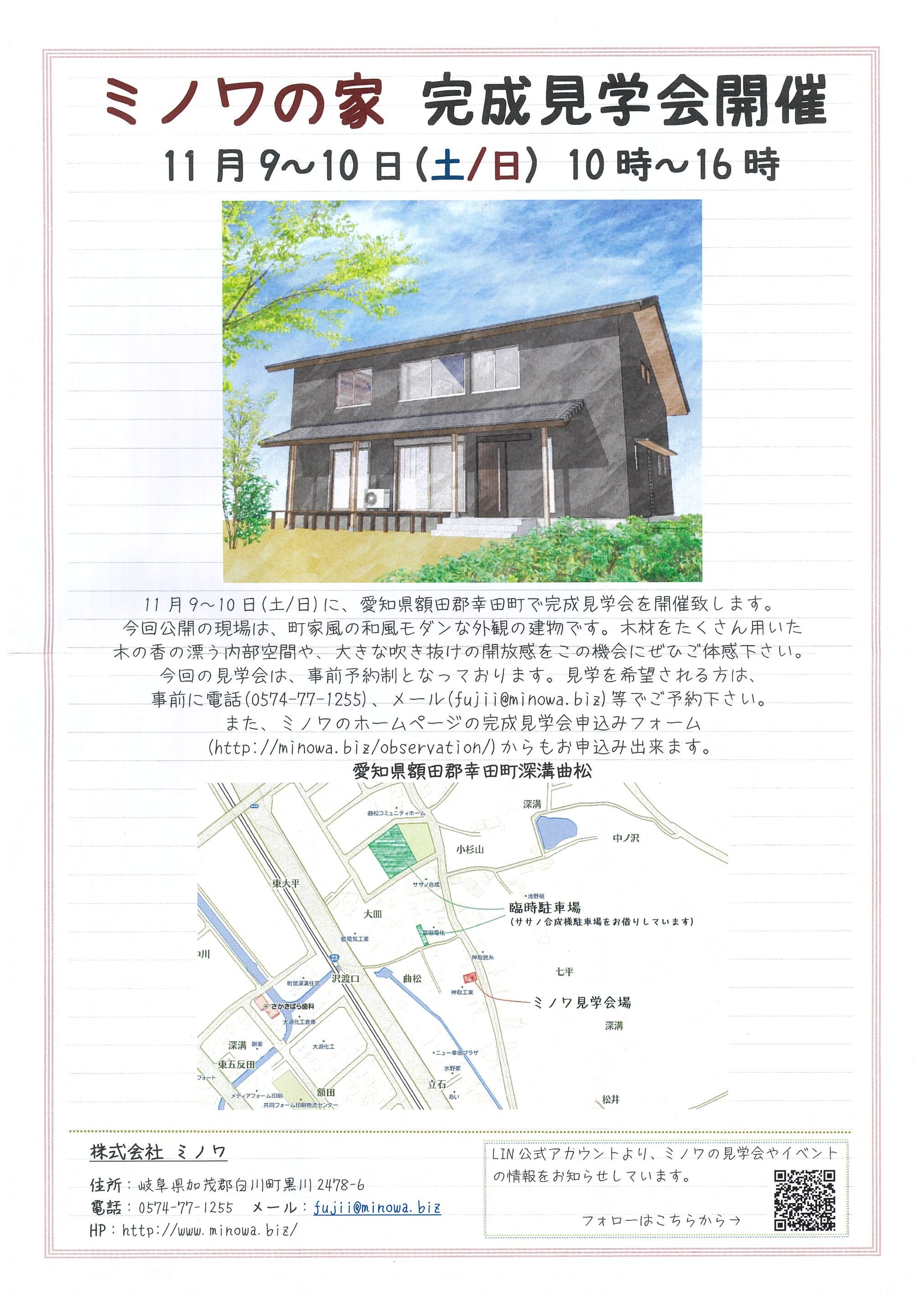 11月9日~10日(土、日) 額田郡幸田町において完成見学会を開催 ※終了しました