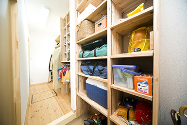 ミノワでは、間取り設計と同様、大容量の収納や、階段下やニッチなどデッドスペースを有効活用した収納のご提案をしています。