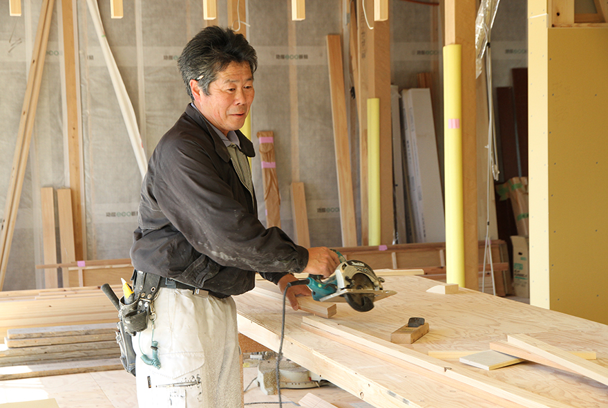 完成して今年で15年目。とにかく日当たりがよく暖かいと喜んでもらっています。当時も現在も変わらず、家を建てるのは基本的に大工一人。大勢の人手が必要な時は臨機応変に対応していますが、棟梁が最初から最後まで丁寧に仕上げます。「大工さんの仕事はとても順調で、滞ることは一切ありませんでした。昔街中で商売をしていた時内装をしてもらったことがあったんですが、ミノワさんはやり方が全然違ってとても丁寧で。寸法を測るというのはどこも同じだと思いますが、細かいところにまで気を使ってくれているのがよく分かりました」。建築中は毎日のように現場へ足を運んでくれたK様。工事の最中もさまざまな相談をして一緒に作り上げました。