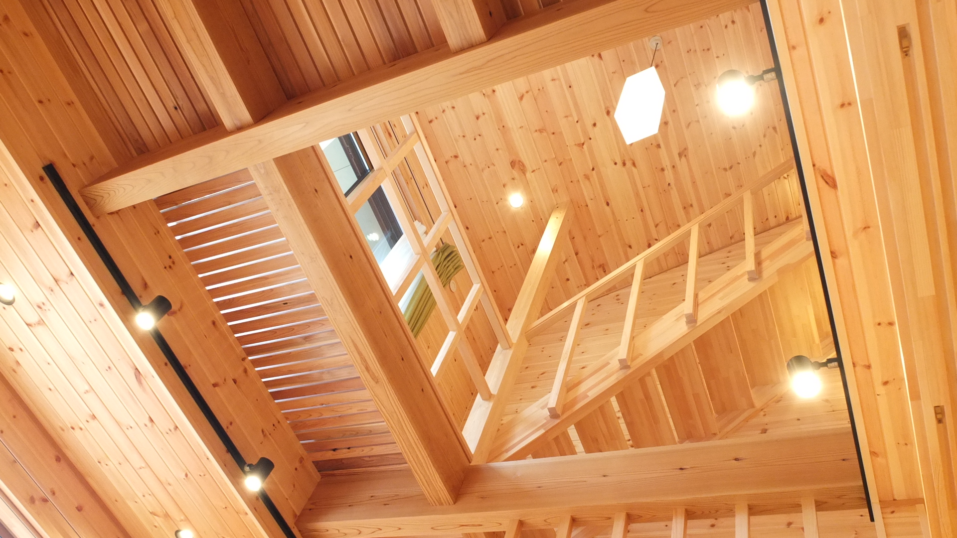 n様のご実家をリフォーム工事された設計士さんとの打ち合わせで、ご実家同様、室内の内装はほとんどすべてパインの羽目板やフローリングで統一。一見山小屋風の屋内と南側の自然豊かな眺望も相まって、自宅にいながら別荘地に来ているような感覚をおぼえる空間となりました。