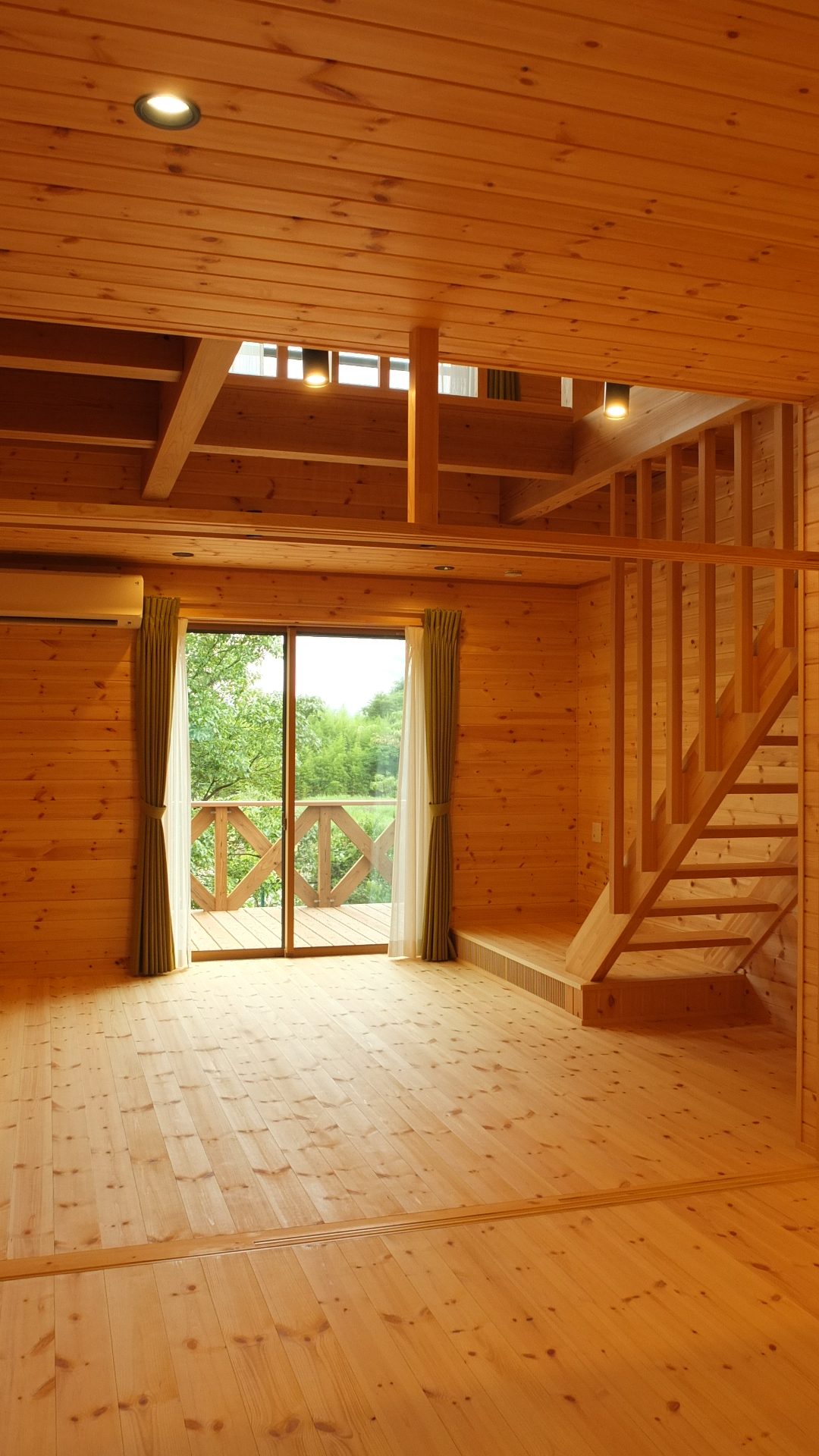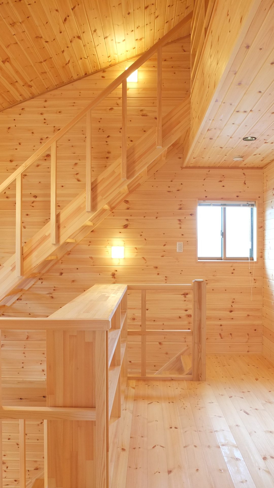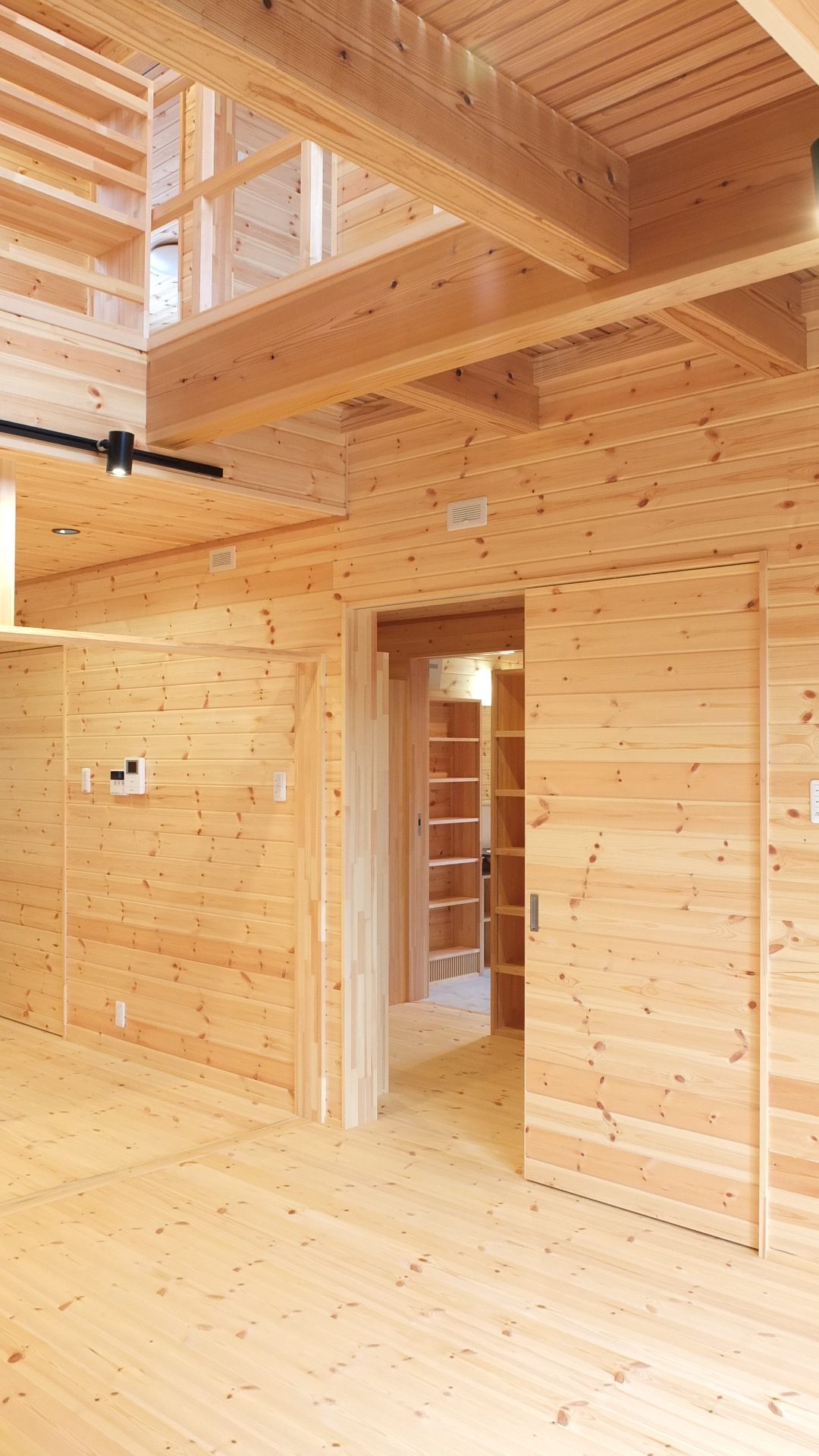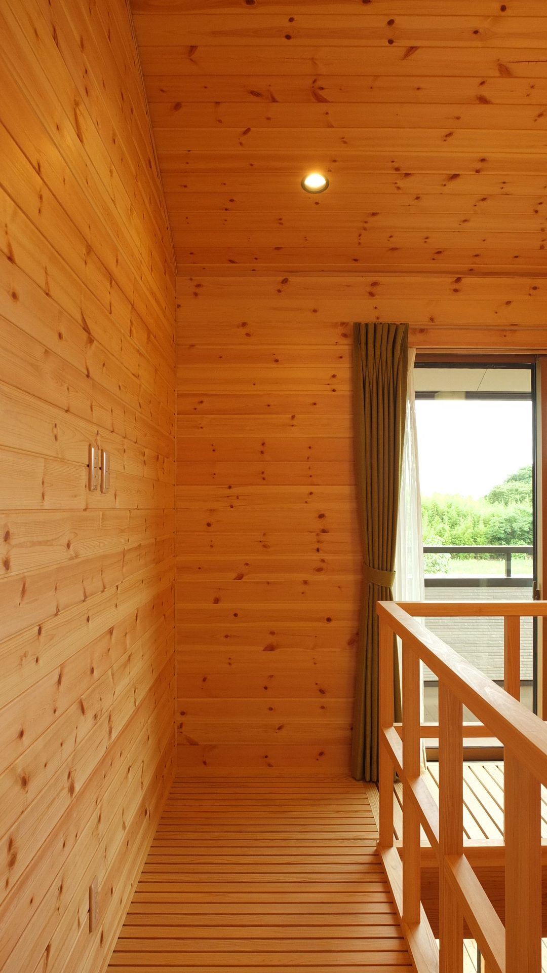 n様のご実家をリフォーム工事された設計士さんとの打ち合わせで、ご実家同様、室内の内装はほとんどすべてパインの羽目板やフローリングで統一。一見山小屋風の屋内と南側の自然豊かな眺望も相まって、自宅にいながら別荘地に来ているような感覚をおぼえる空間となりました。