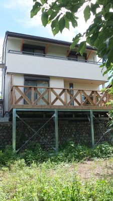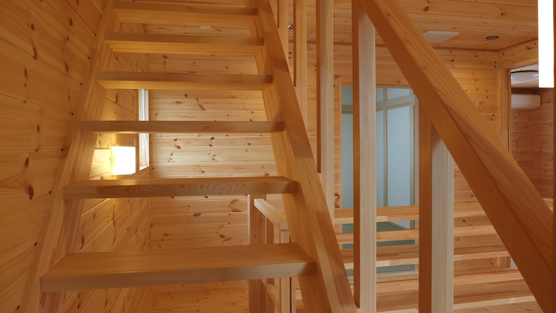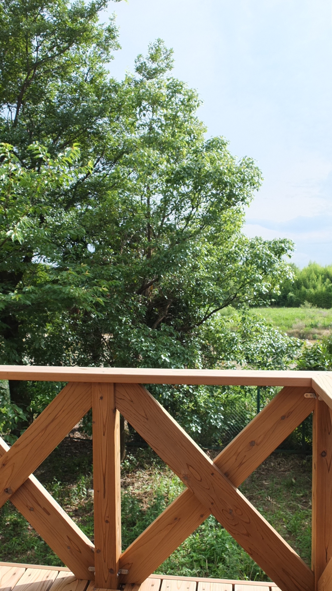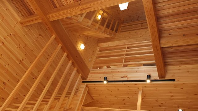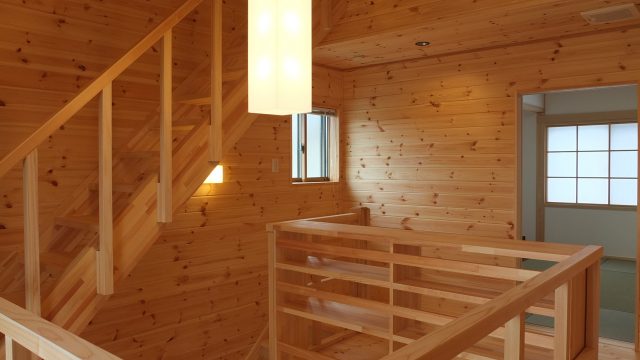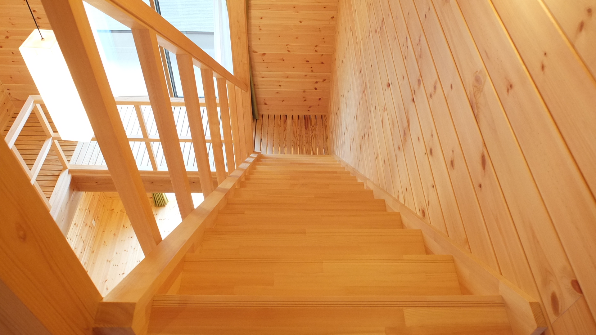 n様のご実家をリフォーム工事された設計士さんとの打ち合わせで、ご実家同様、室内の内装はほとんどすべてパインの羽目板やフローリングで統一。一見山小屋風の屋内と南側の自然豊かな眺望も相まって、自宅にいながら別荘地に来ているような感覚をおぼえる空間となりました。