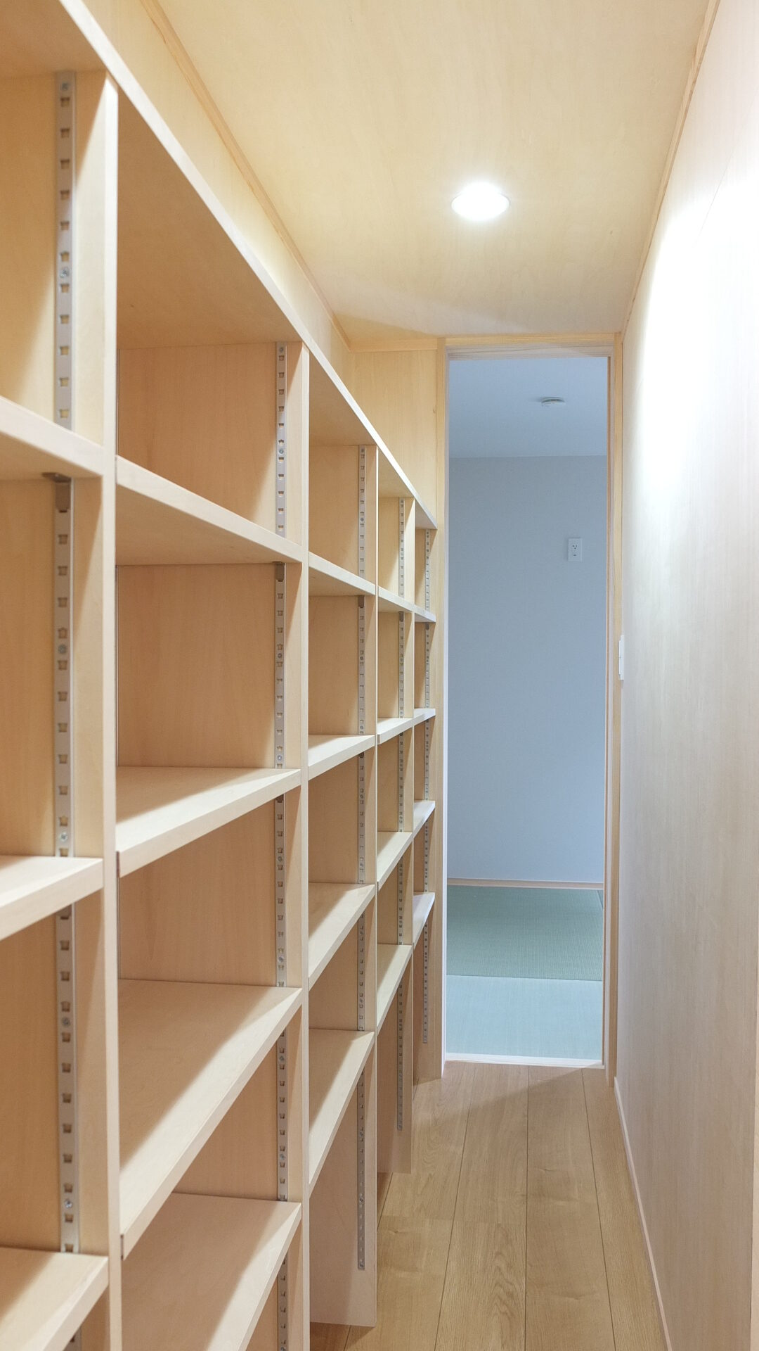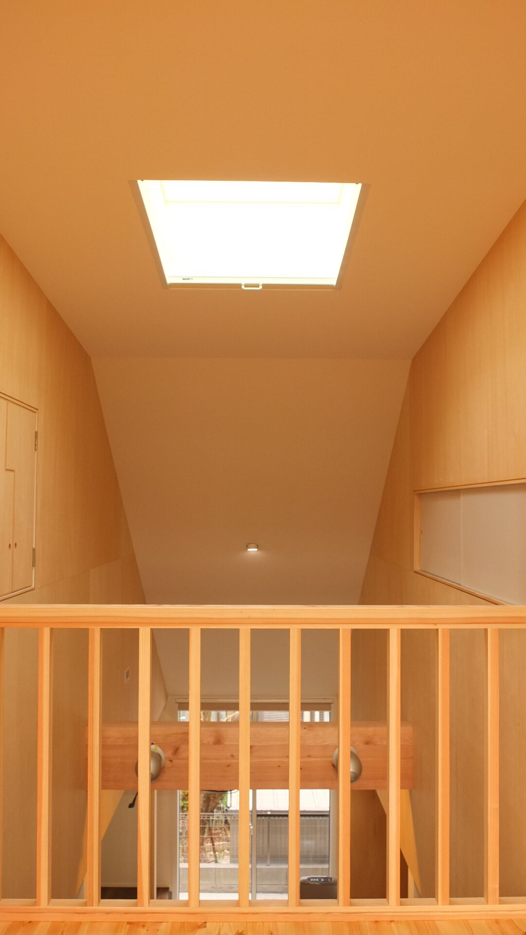 内部構成は中央を貫く『路地的スペース』となるLDKと吹抜、それらに付随する諸室が両サイドを挟み、路地的スペースを介してコミュニケーションが生まれます。各諸室は極めてコンパクトに、天井低くつくられていますが、路地的スペースとの関係性が閉塞感を感じさせません。