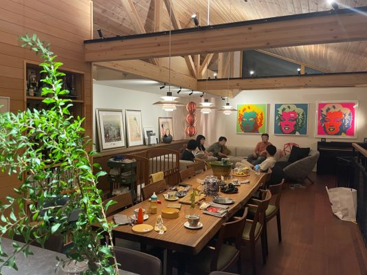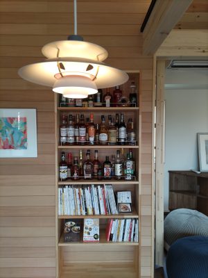 2階LDKは大人数を招いたりするという性格から無柱空間とする事がs様ご希望だったとの事です。設計士tさんは木造住宅でそのような柱の無い大空間を実現するために、集成材をスチールのプレートとドリフトピンで緊結するトラス構造の棟木で屋根構造を支える計画をされました。図面をもらってコンセプトを聞いた時は『流石は設計士さん。スゴイ事を考え付くものだ』と度肝を抜かれる思いでした。それというのも人をたくさん招いて食事を振舞うのが大好きだというs様のお人柄のため。tさんがそのご希望を確実に実現するため。詳細な構造計算が必要であり、トラスを構成する鉄鋼や集成材の加工など『だいぶ手間暇や費用が掛かりますよ?』と尋ねた際、『それが私がやりたい事です。』と一点の迷いなく言い切ったs様にもう一度度肝を抜かれる事になりました。