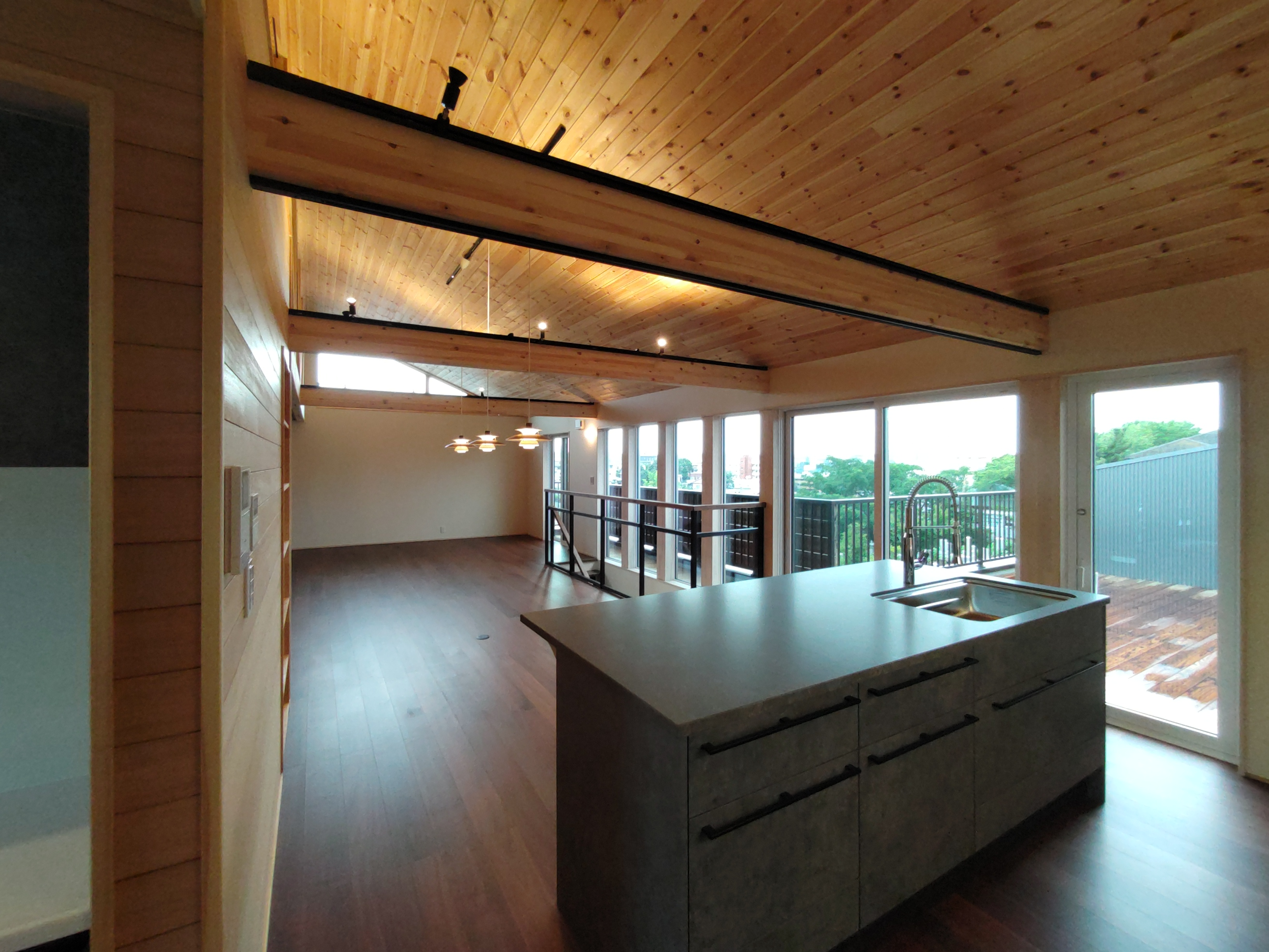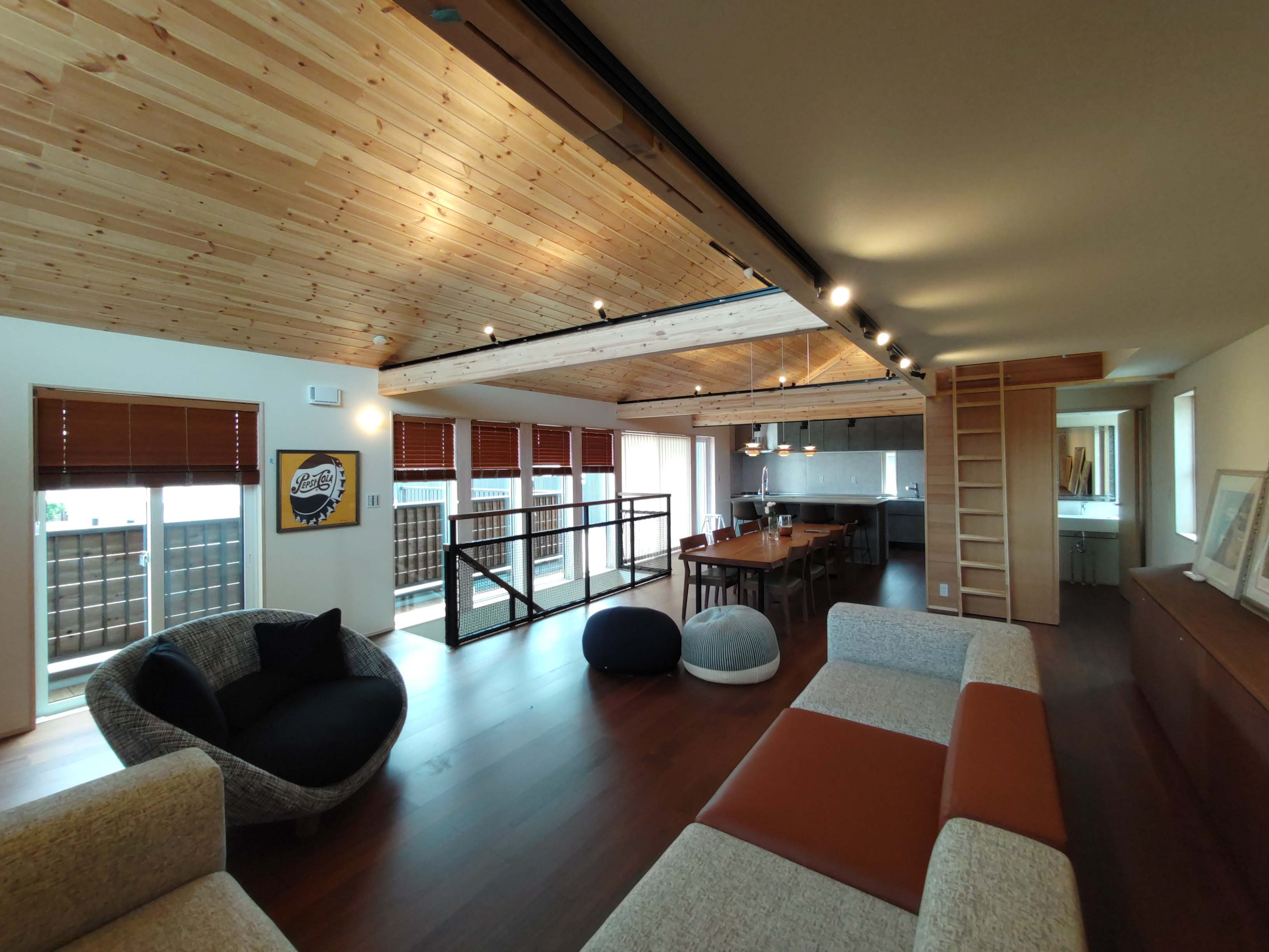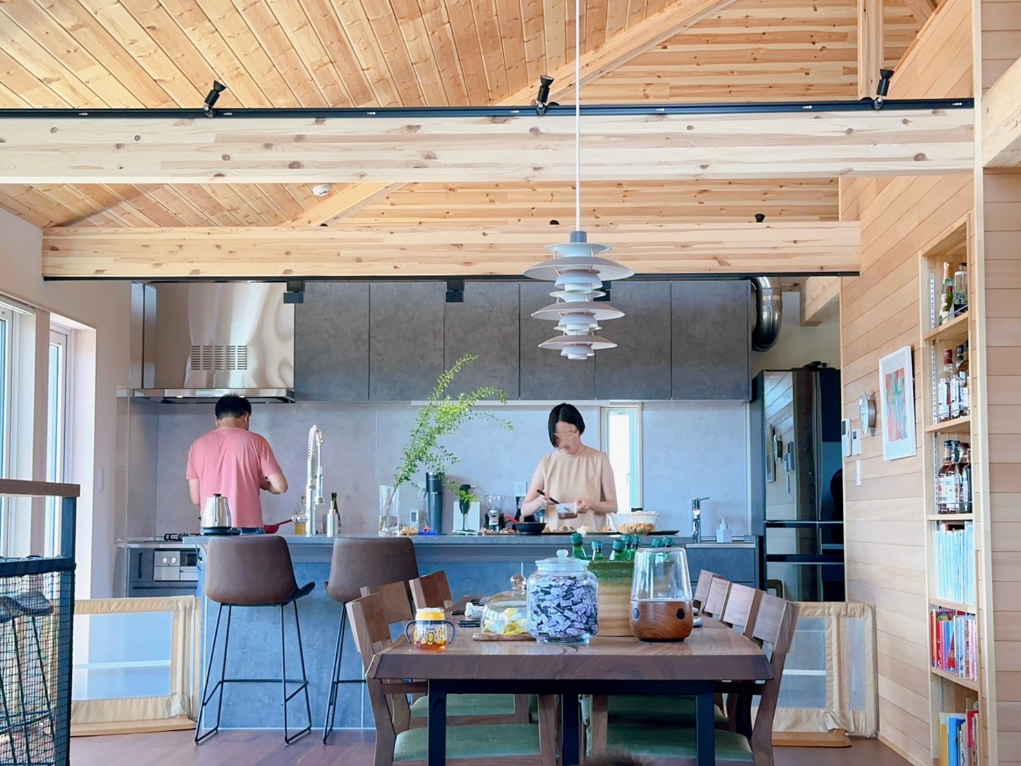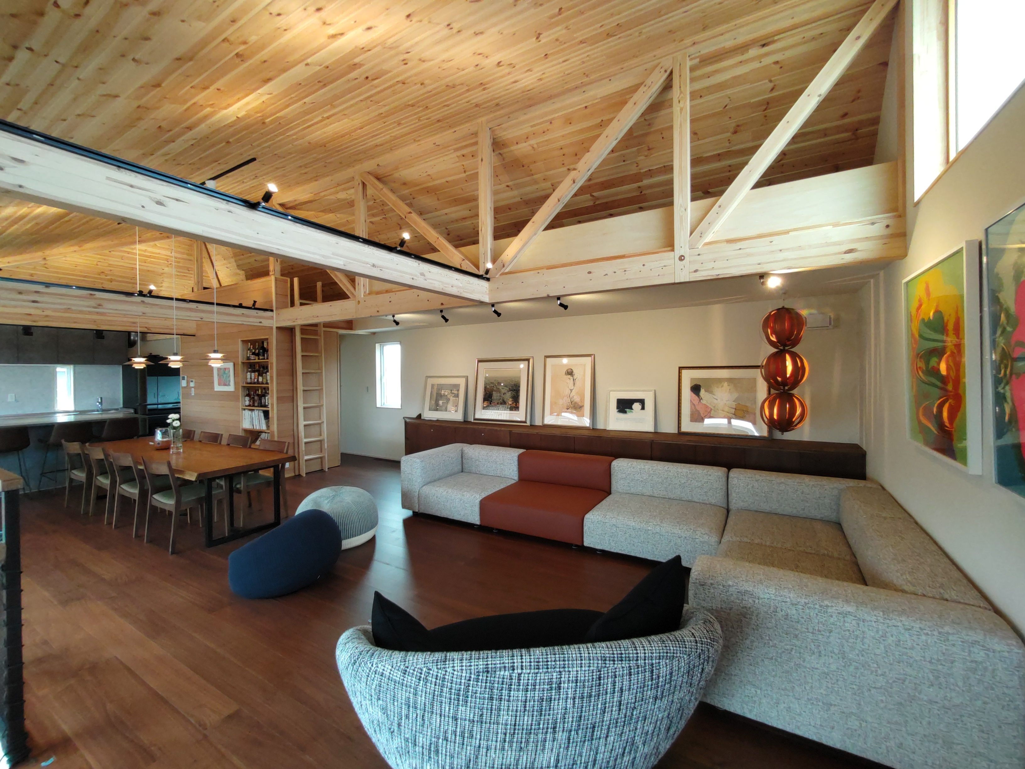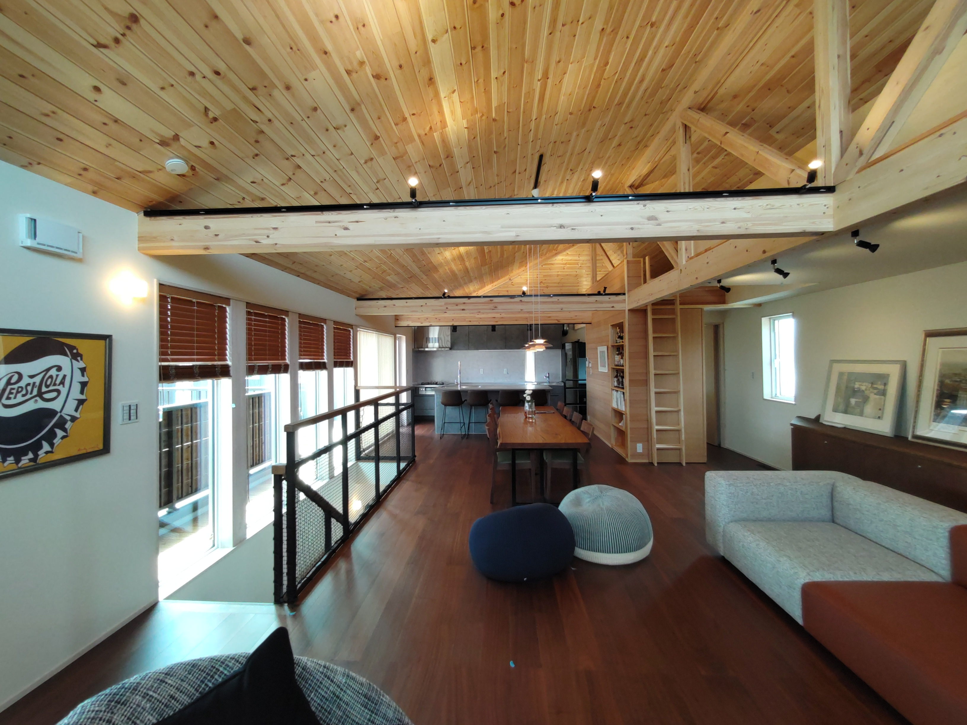 家族と来客が楽しく過ごすための大空間を実現した大スパン木造トラスの家:名古屋市rsms様邸