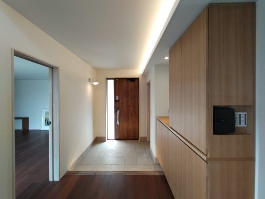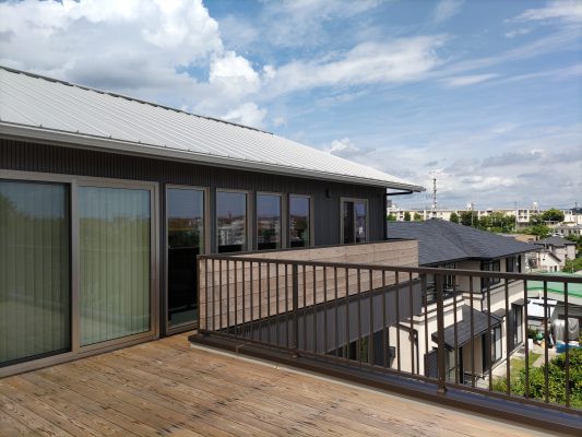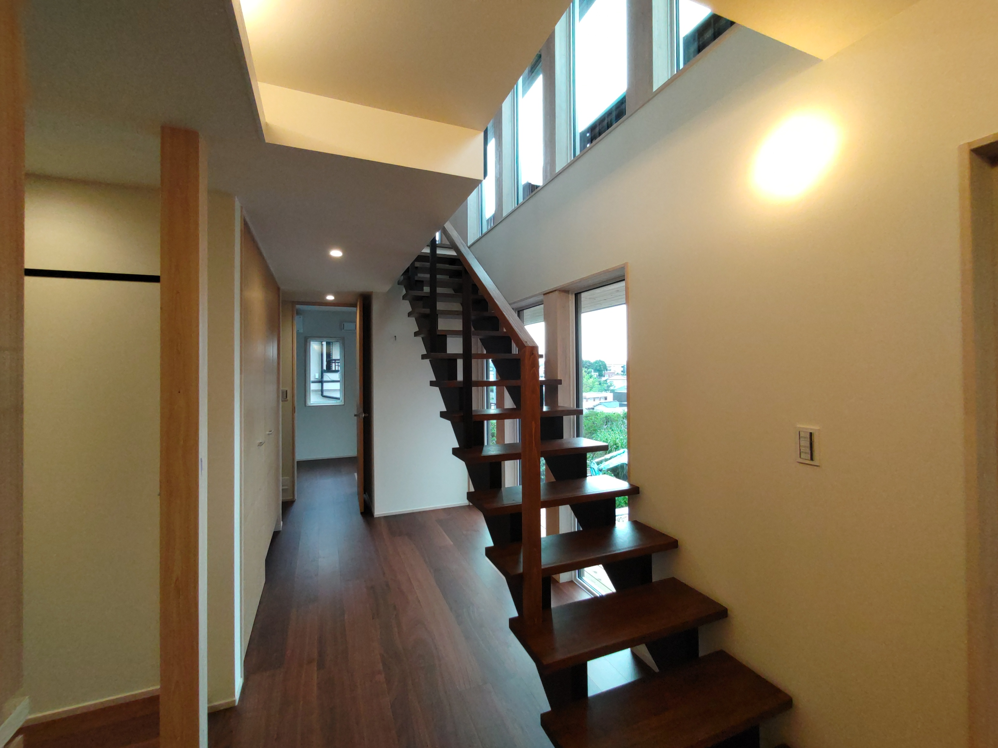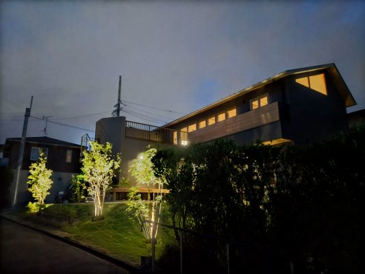 名古屋市千種区の覚王山付近は土地のアップダウンが激しく、坂道を上ったり下りたりが連続している寺社町にあたります。s様の住宅はその丘のほぼ一番高い場所に計画されました。そのため南東側に広がる東山の町の眺望や夜景が素晴らしく、遮るもの無く吹く風の心地よい場所でもあります。