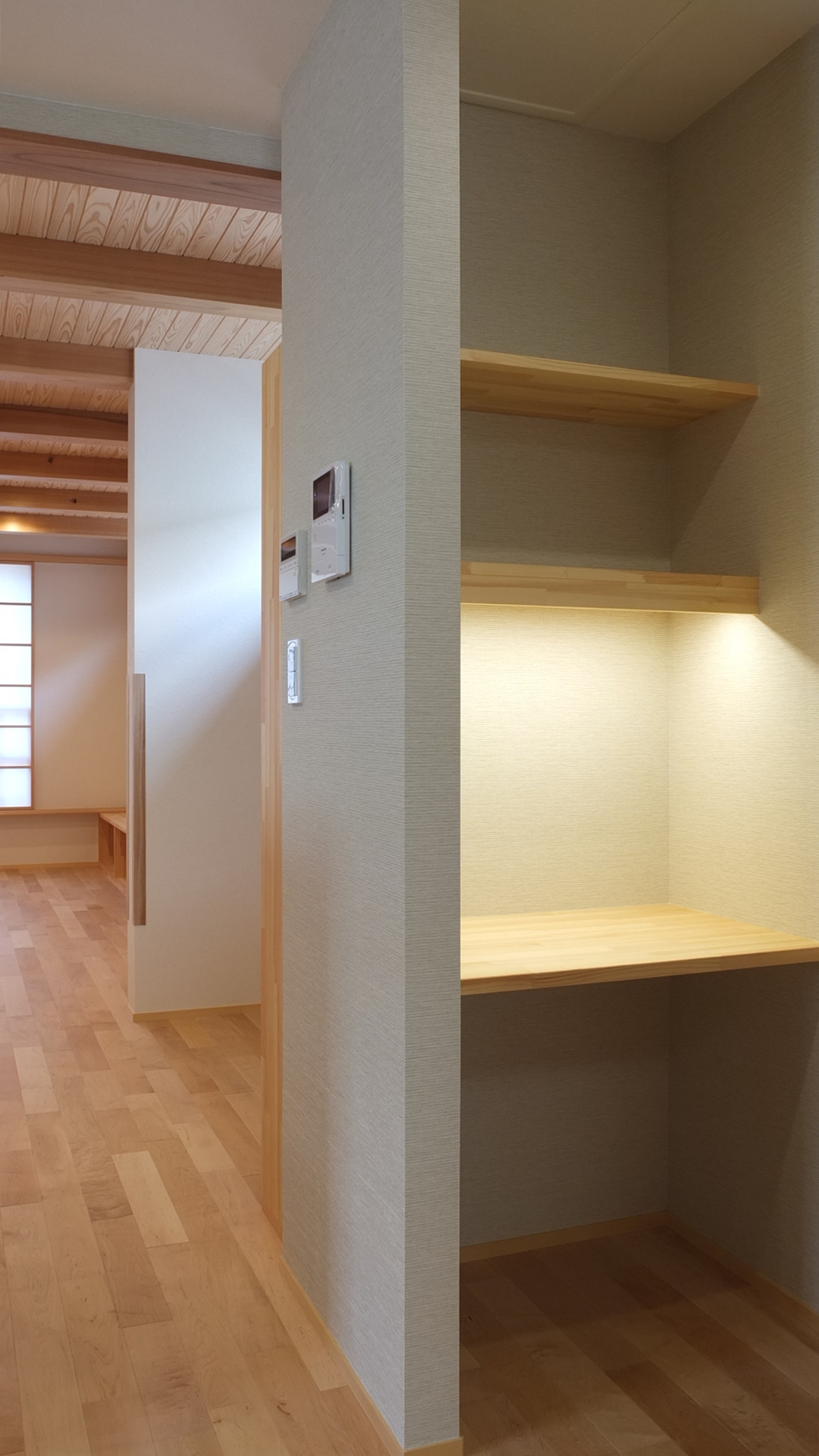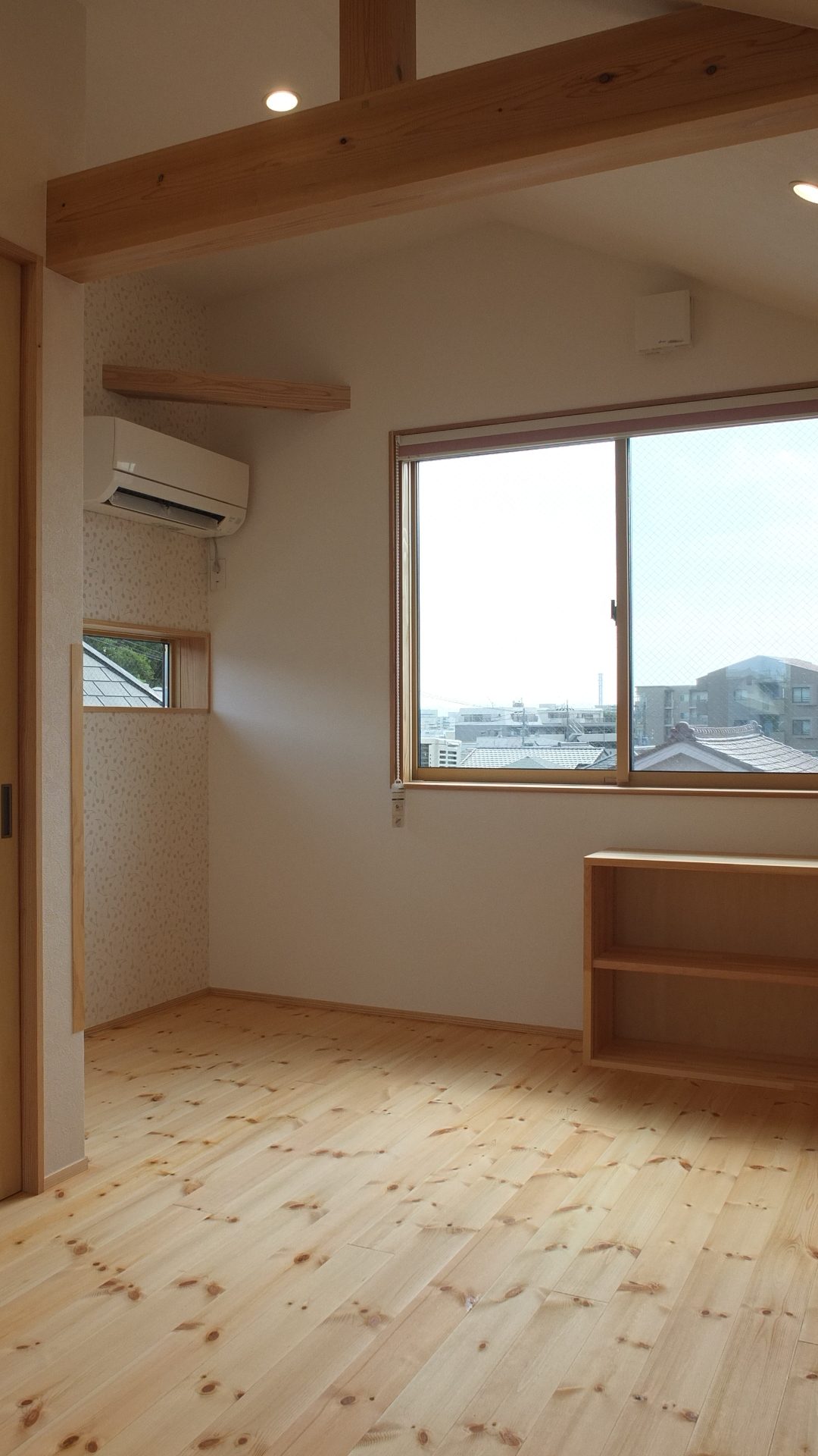 [内装]床:メープル材、パイン材 内壁:エコクロス貼、杉材 天井:エコクロス貼、杉材