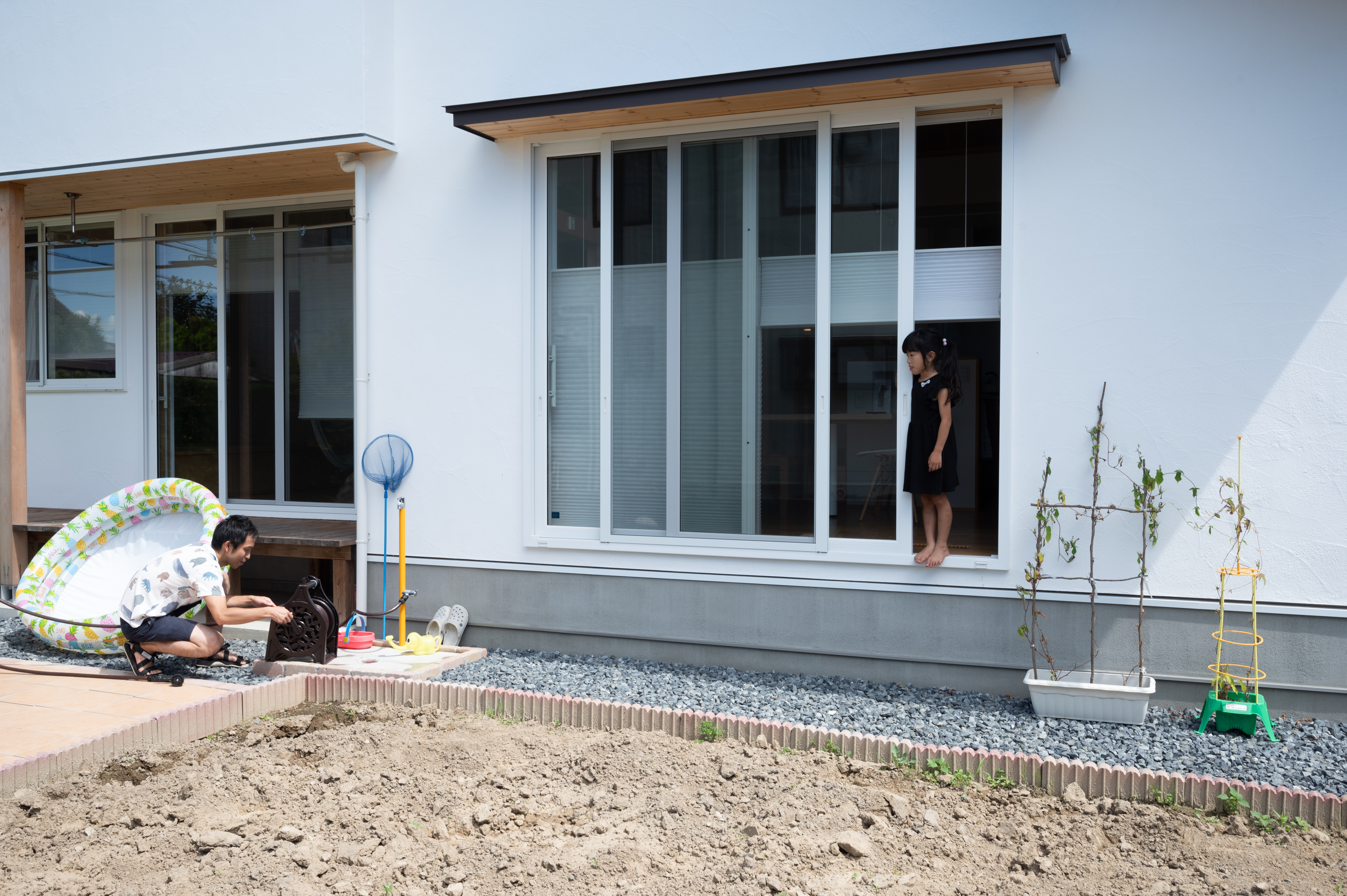 今回このような屋内の生活空間に遊び場いっぱいの住宅を担当できる幸運に恵まれ、20数年前には思いもよりませんでしたが当時空想していたコンセプトが結実した思いがしました。mi様に感謝を込めて『INandOUT』の名を冠させていただきたいと思います。