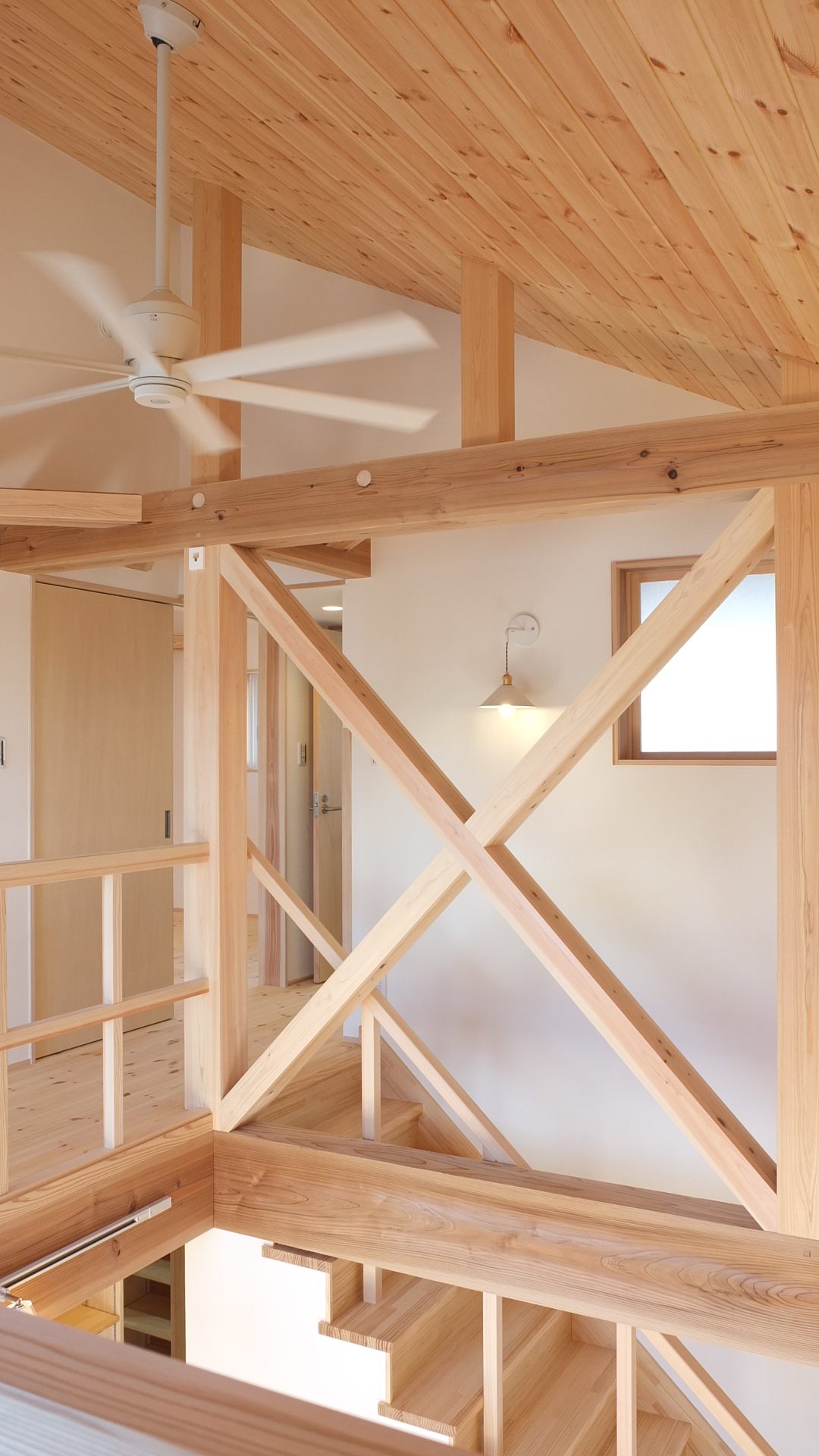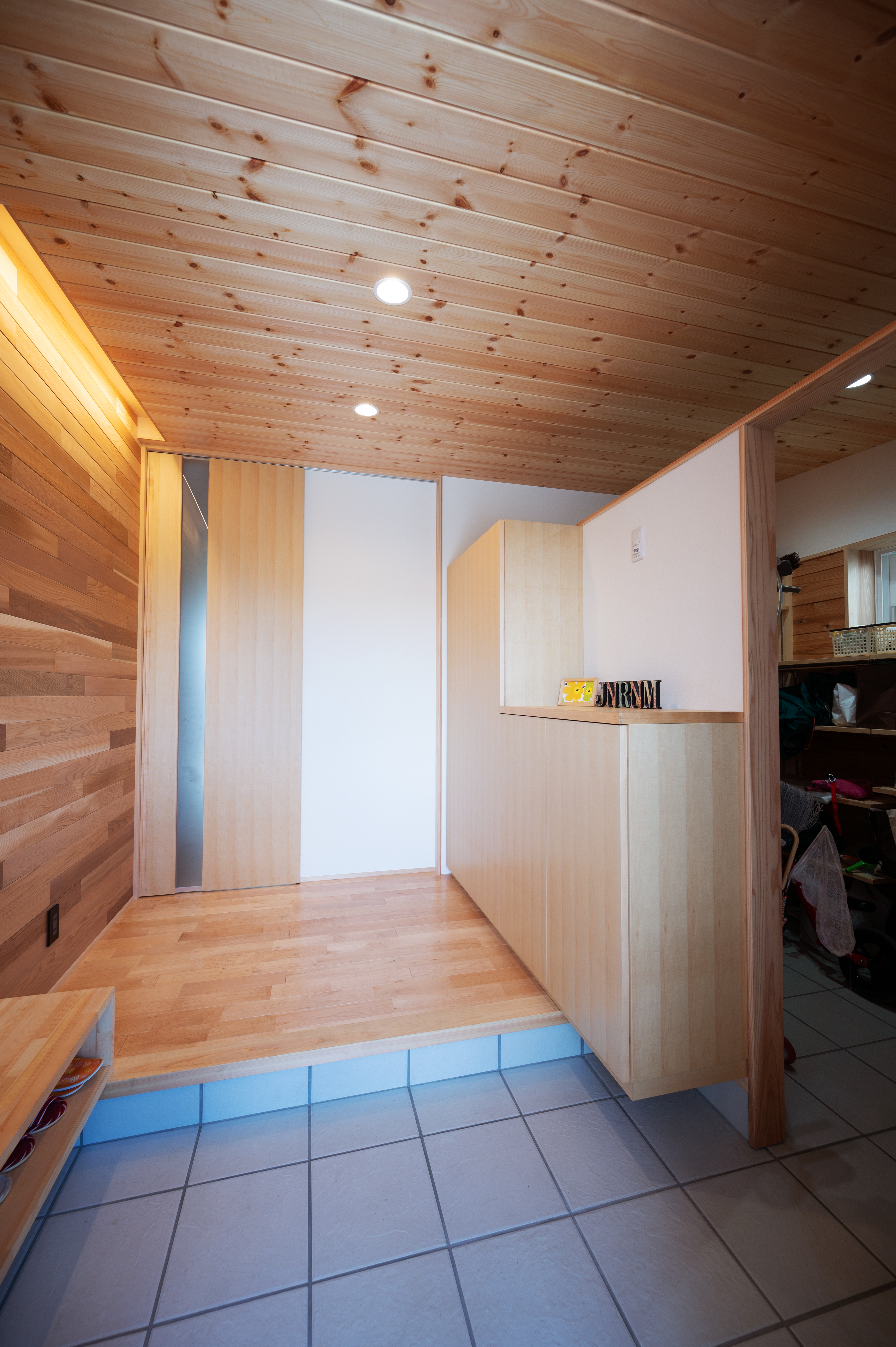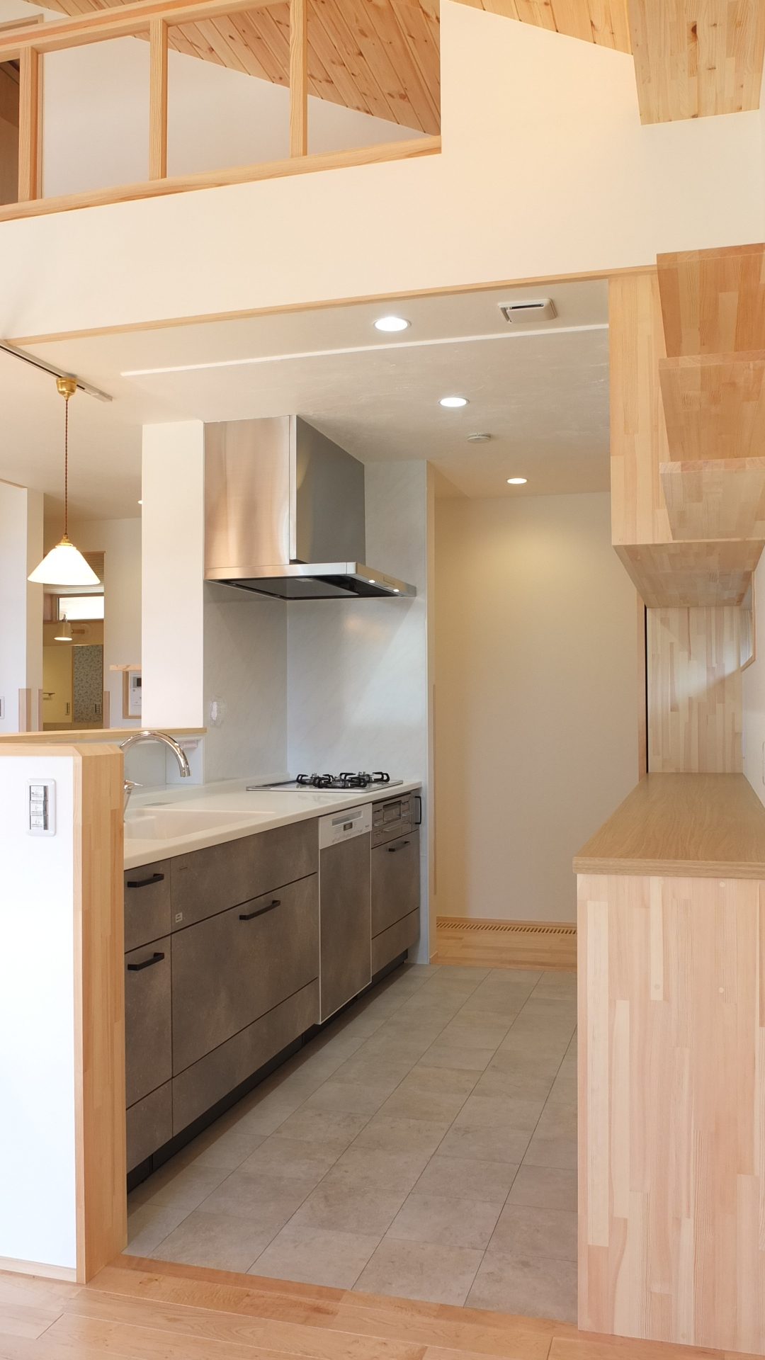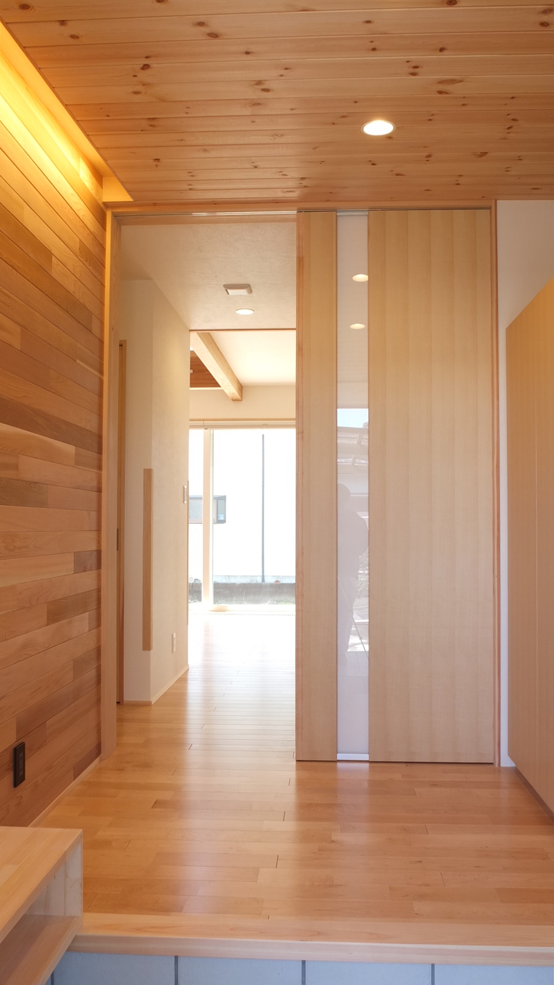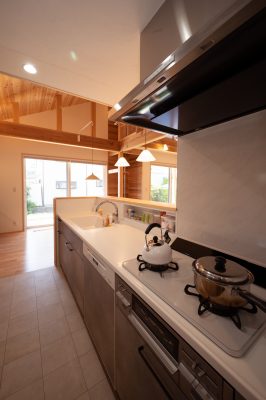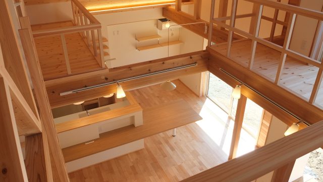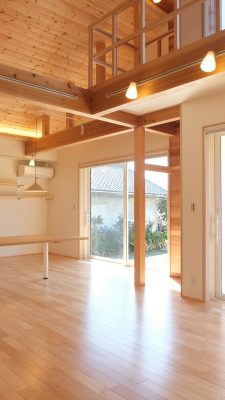 [換気]第1種機械換気(熱交換換気扇)/[屋根・外壁]屋根:平板瓦葺き 外壁:ガルバリウム鋼板張り/[開口部]樹脂サッシ/[内装]床:メープル材、パイン材 内壁:エコクロス貼、杉材 天井:エコクロス貼、パイン材/[UA値]0.35[ηA値]1.3[C値]0.6