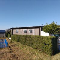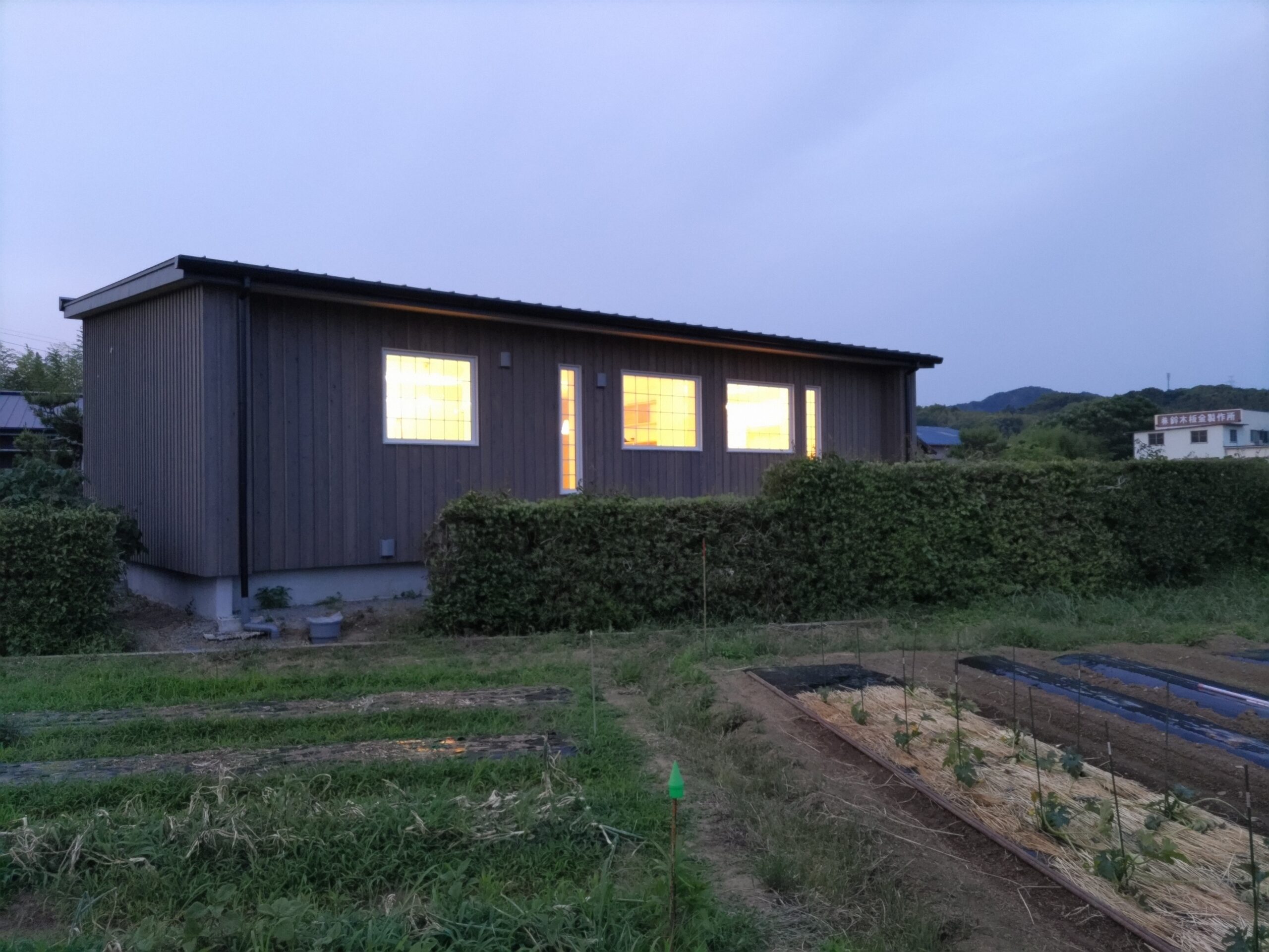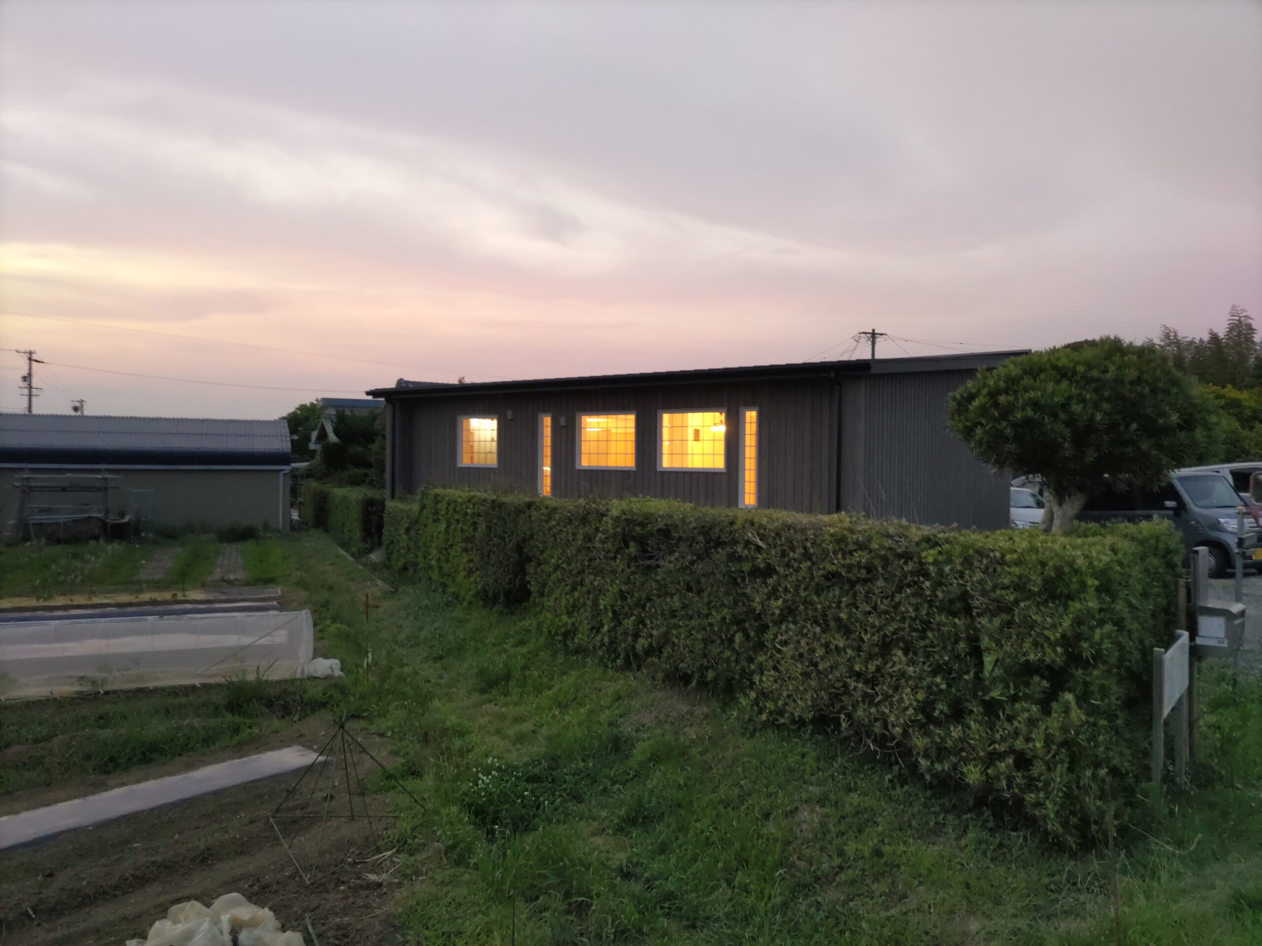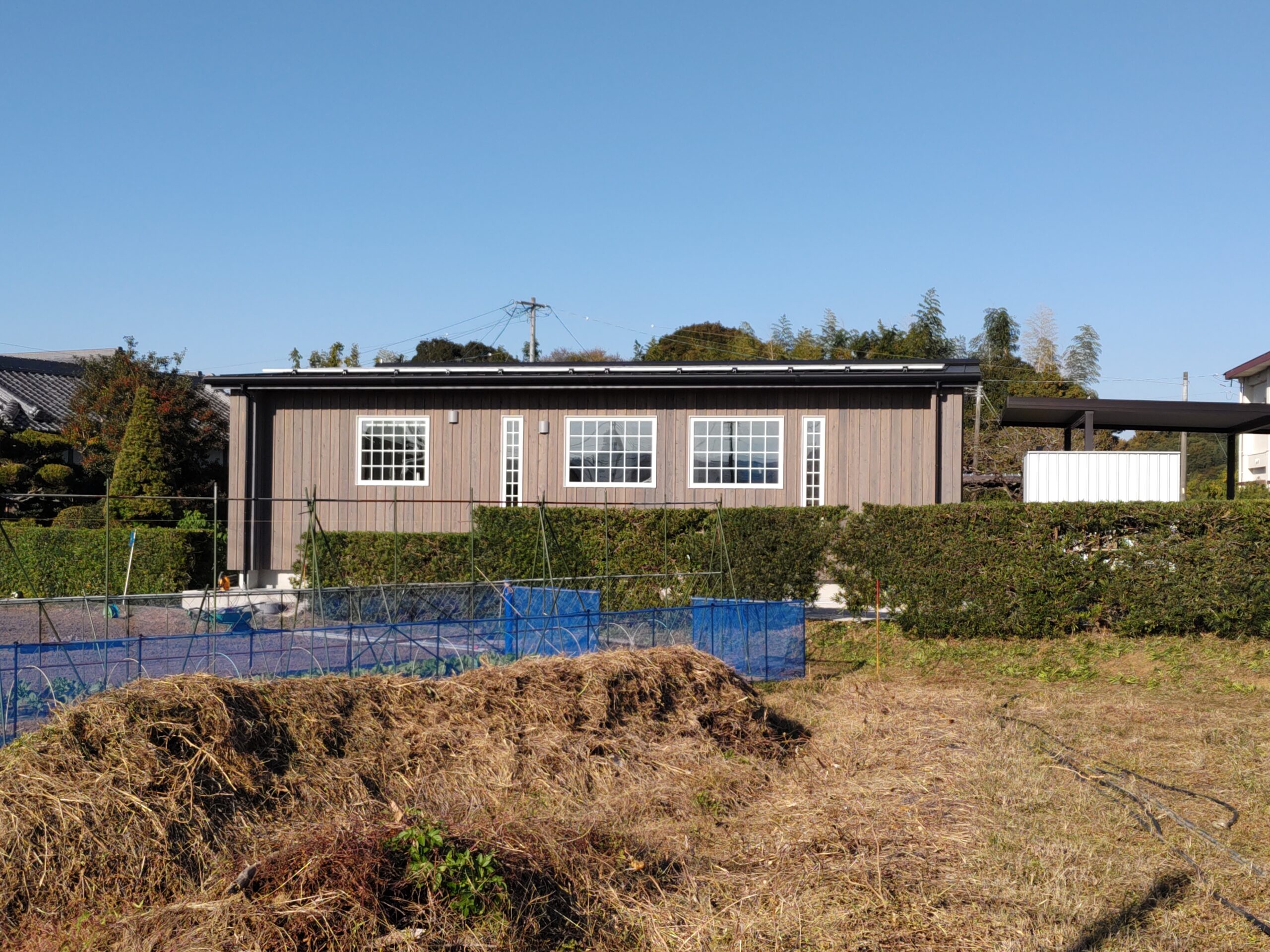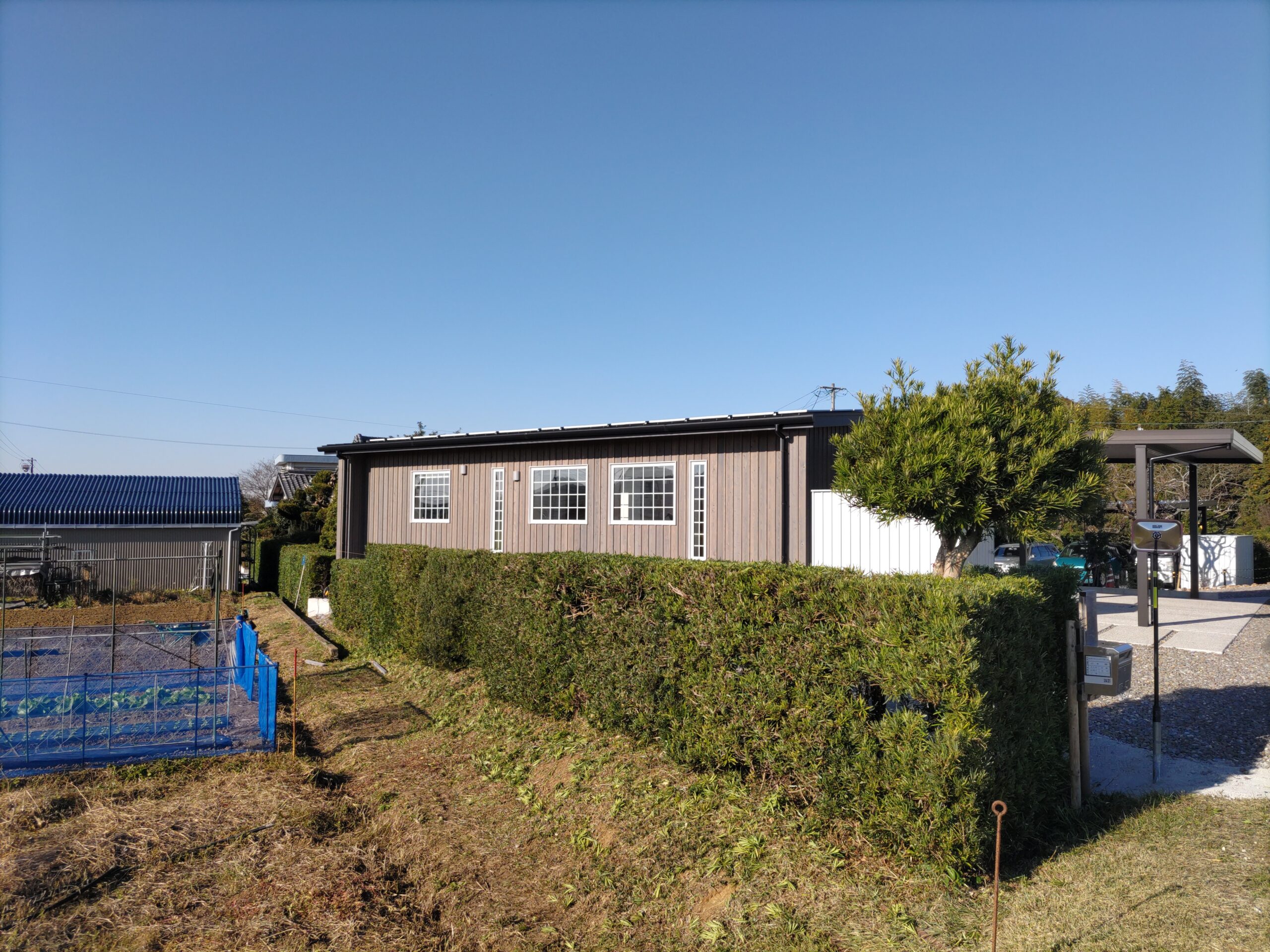 幸田町を南北に貫く国道を少し入ると長閑な田園地域になります。そんな景色の中に建つシンプルな外観の平屋建て住宅が二棟。y様はご実家である広大な敷地内に、ご両親と共に生活するべく、平屋建て住宅をご両親とご自身家族のために一棟ずつ同時に二棟建築する計画をされました。