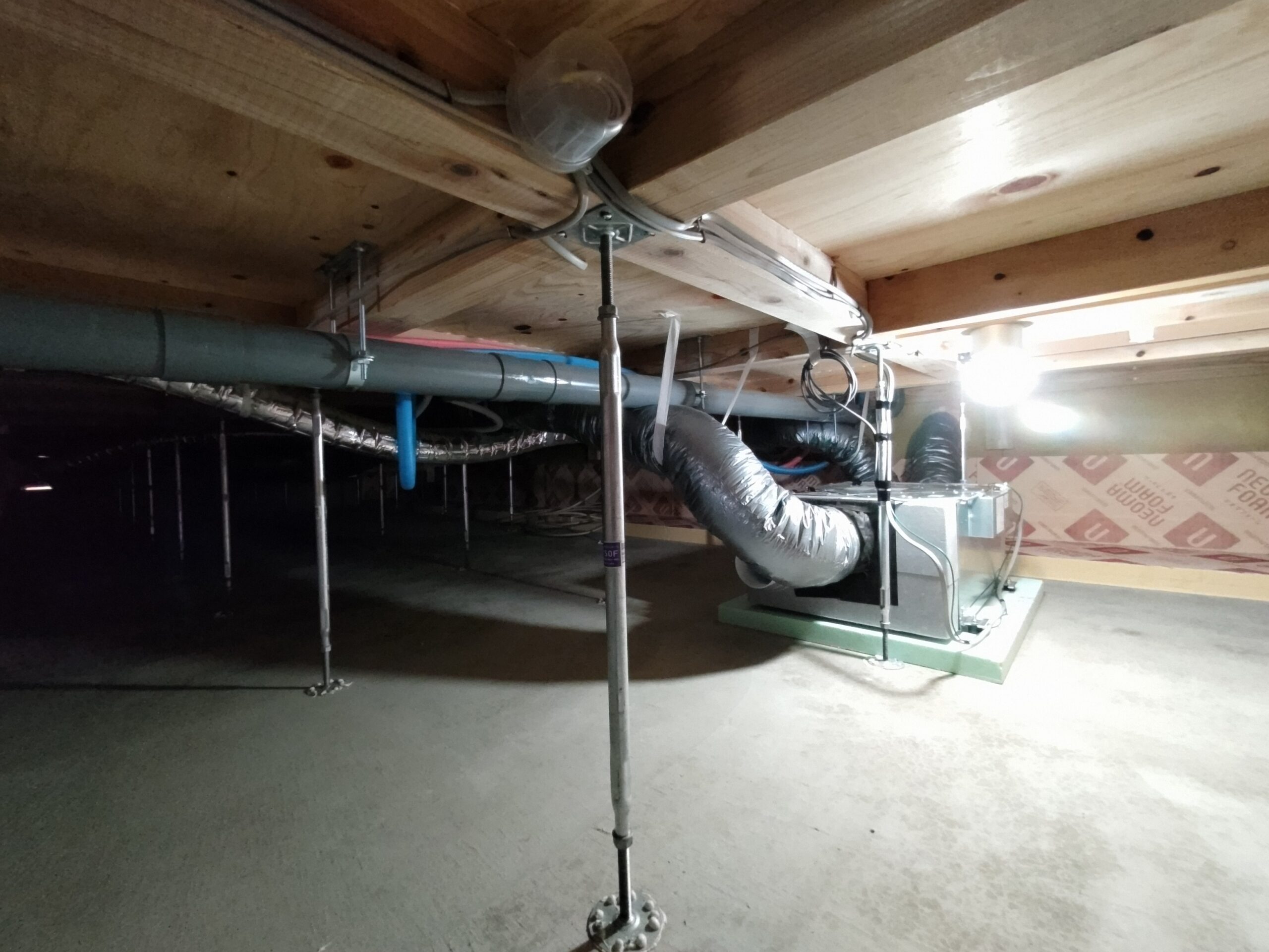遠距離をものともせず精力的に現場にやってきては工事の状況やシステムの運転をチェック。現場でお話をしていると分かりますが、決して理論先行でなく断熱や設備以外の内容、ディテールや材料に関する知識にも精通しておられます。(お打合せの中でも工務店を横目に神長先生と同等に渡り合えるy様もまたタダモノではありません。)