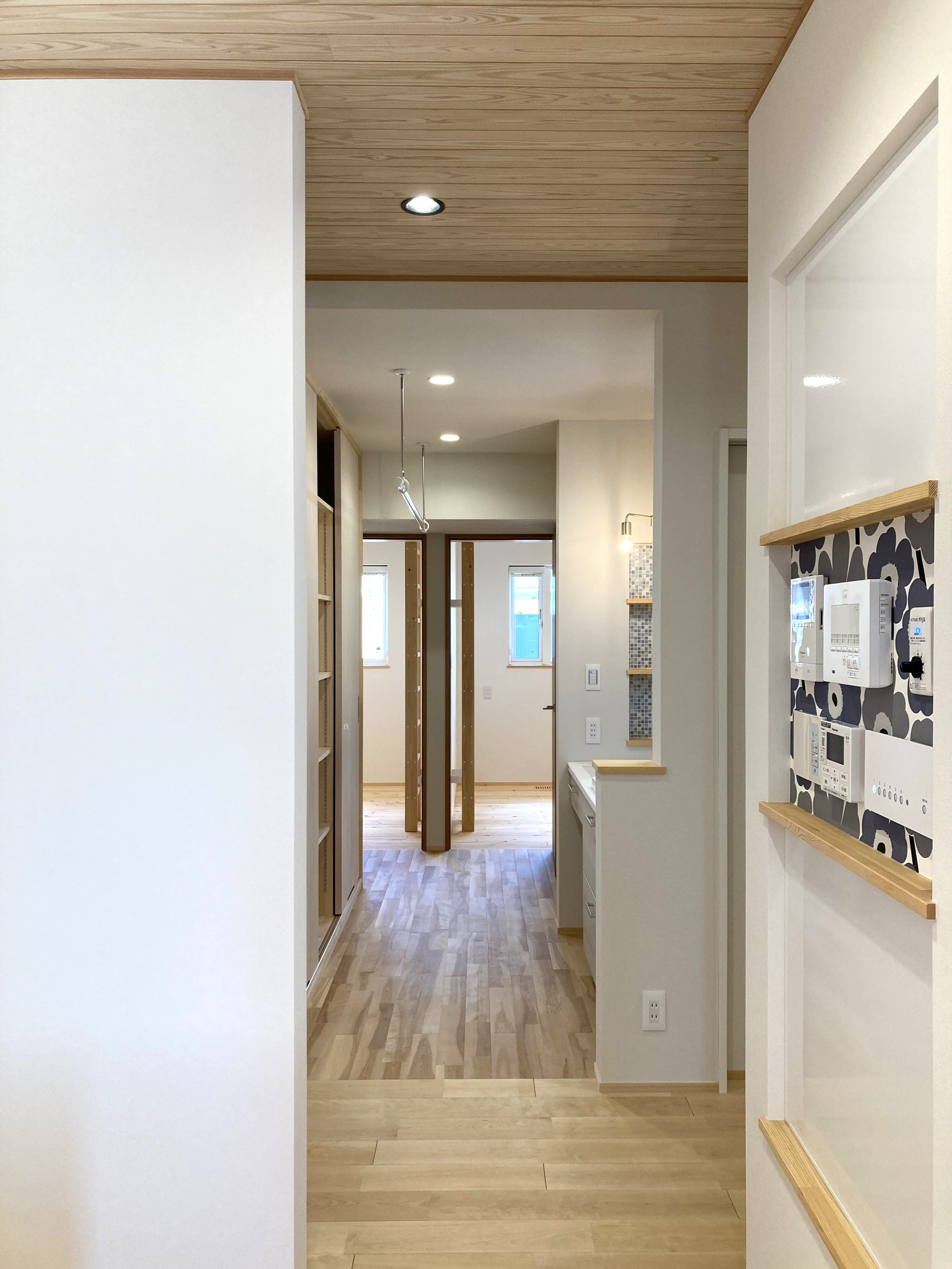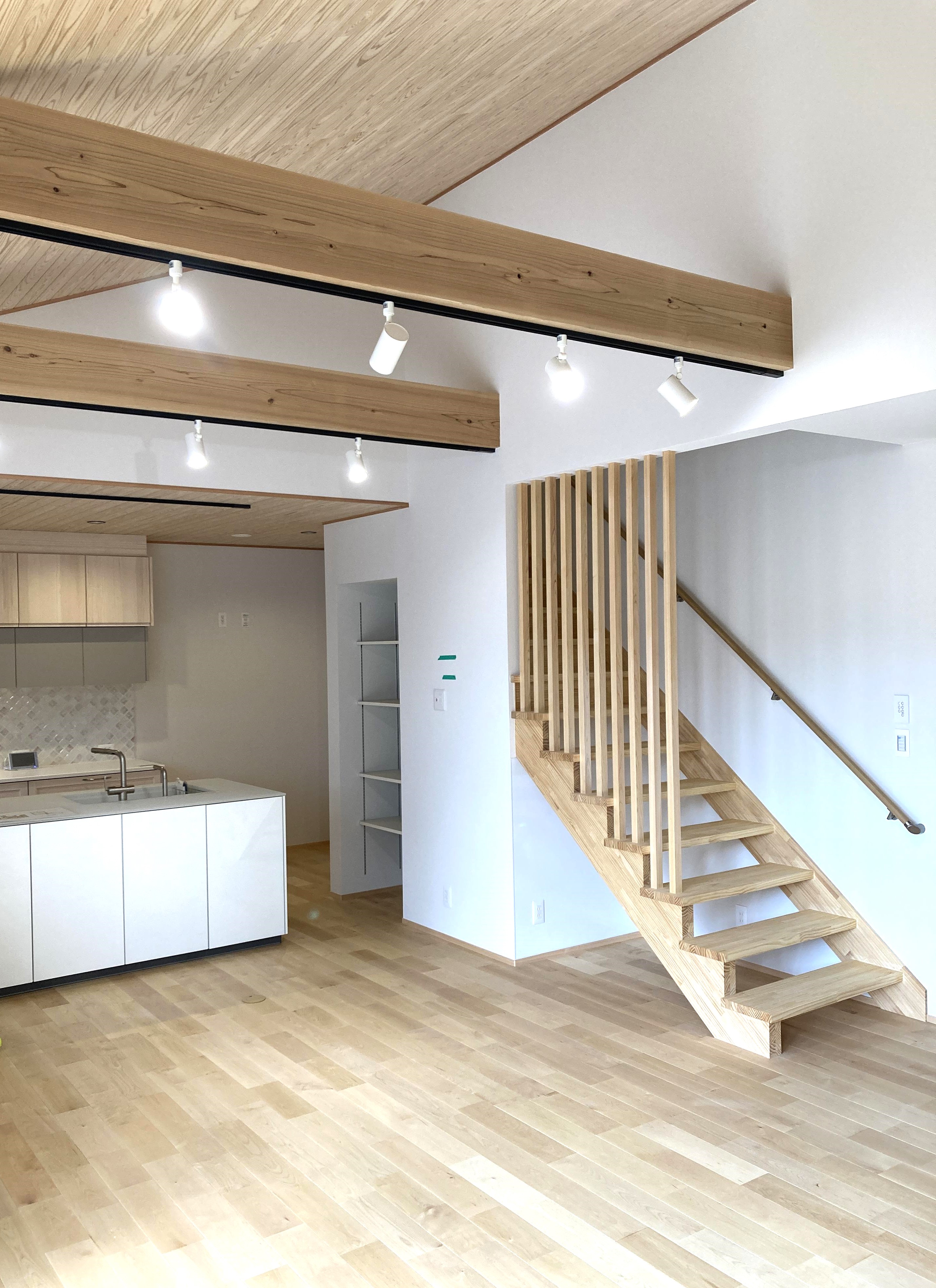 【延床面積】122.04㎡(36.91坪)/【工法】木造軸組工法/【断熱】基礎内:押出法ポリスチレンフォーム 外壁:高性能グラスウール+付加断熱高性能グラスウール 屋根:高性能グラスウール/【換気】第1種換気(熱交換換気扇)【屋根・外壁】屋根:平板瓦 外壁:ガルバリウム鋼板【開口部】樹脂サッシ【内装】床:カバ桜・桧材 壁:クロス・杉材・サワラ材 天井:クロス、杉材/【UA値】0.3【ηA値】1【C値】0.4