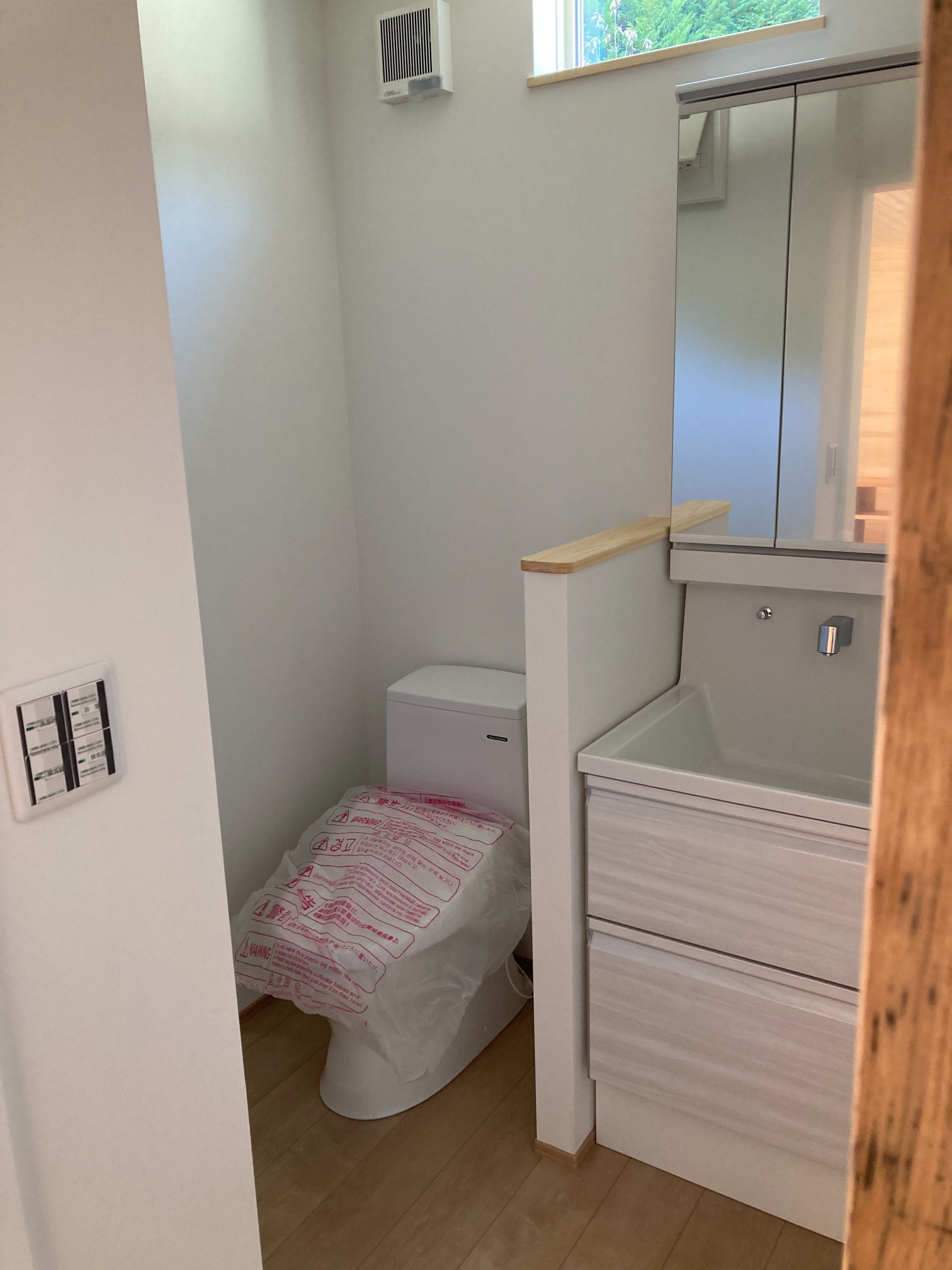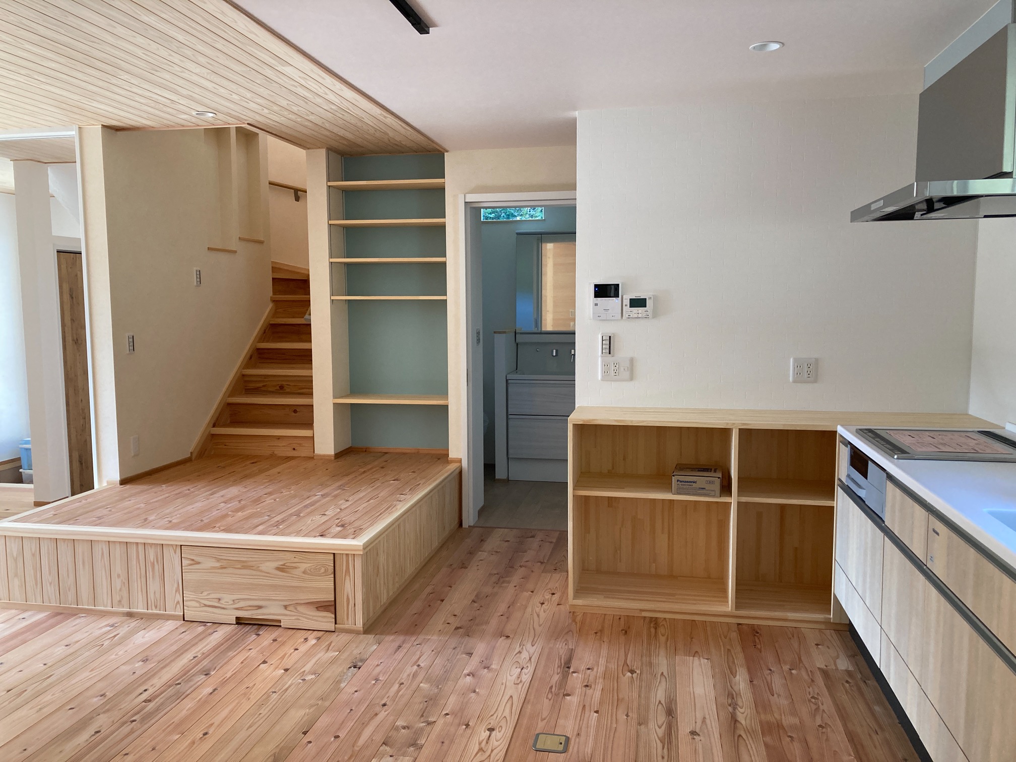 【延床面積】112.61㎡(34.06坪)/【工法】木造軸組工法/【断熱】床下:押出法ポリスチレンフォーム 外壁:高性能グラスウール 屋根・天井:高性能グラスウール/【換気】第1種換気/【屋根・外壁】屋根:ガルバリウム鋼鈑葺き 外壁:ガルバリウム鋼鈑【開口部】複合サッシ【内装】床:杉材 壁:漆喰、エコクロス 天井:エコクロス、杉材/【C値】1.0