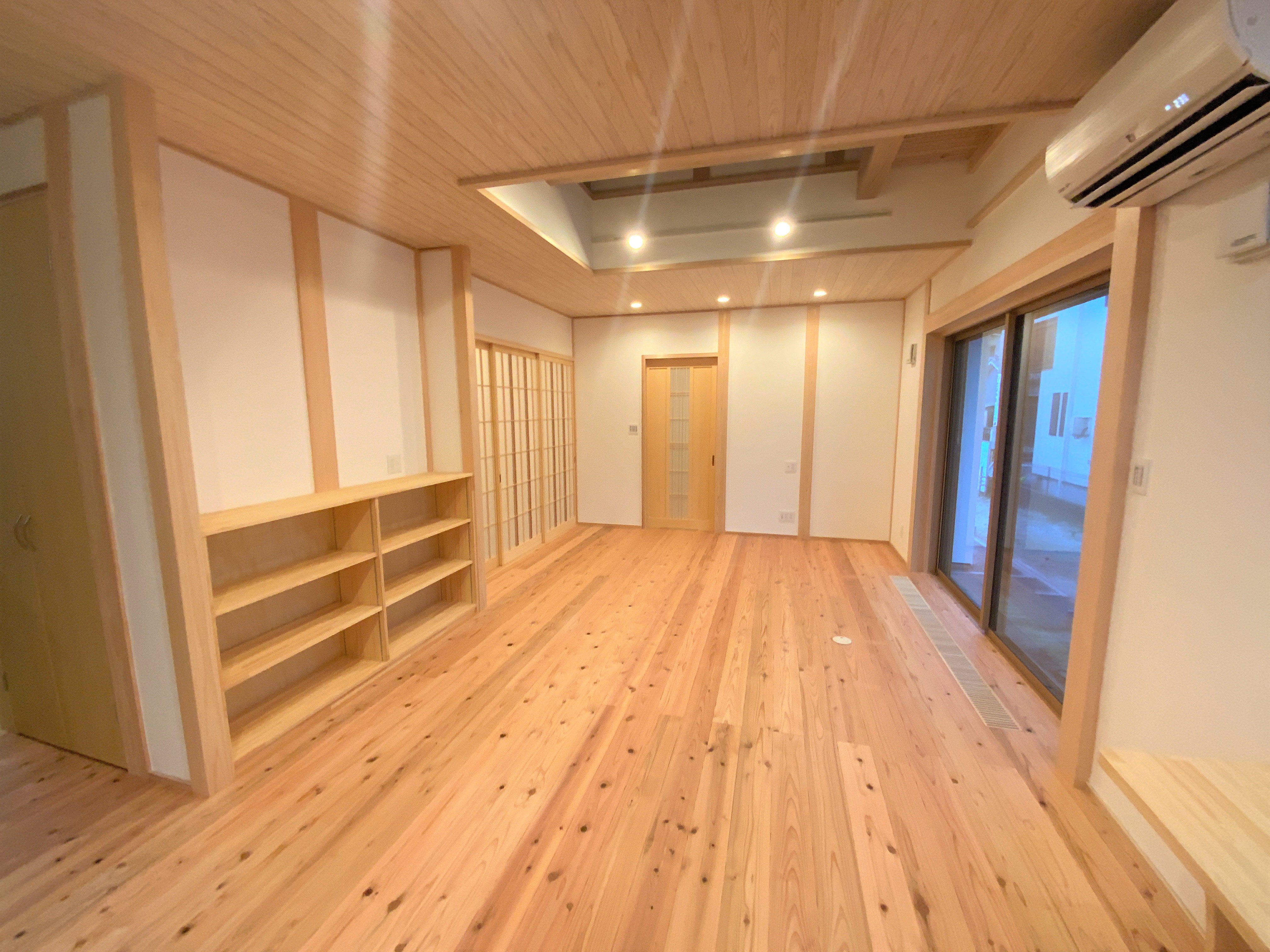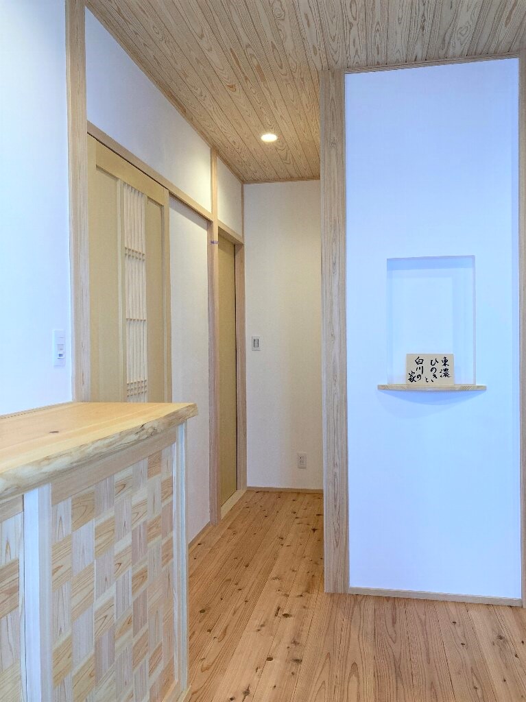 【延床面積】145.74㎡(44.07坪)/【工法】木造軸組工法/【断熱】基礎内:押出法ポリスチレンフォーム 外壁:高性能フェノールフォーム(真壁)・高性能グラスウール(大壁) +付加断熱高性能グラスウール 屋根:高性能グラスウール/【換気】第1種換気【屋根・外壁】屋根:和瓦葺き 外壁:漆喰【開口部】樹脂サッシ【内装】床:杉材・竹材 壁:漆喰 天井:杉材【UA値】0.39【ηA値】1.1【C値】0.7