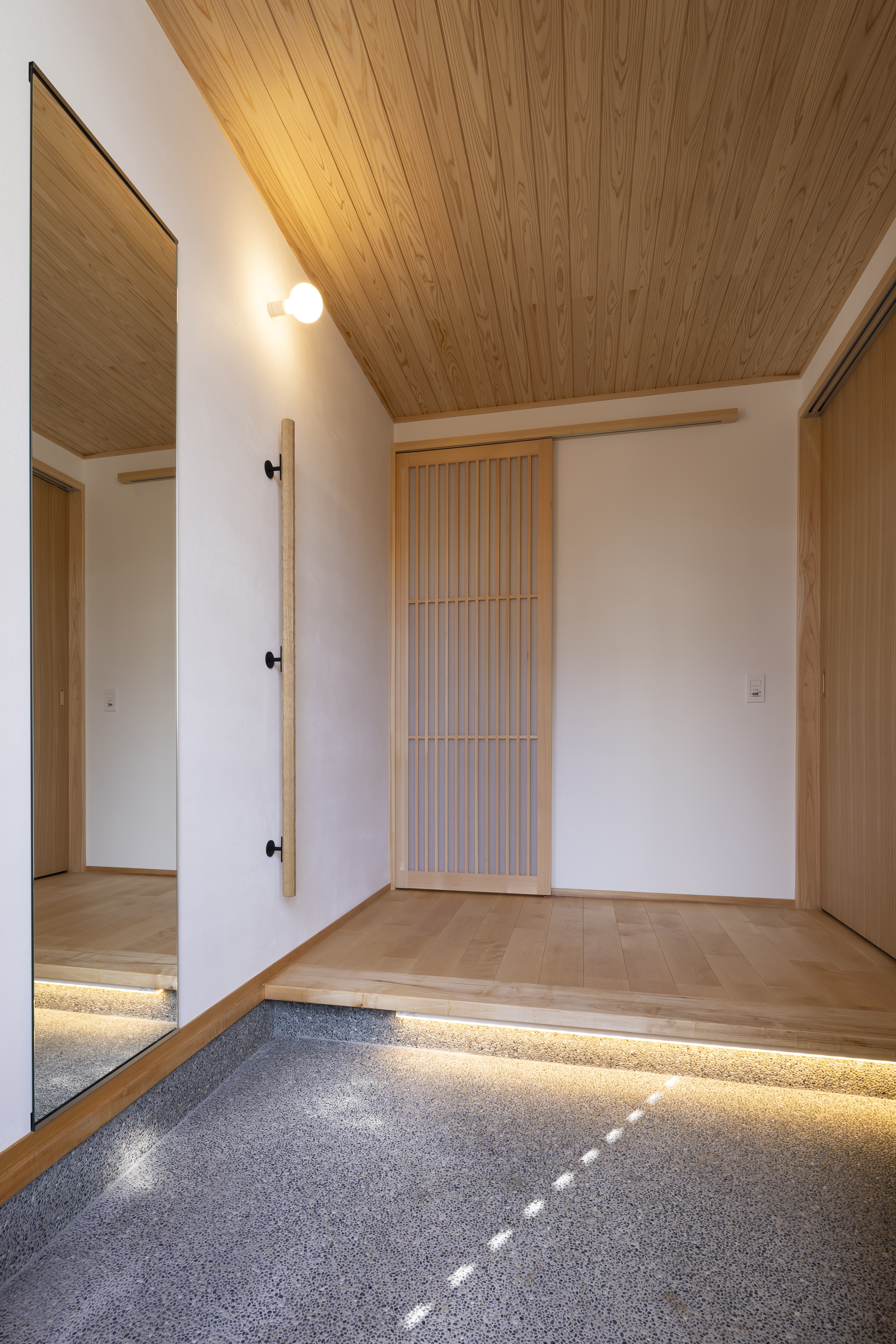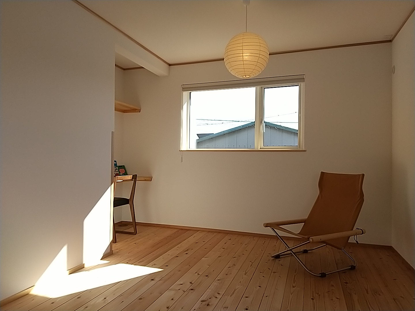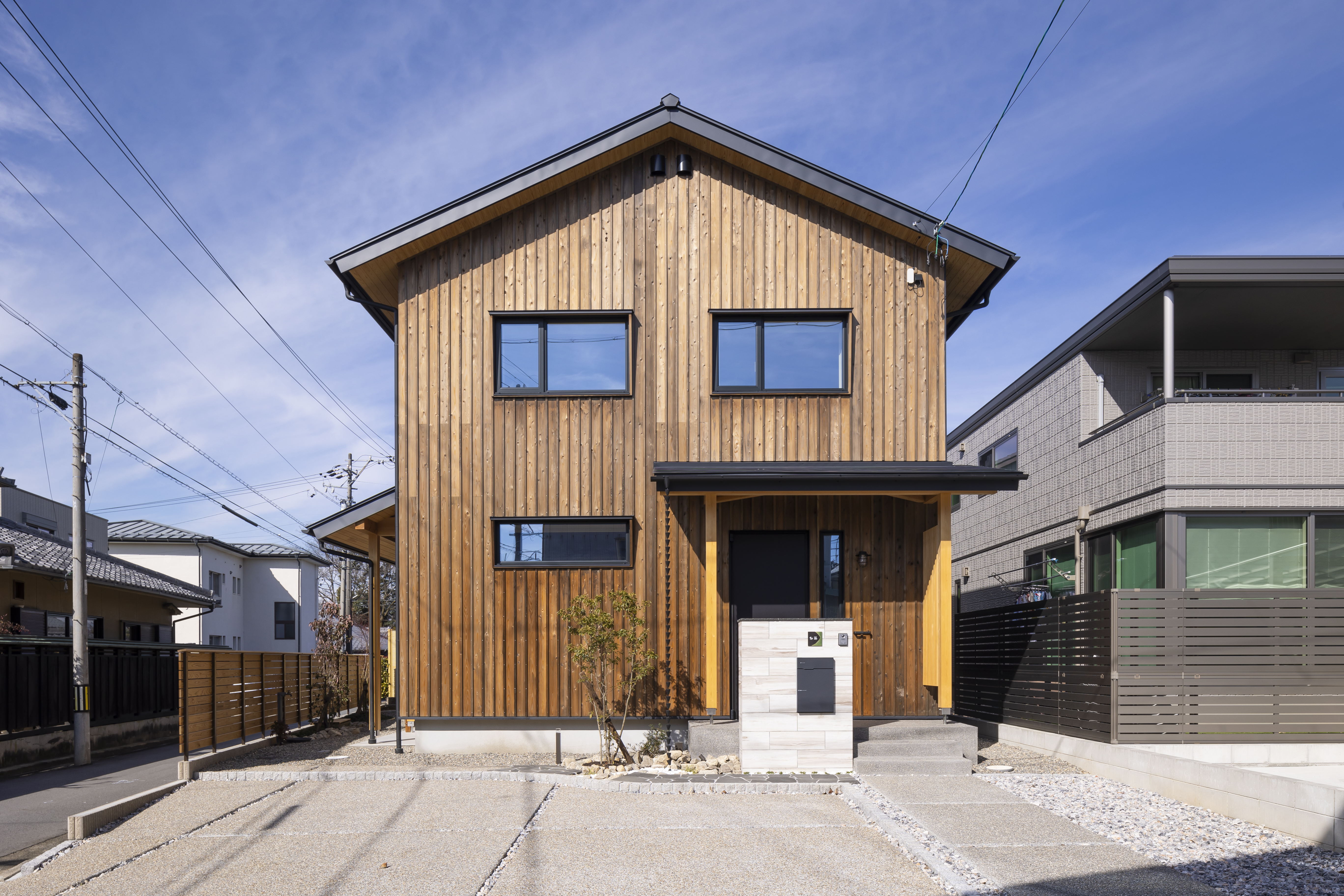 - 【延床面積】113.25㎡(34.25坪)/【工法】木造軸組工法/【断熱】基礎内:押出法ポリスチレンフォーム 外壁:高性能グラスウール+付加断熱高性能グラスウール 屋根:高性能グラスウール/【換気】第1種換気(熱交換換気扇)【屋根・外壁】屋根:ガルバリウム鋼板 外壁:ガルバリウム鋼板、杉羽目板(ウッドロングエコ塗装)【開口部】樹脂サッシ(トリプルガラス)【内装】床:カバ、杉材 壁:クロス、珪藻土 天井:和紙・ビニールクロス【UA値】0.28【ηA値】0.6【C値】0.4