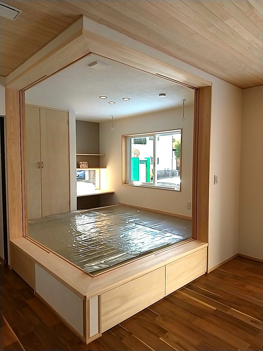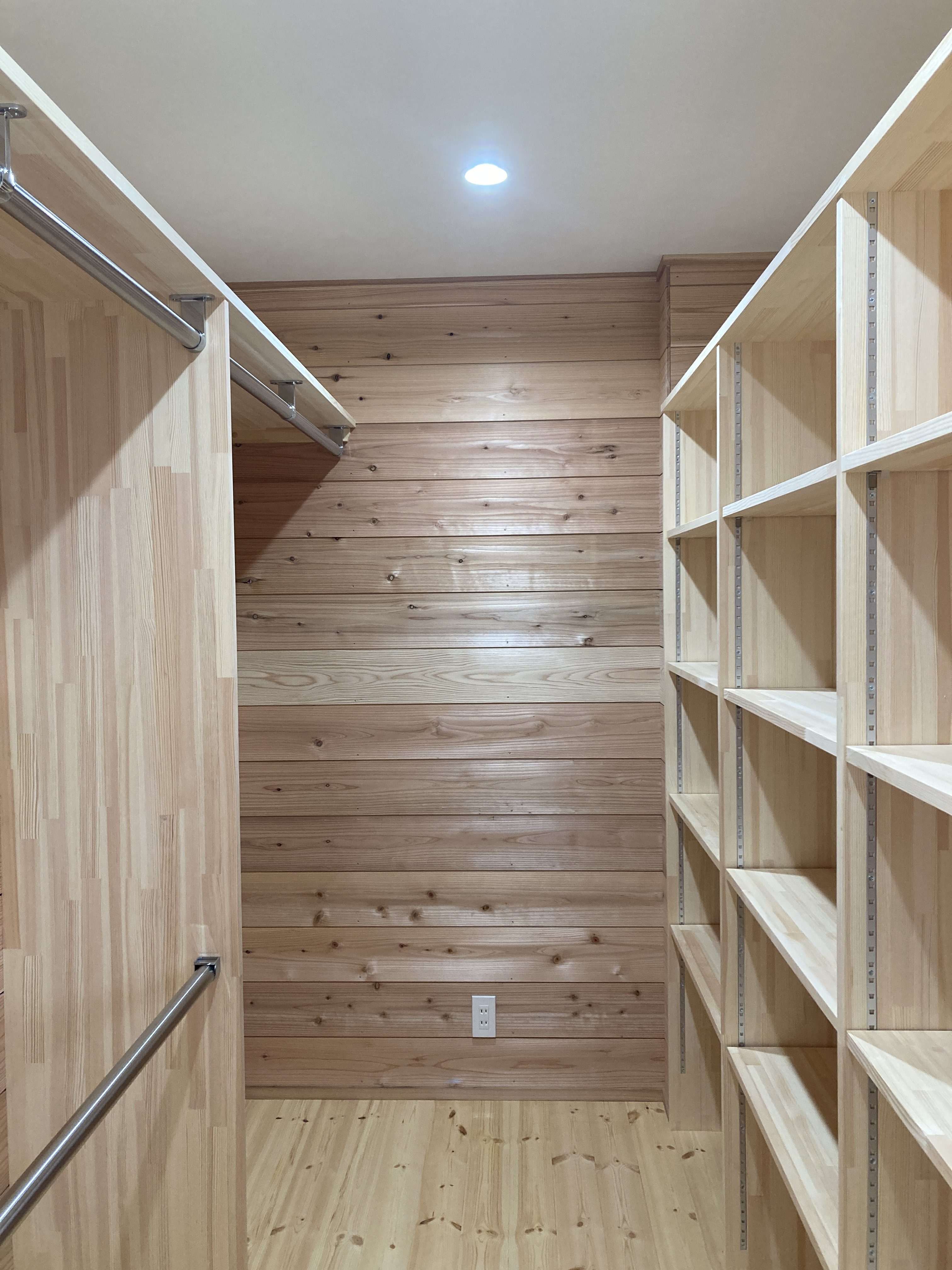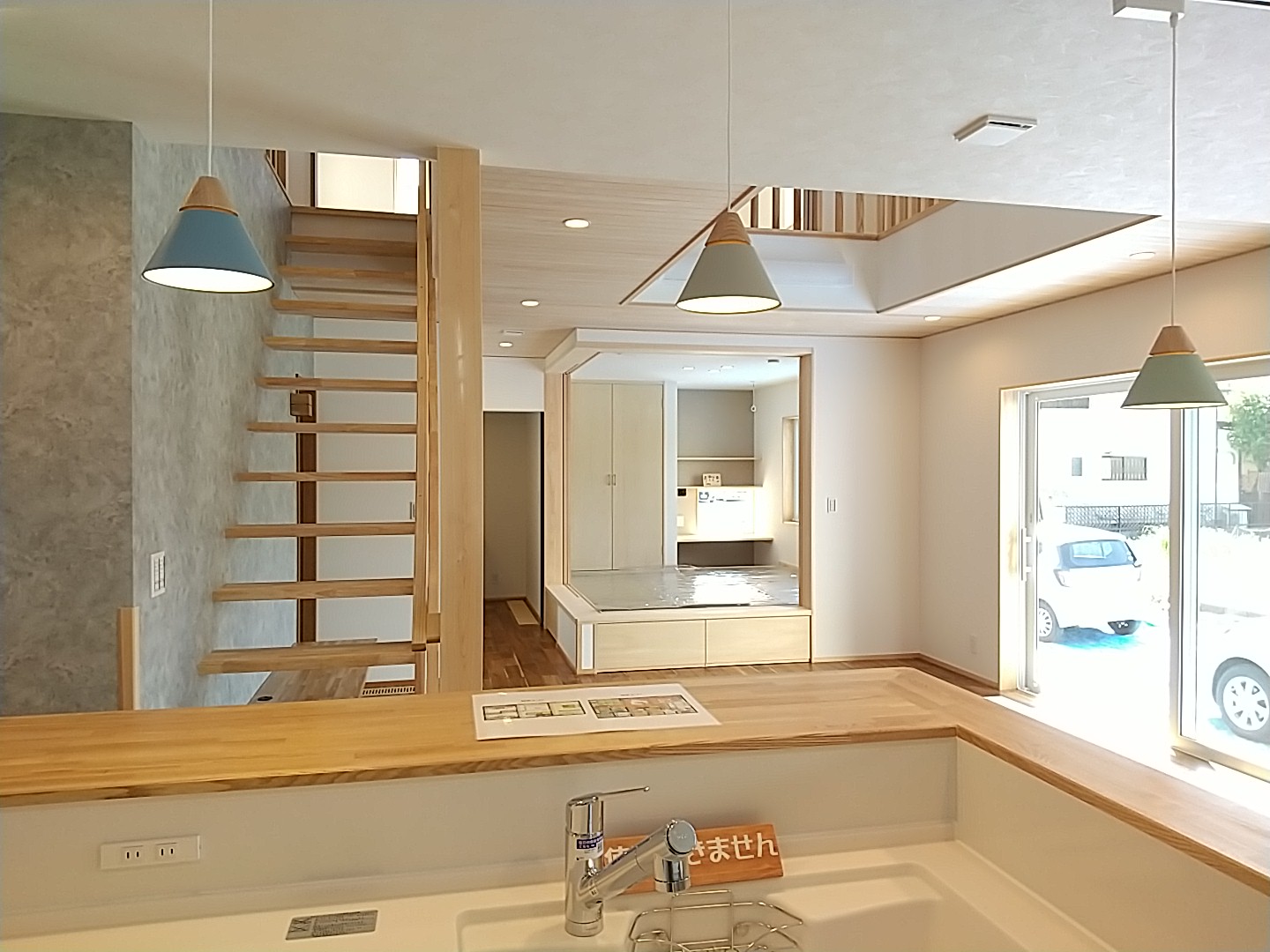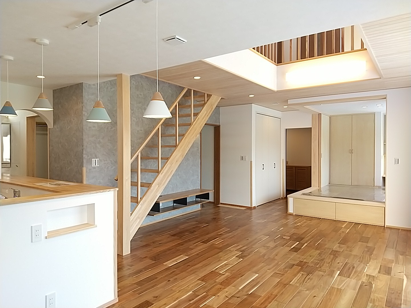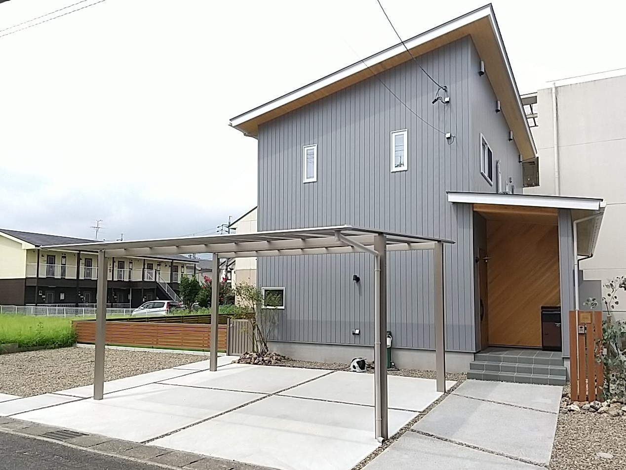 【延床面積】134.78㎡(40.77坪)/【工法】木造軸組工法/【断熱】基礎内:押出法ポリスチレンフォーム 外壁:高性能グラスウール 屋根:高性能グラスウール/【換気】第1種換気(熱交換換気扇)【屋根・外壁】屋根:ガルバリウム鋼板 外壁:ガルバリウム鋼鈑、一部杉板【開口部】樹脂サッシ【内装】床:アカシア材、パイン材 壁:クロス 天井:クロス、桧材/【UA値】0.42【ηA値】1.4【C値】0.4