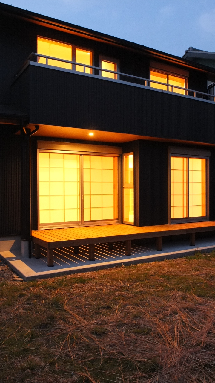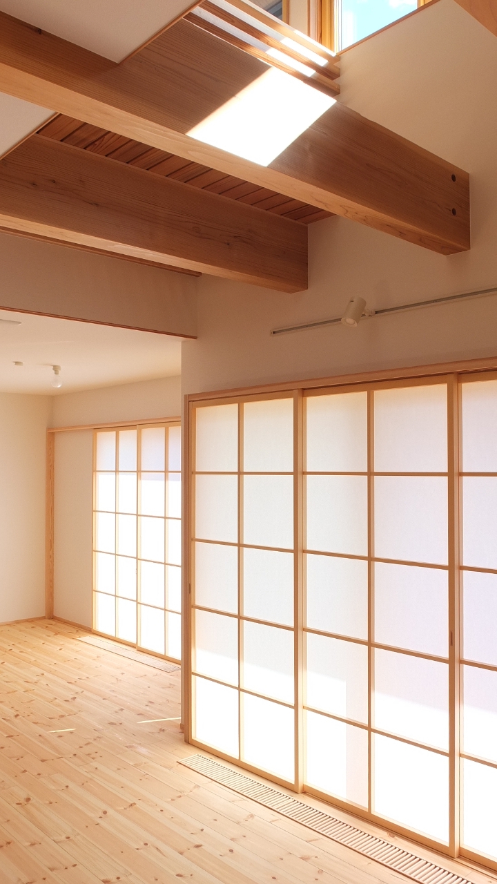 [換気]第1種機械換気/[屋根・外壁]屋根:ガルバリウム鋼板葺き 外壁:ガルバリウム鋼板張り/[開口部]アルミ樹脂複合サッシ/[内装]床:パイン材 内壁:エコクロス 天井:杉材、エコクロス/[UA値]0.69[ηA値]2.2[C値]1.1