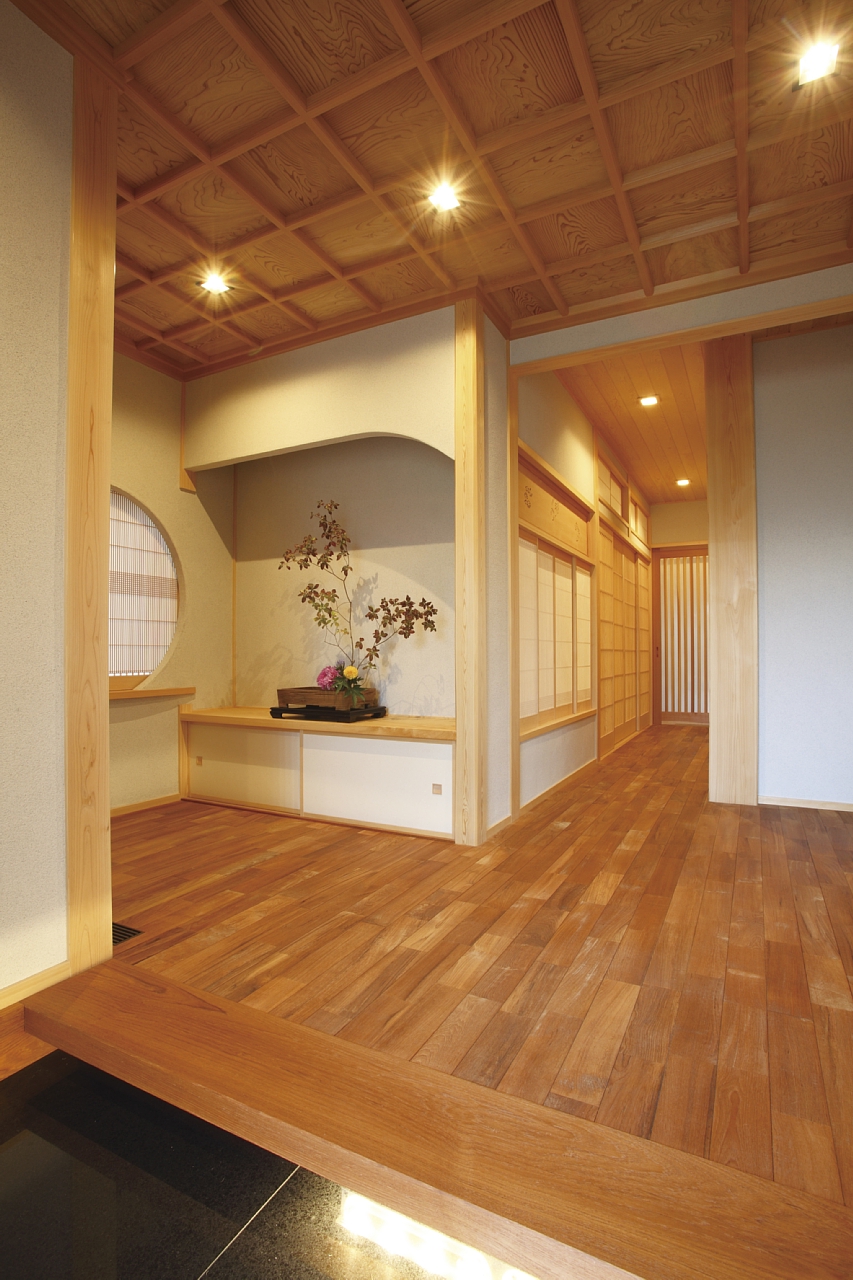 [換気]第1種機械換気/[屋根・外壁]屋根:日本瓦葺き 外壁:吹付仕上/[内装]床:チーク材 内壁:備長炭入珪藻土 天井:備長炭入珪藻土/[Q値]-[C値]