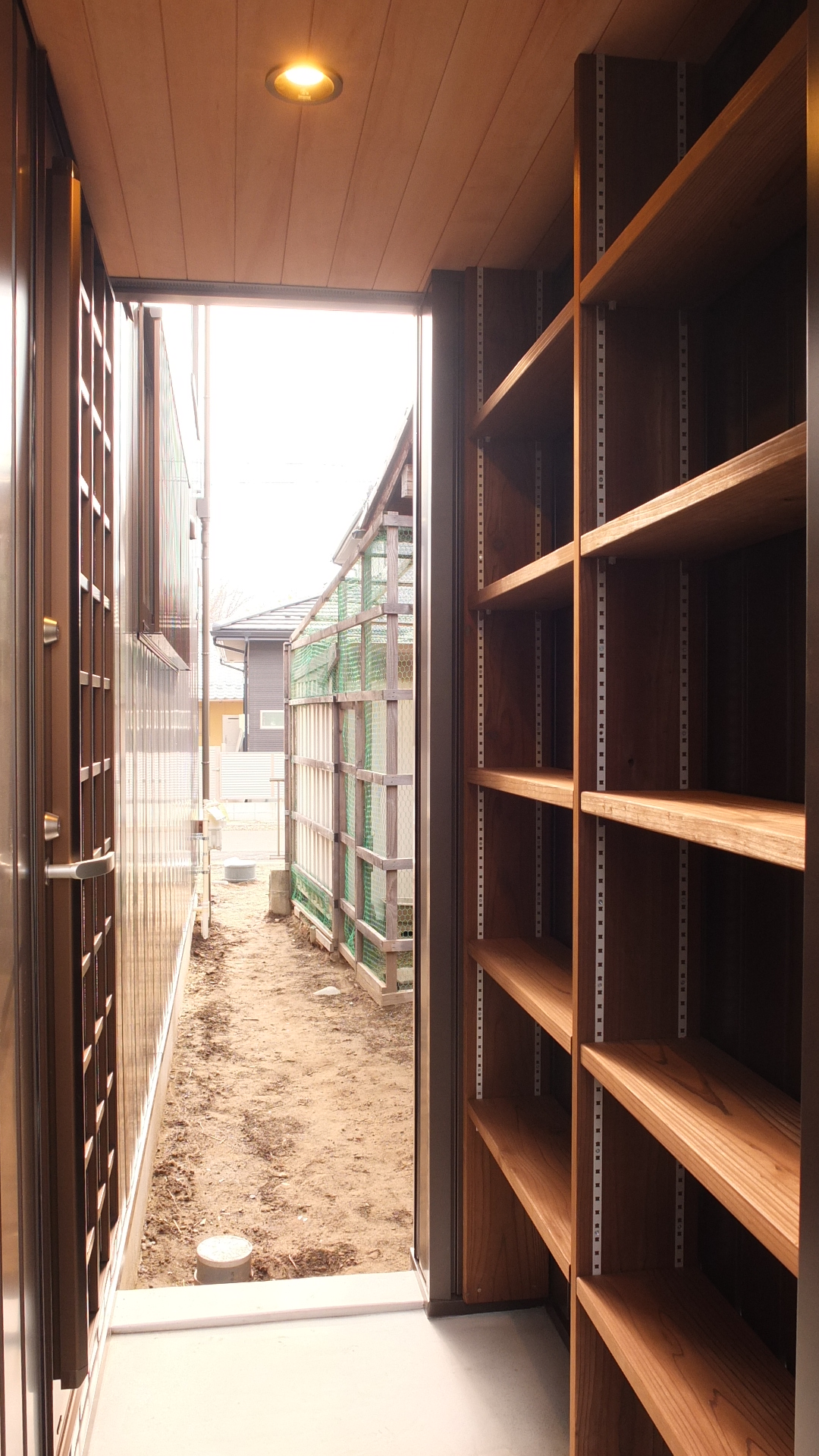 [換気]第1種機械換気(局所換気)/[屋根・外壁]屋根:ガルバリウム鋼板葺き 外壁:ガルバリウム鋼板張り/[開口部]アルミ樹脂複合サッシ/[内装]床:パイン材、ラジアータパイン材 内壁:エコクロス 天井:エコクロス、杉板張/[UA値]0.50[ηA値]1.5[C値]0.9
