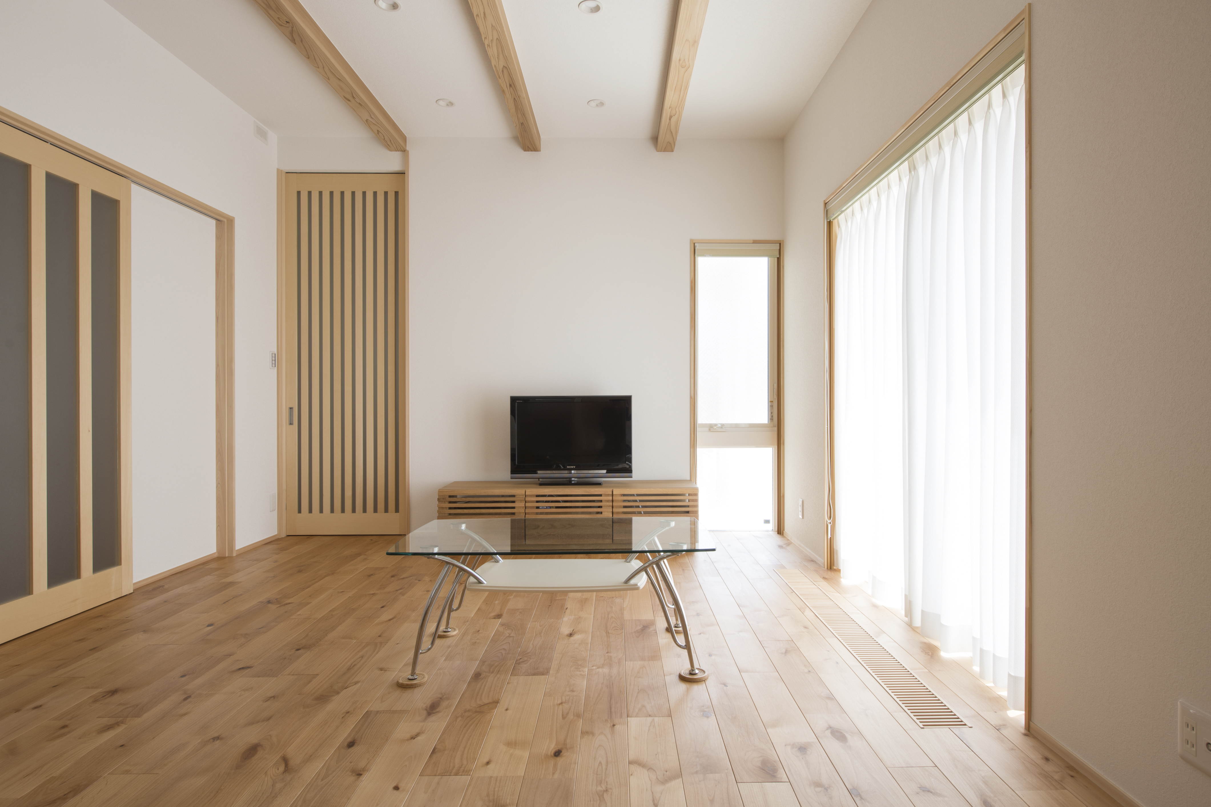[換気]第1種機械換気/[屋根・外壁]屋根:平板瓦葺き 外壁:ガルバリウム鋼板一部タイル貼り/[開口部]アルミ樹脂複合サッシ/[内装]床:アルダー材 内壁:エコクロス、漆喰塗 天井:エコクロス/[UA値]0.45[ηA値]1.3[C値]0.5