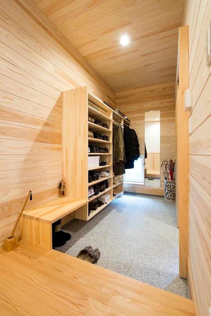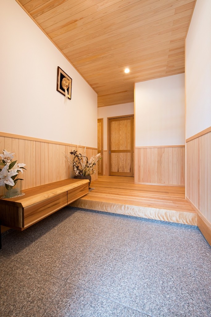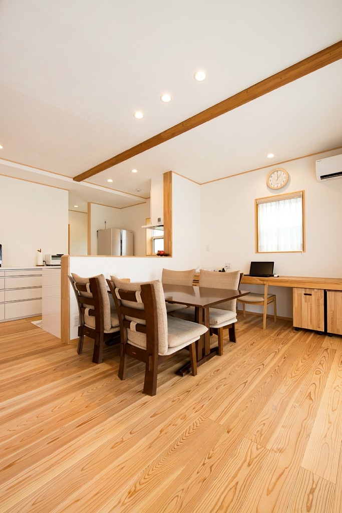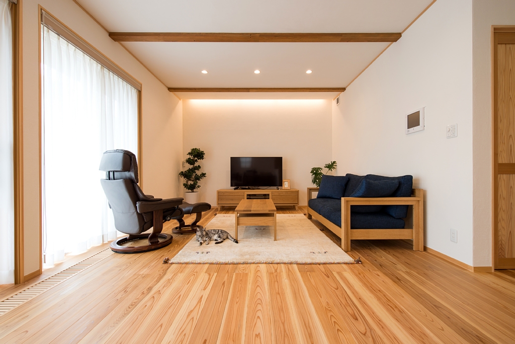 [換気]熱交換換気扇/[屋根・外壁]屋根:平板瓦 外壁:窯業系サイディング+グラスト吹付/[内装]床:杉材 内壁:珪藻土塗 天井:杉羽目板/[UA値]0.37[ηA値]1.5[C値]0.6