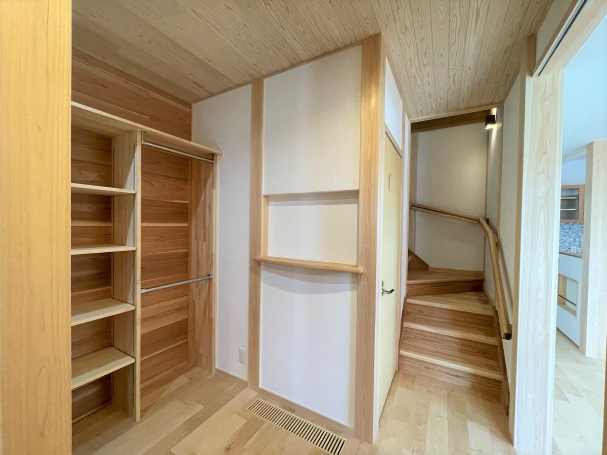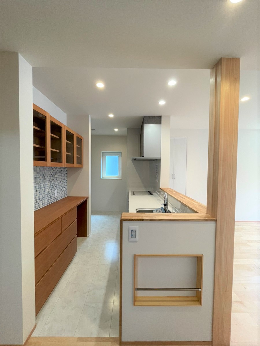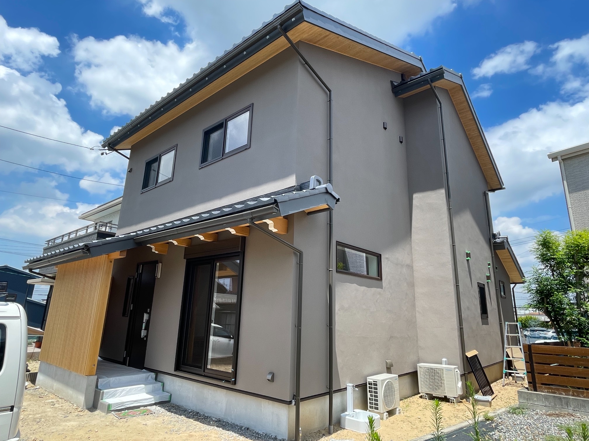 【延床面積】137.45㎡(41.58坪)/【工法】木造軸組工法/【断熱】基礎内:立上・基礎底部全面敷設:押出法発砲ポリスチレンフォーム+遮熱塗料 外壁:高性能グラスウール+付加断熱高性能グラスウール 屋根:高性能グラスウール/【換気】第1種換気/【屋根・外壁】屋根:日本瓦 外壁:弾性リシン吹付仕上【開口部】樹脂サッシ【内装】床:メープル材・杉材 壁:漆喰・クロス 天井:クロス・杉材/【UA値】0.3【ηA値】0.8【C値】0.4 長期優良住宅【耐震等級】3/【耐風等級】2