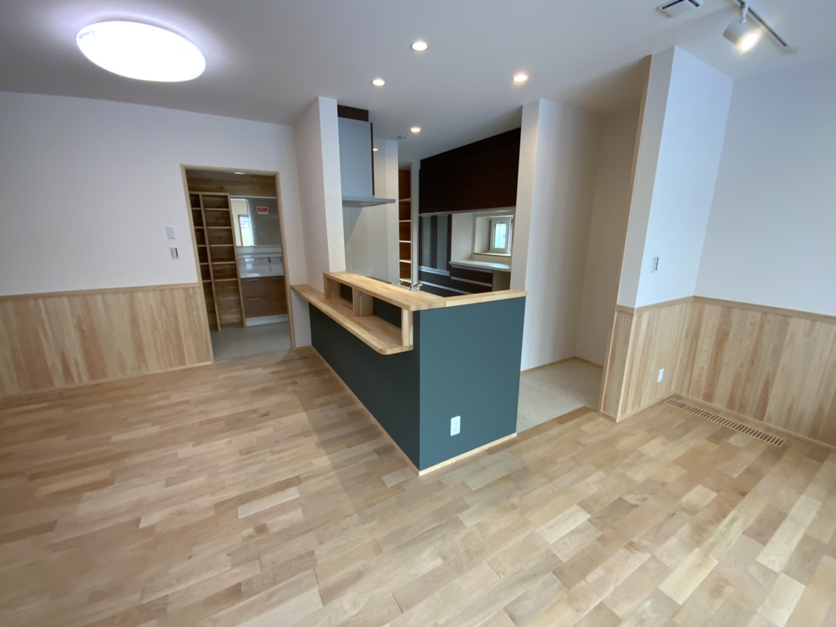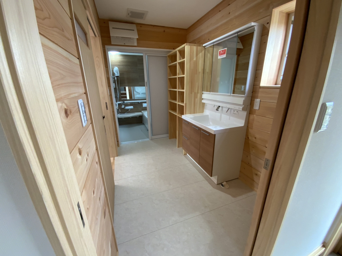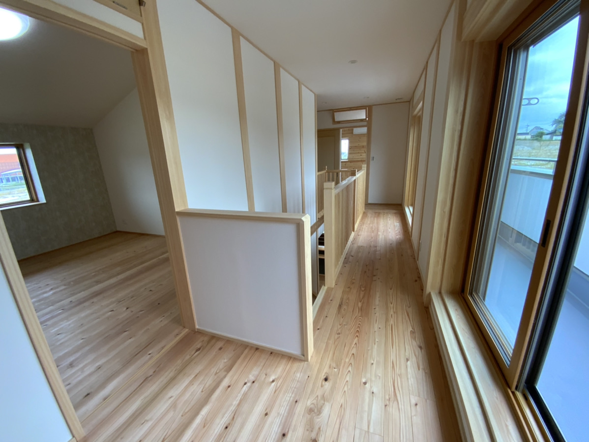 延床面積]159.14㎡(約48.13坪)/[工法]木造軸組工法/[断熱]基礎:押出法発泡ポリスチレンフォーム 基礎外:ビーズ法ポリスチレンフォーム 外壁:高性能グラスウール+付加断熱高性能グラスウール(内部真壁:高性能フェノールフォーム) 屋根:高性能グラスウール 外周天井付加断熱:押出法ポリスチレンフォーム