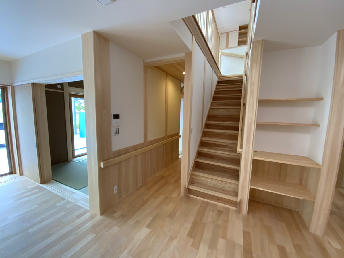 [換気]第1種機械換気(熱交換換気扇)/[屋根・外壁]屋根:日本瓦葺き 外壁:漆喰、一部桧材/[開口部]樹脂サッシ/[内装]床:メープル材、杉材 内壁:珪藻土、エコクロス 天井:エコクロス、桧羽目板/[UA値]0.28[ηA値]1.6[C値]0.4 長期優良住宅 [耐震等級]3/[耐風等級]2