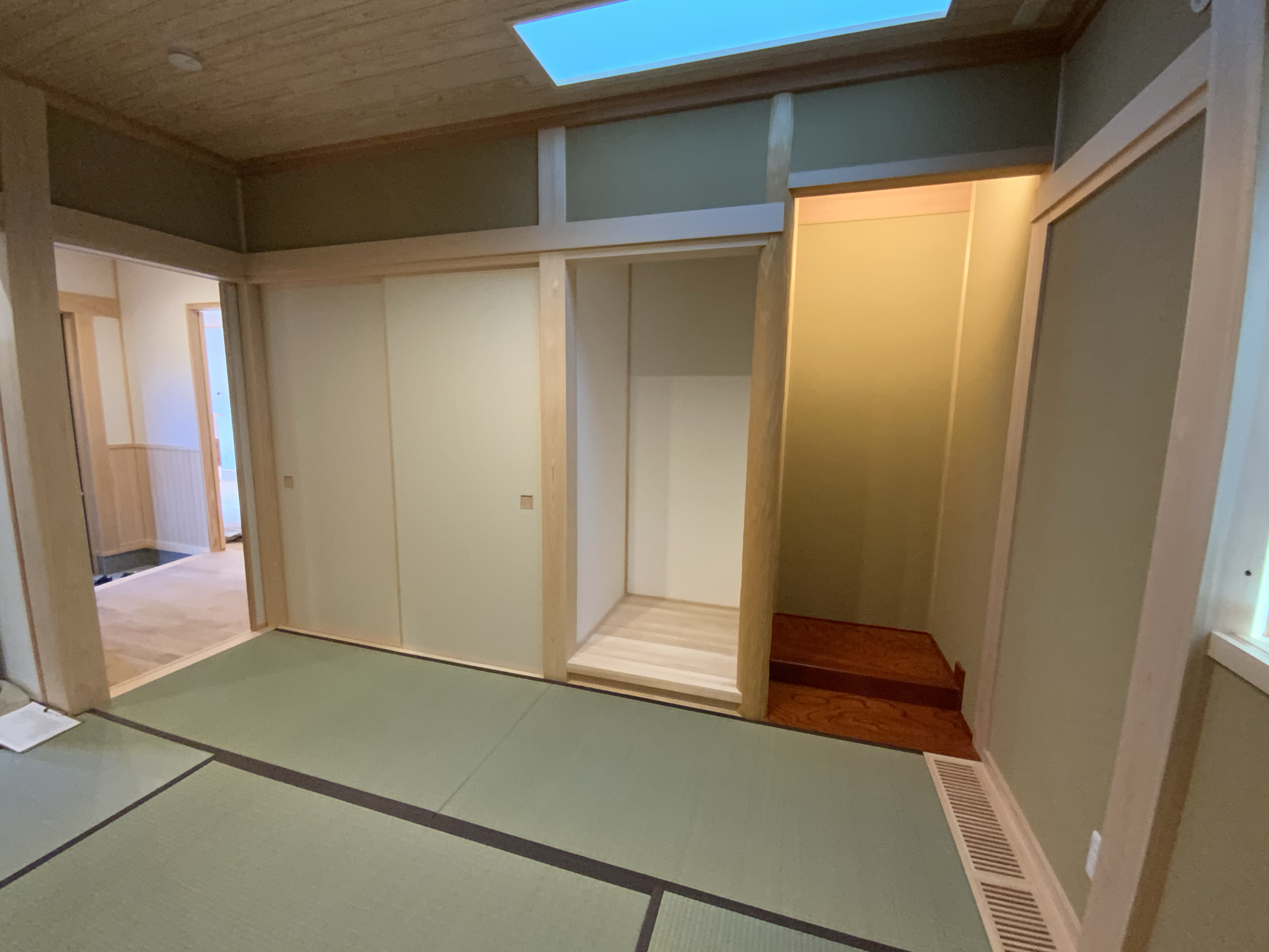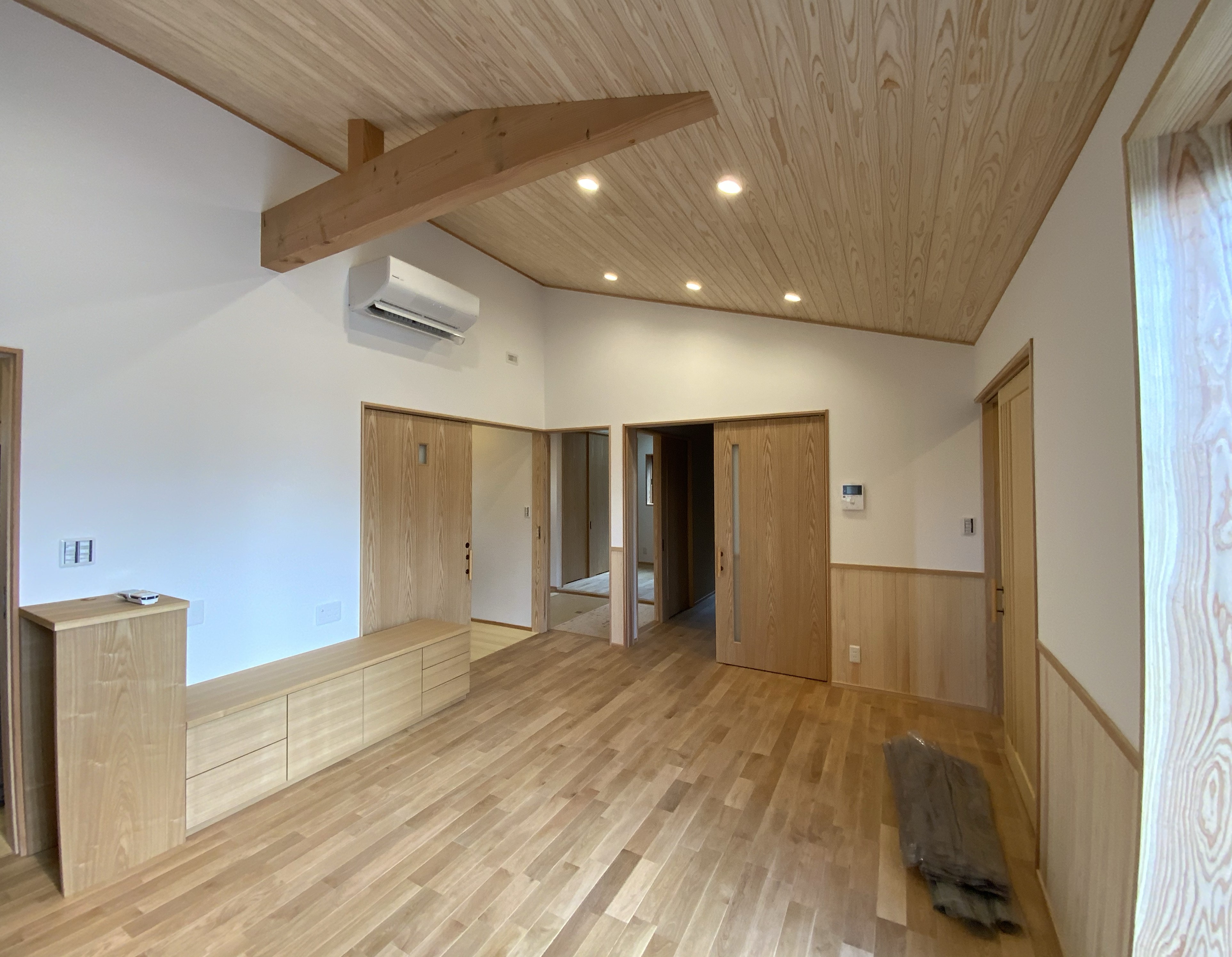 [換気]第1種機械換気(熱交換換気扇)/[屋根・外壁]屋根:平板瓦葺き 外壁:サイディング・ガルバリウム鋼鈑/[開口部]複合サッシ/[内装]床:楢材、杉材 内壁:珪藻土、エコクロス 天井:エコクロス、杉羽目板/[UA値]0.34[ηA値]1.2[C値]0.6 長期優良住宅 [耐震等級]3/[耐風等級]2