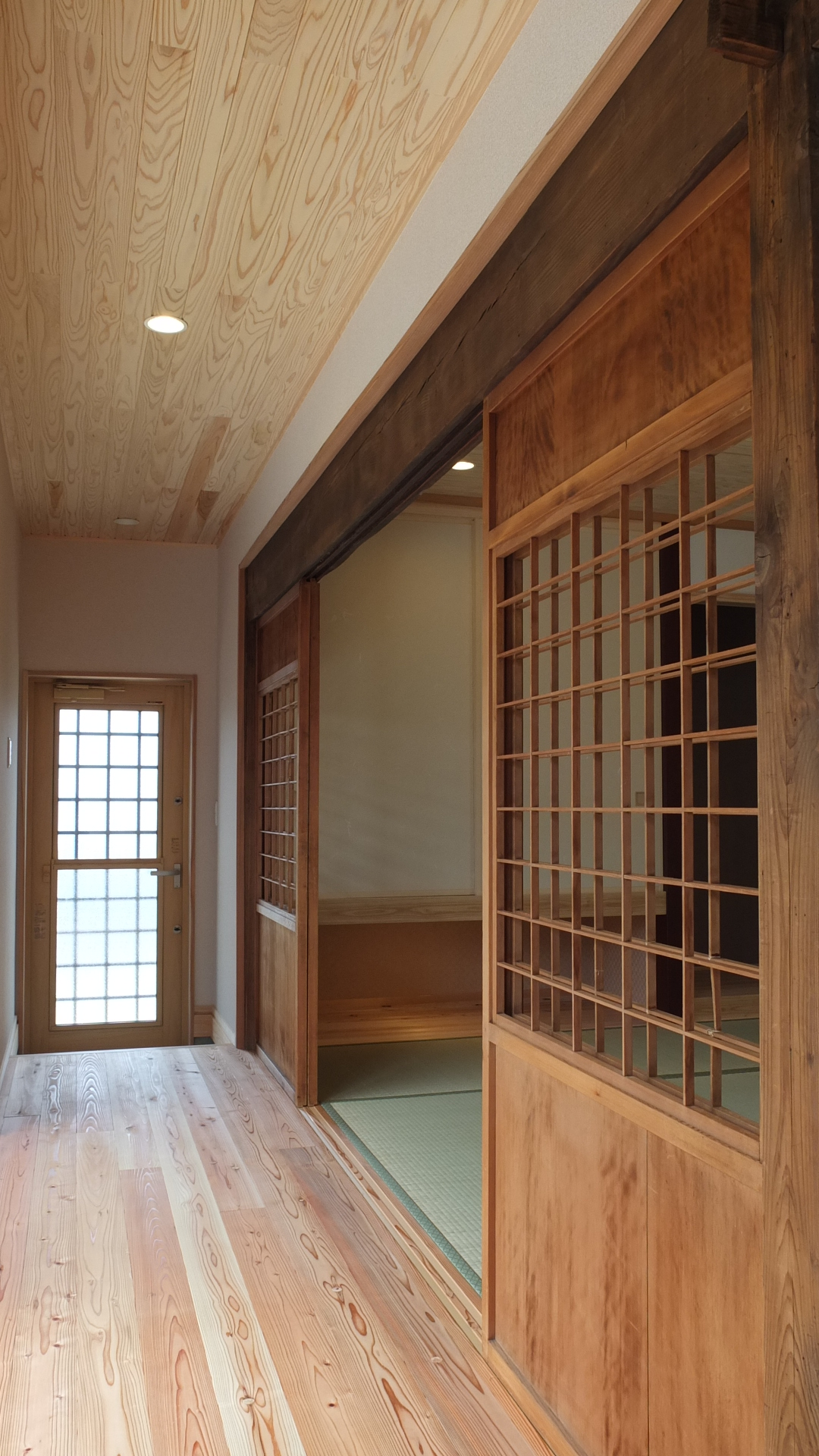春には犬山祭の喧騒を近くに聞く路地の奥に建つm様邸。お母様のご希望により、古材の風合いを活かしたリフォーム工事が竣工しました。