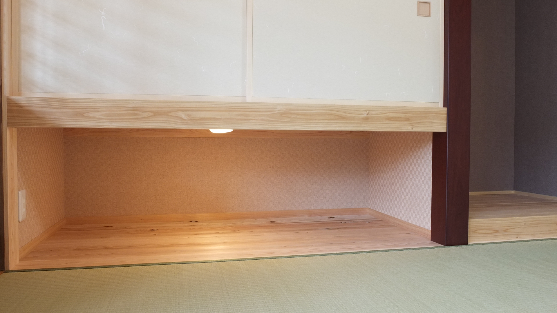 内部は典型的な古民家の田の字型の間取りでしたが、現在の生活に合わせて各居室に性格付けを行い、それに付随する機能を取り付けました。