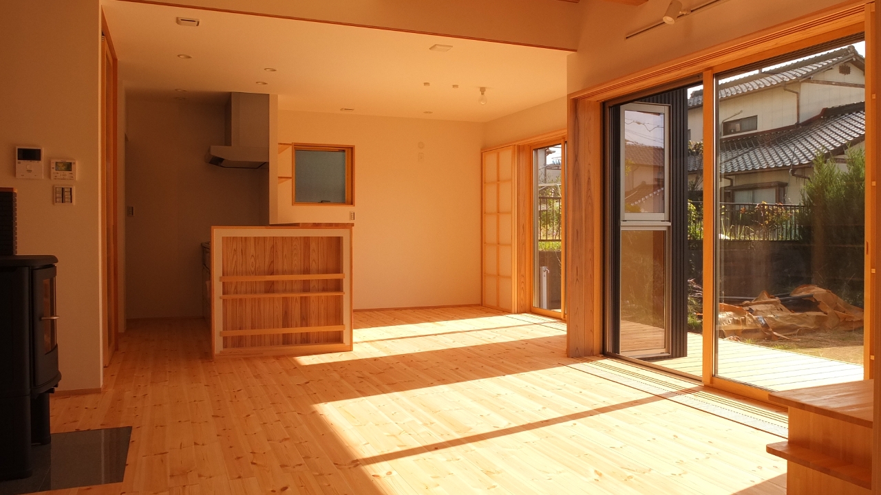 住宅全体を包む木材の暖かみ 細部までこだわった薪ストーブのある家:多治見市ss様邸 多治見市の団地内に建つs様邸。数年前にご両親がミノワの住宅を建築され、すぐそばに良い土地…