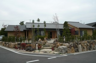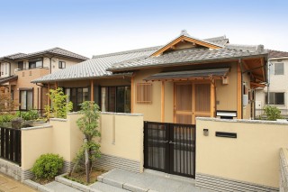豊かな緑の庭に囲まれた 平屋建て住宅 元々の主屋が老朽化し、建替えをご希望されたih様邸。新しい住宅はシンプルな和モダンの外観になりました。平屋建ての水平性を強調した瓦…