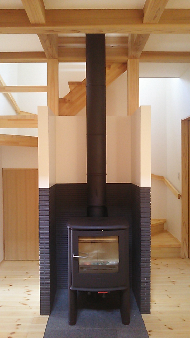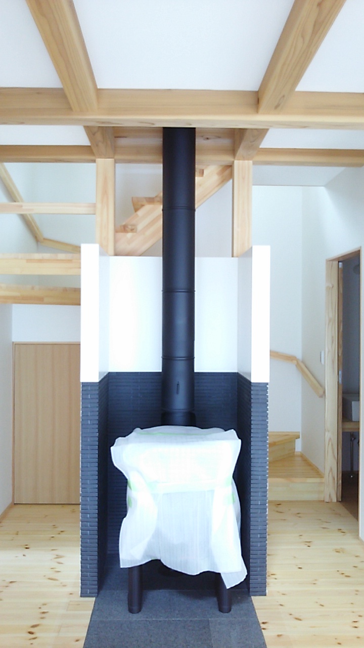まだ養生は取れていませんが、部屋の中央に薪ストーブが設置されています。