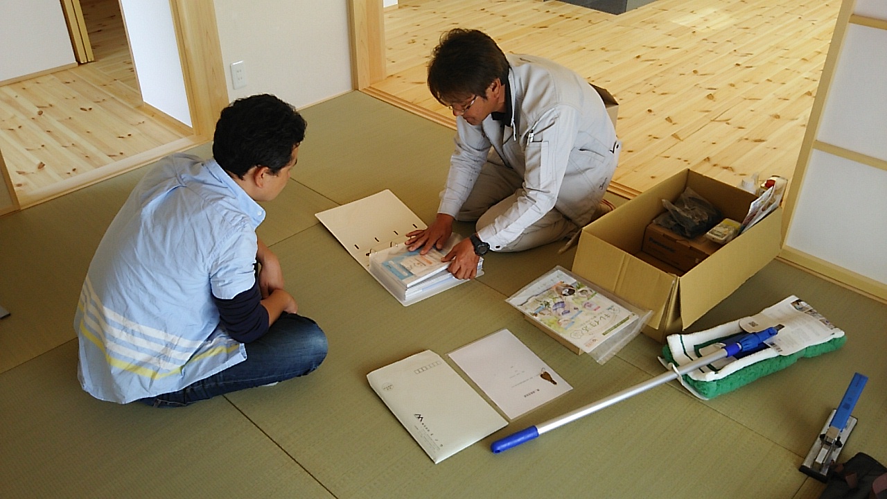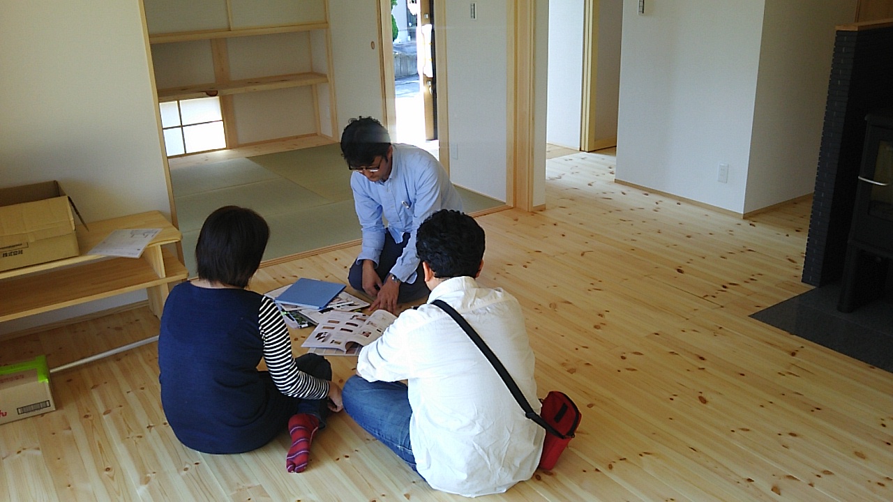 本日、お休みのところs様にお越しいただき、住宅のお引渡しを行いました。現場監督による住宅設備機器等の取扱説明書のご案内をしています。