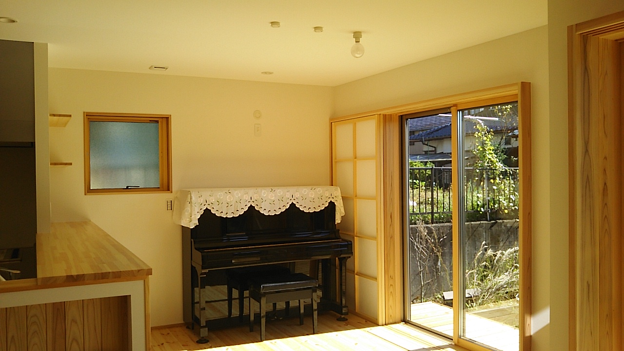 s様邸ではリビングと和室の遮光装置として障子を採用しています。