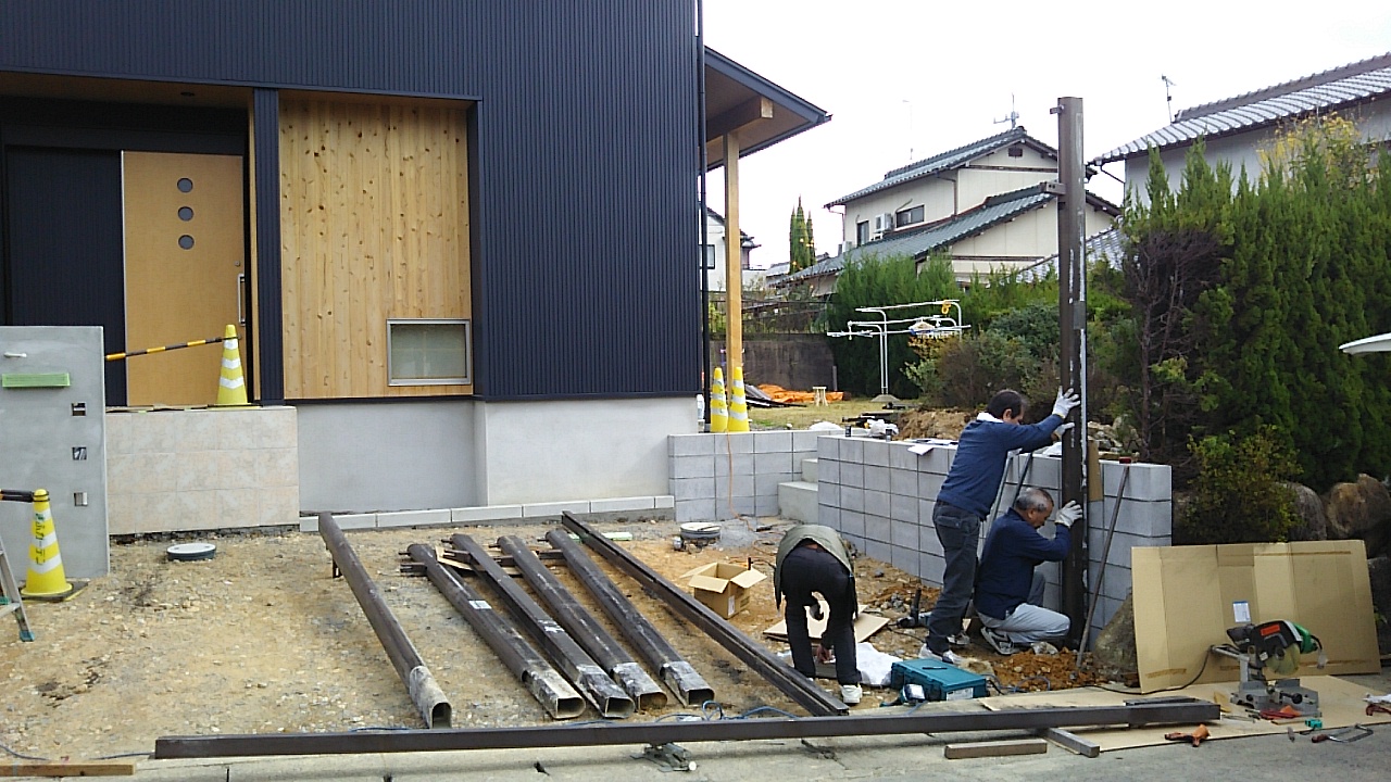 外部では外構工事がスタート。住宅をお引渡ししてからも、もうひと仕事あるのです。
