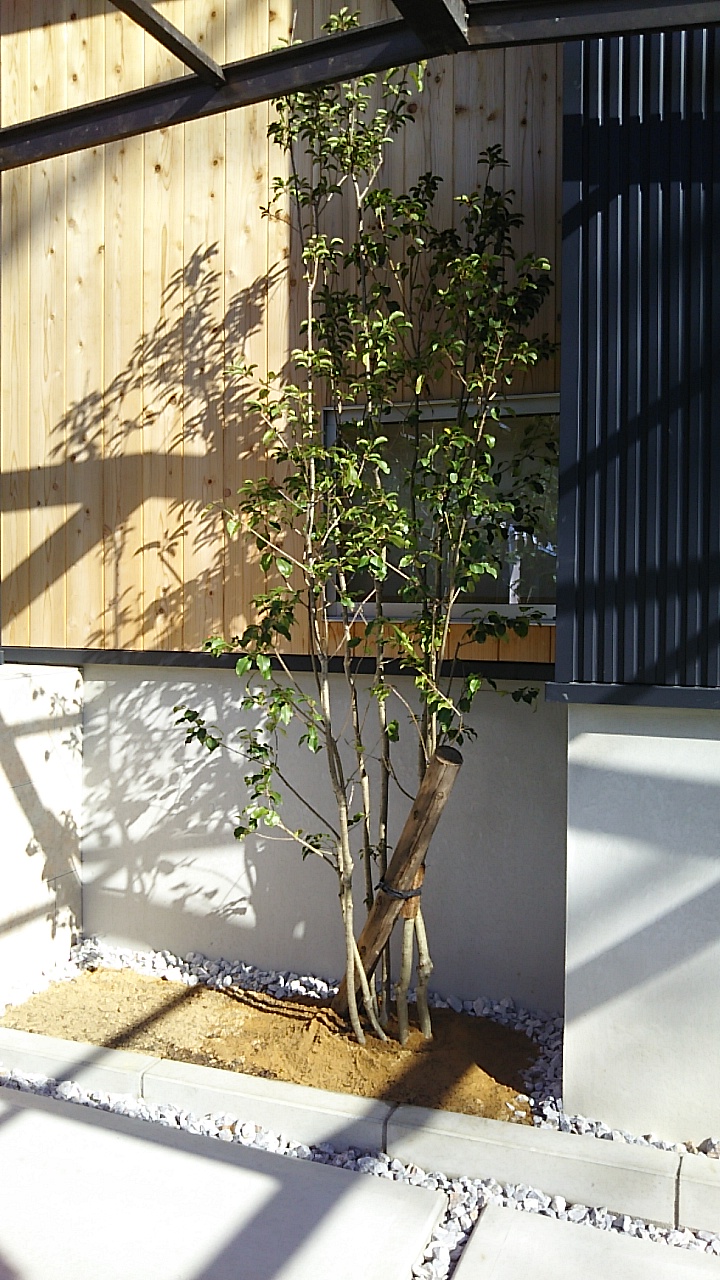 ソヨゴの中木はシンボルツリーとしての役割も果たします。
